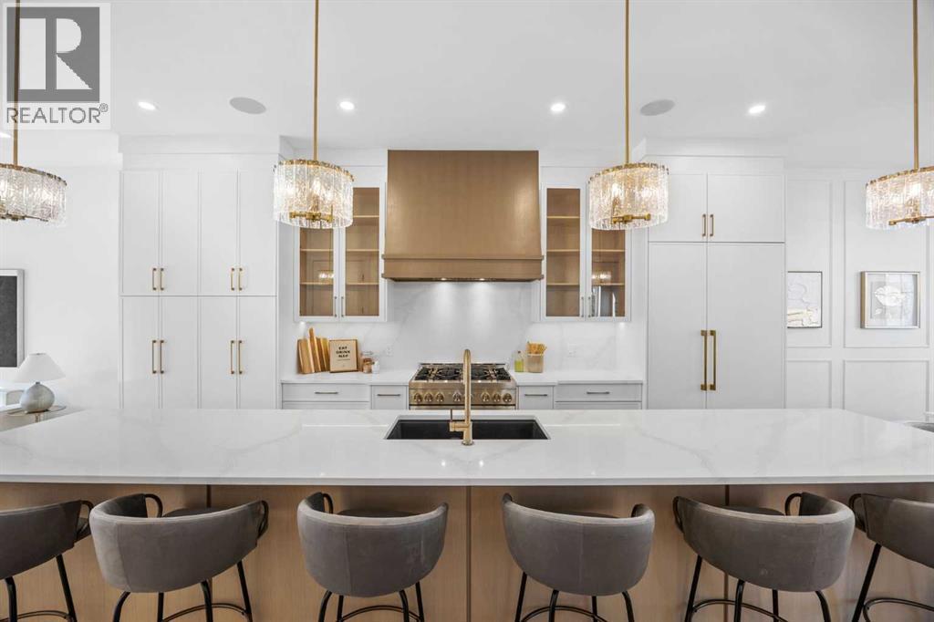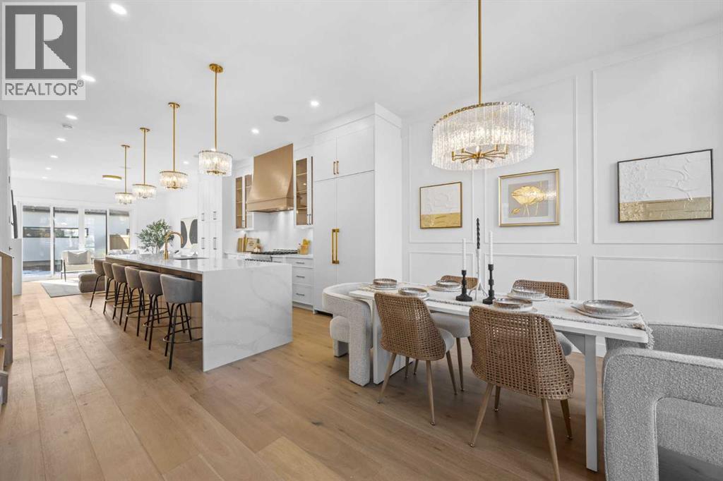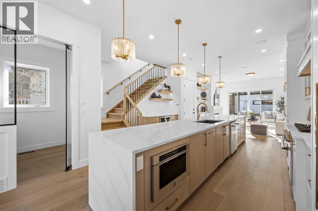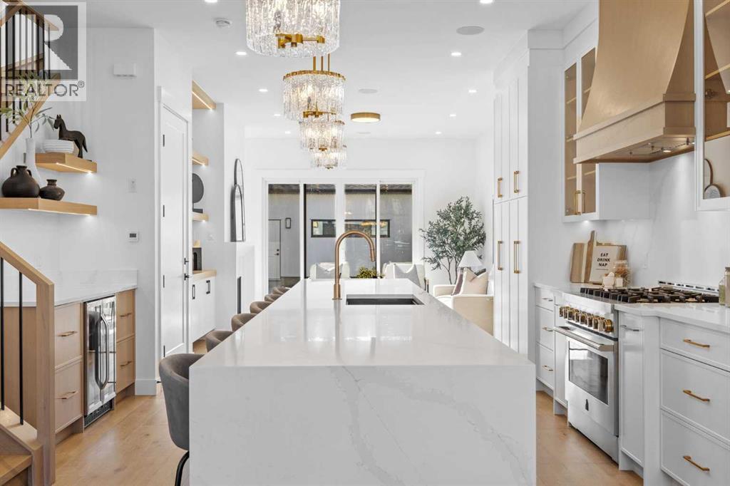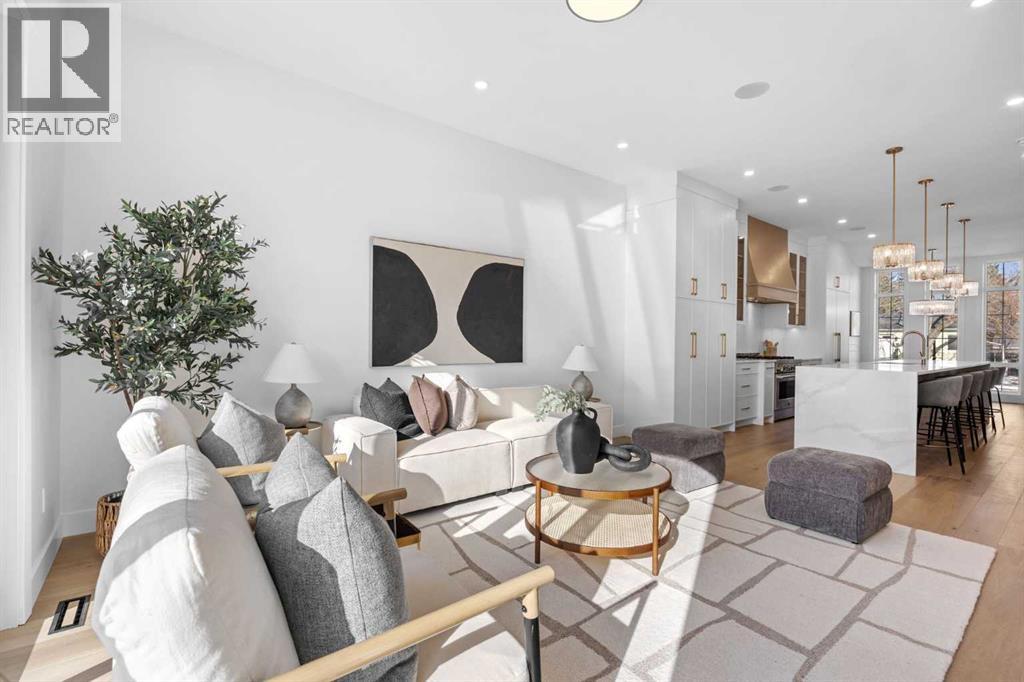 Welcome to 2207 26A Street SW, an exceptional newly built semi-detached infill in the heart of Killarney/Glengarry, thoughtfully designed for those who appreciate elevated craftsmanship, refined finishes, and timeless design. Set on a picturesque tree-lined street, this residence immediately stands apart with its extensive brickwork and limestone exterior—a rare and sophisticated combination seldom found in comparable homes.Inside, the home showcases an impressive sense of scale and elegance, with 10-foot ceilings on the main floor, rich engineered hardwood flooring, and a seamless open-concept layout tailored for both everyday living and upscale entertaining. The dining area flows effortlessly into the showpiece kitchen, where full-height custom cabinetry, built-in JennAir appliances, a pantry with pull-out drawers, and an extraordinary 12-foot waterfall island create a space that is both stunning and highly functional.The living room is warm yet striking, anchored by a fireplace with custom built-ins and oversized patio doors that open onto a 10' x 17' concrete patio, offering a beautiful extension of the living space for outdoor dining, entertaining, or quiet evenings at home.Upstairs, the primary suite is a true retreat, distinguished by vaulted ceilings and a statement white oak beam that adds warmth and architectural character. The spa-inspired 5-piece ensuite is beautifully appointed with dual vanities, full-height tile, a standalone soaker tub, and a custom steam shower with bench, while the spacious walk-in closet is complete with built-in organizers. Two additional generously sized bedrooms, a beautifully finished 4-piece bath, and an upper laundry room complete the second level with both style and practicality.The fully finished basement further enhances the home’s appeal with a beautifully designed 2-bedroom legal basement suite, complete with its own kitchen, living area, and laundry—ideal for extended family, guests, or additional income potent ial.Additional features include 8-foot doors, a fully fenced yard, a double garage with EV charging rough-in, built-in speakers, security rough-in, Vacu-Flo rough-in, A/C rough-in, and new home warranty for added peace of mind.Located in one of Calgary’s most desirable inner-city communities, Killarney/Glengarry offers an exceptional lifestyle with access to parks, recreation, shopping, dining, transit, and a quick commute to downtown. This is a rare opportunity to own a home that delivers both luxury and lasting value in one of the city’s most sought-after neighbourhoods.Schedule your private showing today and experience the exceptional quality and timeless elegance of this remarkable home for yourself. (id:63190)