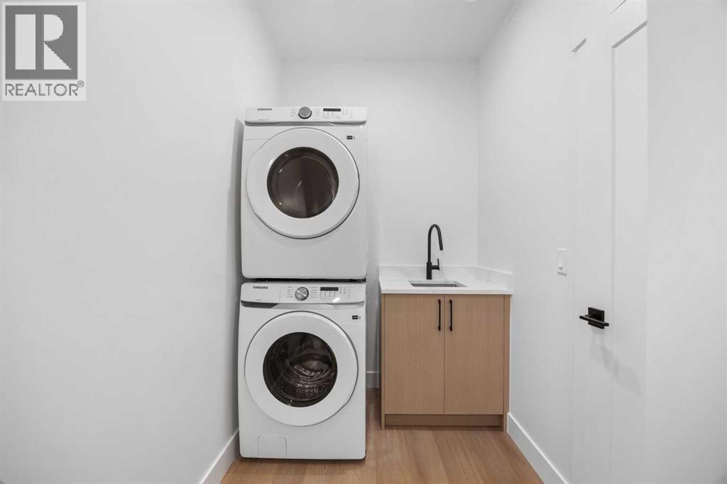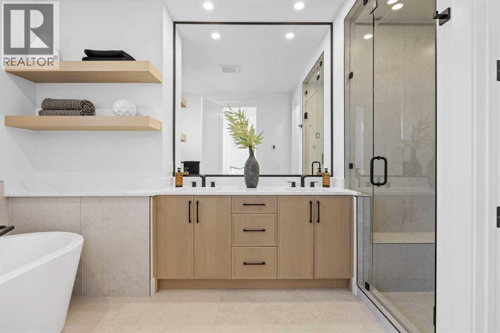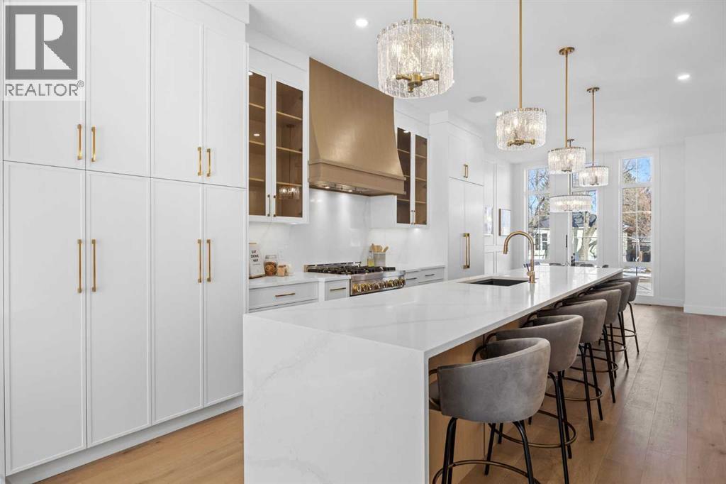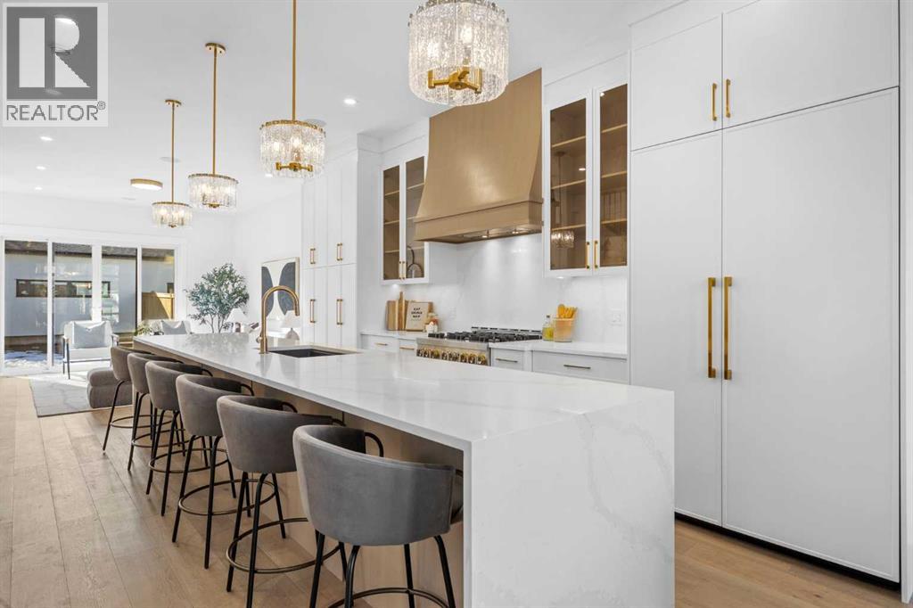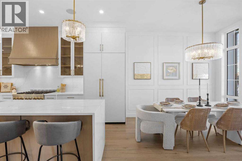 Welcome to 2207 26A Street SW, an exceptional newly built semi-detached infill in the heart of Killarney/Glengarry, thoughtfully designed for those who appreciate elevated craftsmanship, refined finishes, and timeless design. Set on a picturesque tree-lined street, this residence immediately stands apart with its extensive brickwork and limestone exterior—a rare and sophisticated combination seldom found in comparable homes.Inside, the home showcases an impressive sense of scale and elegance, with 10-foot ceilings on the main floor, rich engineered hardwood flooring, and a seamless open-concept layout tailored for both everyday living and upscale entertaining. The dining area flows effortlessly into the showpiece kitchen, where full-height custom cabinetry, built-in JennAir appliances, a pantry with pull-out drawers, and an extraordinary 12-foot waterfall island create a space that is both stunning and highly functional.The living room is warm yet striking, anchored by a fireplace with custom built-ins and oversized patio doors that open onto a 10' x 17' concrete patio, offering a beautiful extension of the living space for outdoor dining, entertaining, or quiet evenings at home.Upstairs, the primary suite is a true retreat, distinguished by vaulted ceilings and a statement white oak beam that adds warmth and architectural character. The spa-inspired 5-piece ensuite is beautifully appointed with dual vanities, full-height tile, a standalone soaker tub, and a custom steam shower with bench, while the spacious walk-in closet is complete with built-in organizers. Two additional generously sized bedrooms, a beautifully finished 4-piece bath, and an upper laundry room complete the second level with both style and practicality.The fully finished basement further enhances the home’s appeal with a beautifully designed 2-bedroom legal basement suite, complete with its own kitchen, living area, and laundry—ideal for extended family, guests, or additional income potent ial.Additional features include 8-foot doors, a fully fenced yard, a double garage with EV charging rough-in, built-in speakers, security rough-in, Vacu-Flo rough-in, A/C rough-in, and new home warranty for added peace of mind.Located in one of Calgary’s most desirable inner-city communities, Killarney/Glengarry offers an exceptional lifestyle with access to parks, recreation, shopping, dining, transit, and a quick commute to downtown. This is a rare opportunity to own a home that delivers both luxury and lasting value in one of the city’s most sought-after neighbourhoods.Schedule your private showing today and experience the exceptional quality and timeless elegance of this remarkable home for yourself. (id:63190)