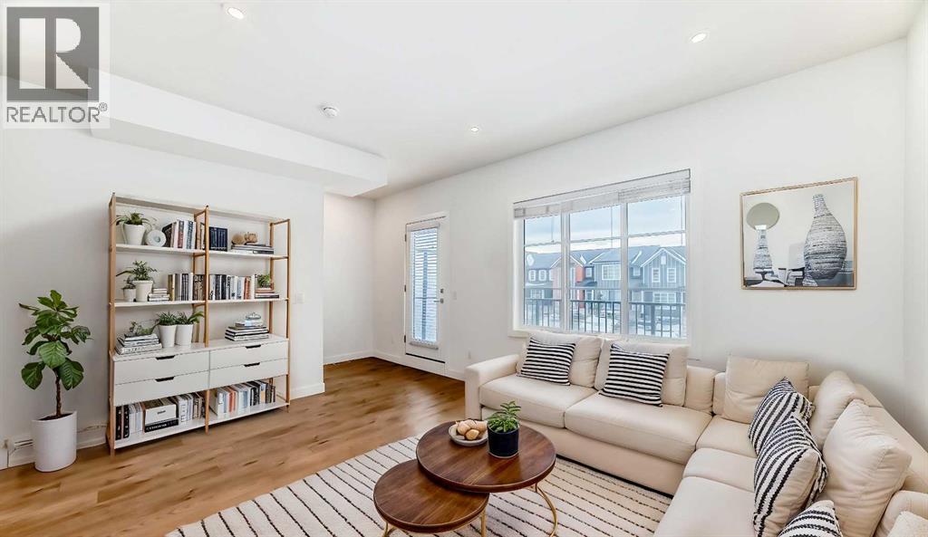 4 BEDROOMS | 2.5 BATHROOMS | 1600+ SQFT | Welcome to this beautifully built 3 storey townhome by Truman Homes, located in the desirable community of Savanna in Saddle Ridge. This modern and thoughtfully designed home features 4 bedrooms, 2.5 bathrooms, and a double attached garage with additional storage space.The bright and open concept second level is filled with natural light from large windows. The spacious living room offers direct access to a generous balcony, perfect for relaxing or entertaining. The contemporary kitchen is equipped with quartz countertops, stainless steel appliances, a large island, soft close cabinetry, and a pantry for added storage. Adjacent to the kitchen is a dedicated dining area, ideal for everyday meals and gatherings. A convenient two piece powder room with a large window completes this level.Upstairs, you’ll find three well sized bedrooms, including a comfortable primary suite featuring tray ceilings, a walk in closet, and a private 4 piece ensuite. The additional two bedrooms each include their own closets and share a full 4 piece bathroom. A side by side washer and dryer on this floor adds extra convenience.The ground level offers access to the double attached garage along with a versatile fourth bedroom that can be used as a home office, guest room or flex space with plenty of natural light.Ideally located just steps from Savanna Bazaar, you’ll have easy access to shopping, restaurants, and everyday amenities. Commuting is simple with quick connections to Airport Trail, 88 Avenue, Metis Trail and Stoney Trail along with nearby public transit including Saddletowne Station. Whether you're a first time buyer or an investor, this home offers an excellent opportunity in a fantastic location. Schedule your private viewing today! (id:63190)