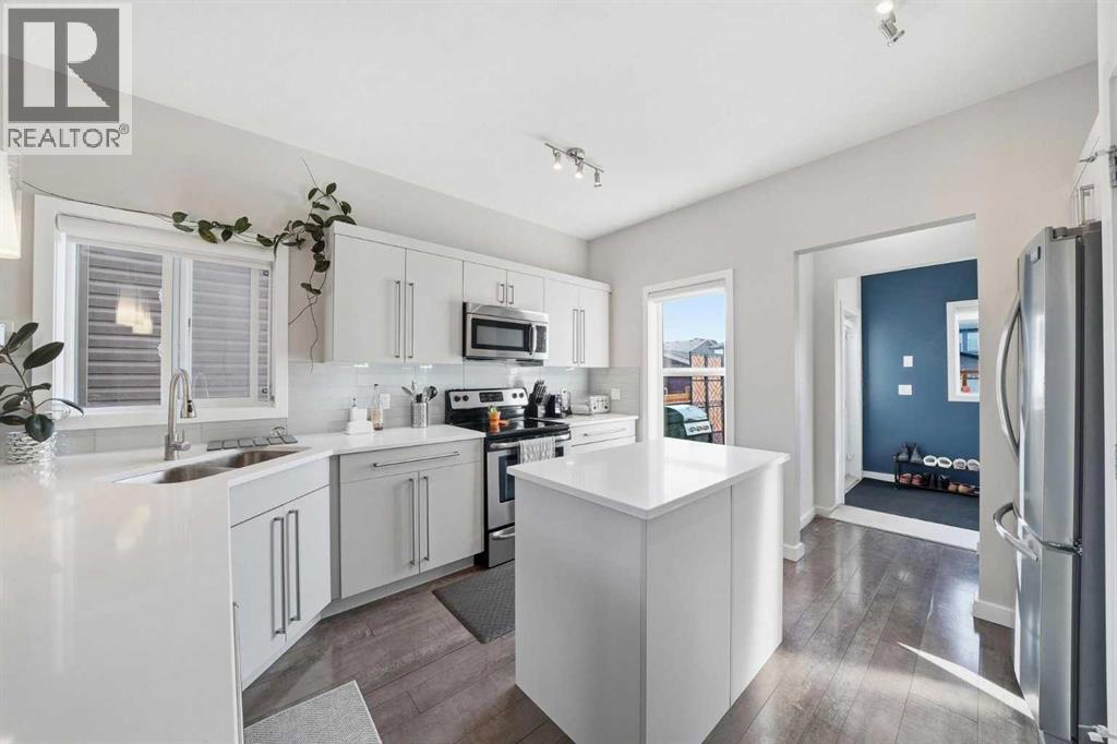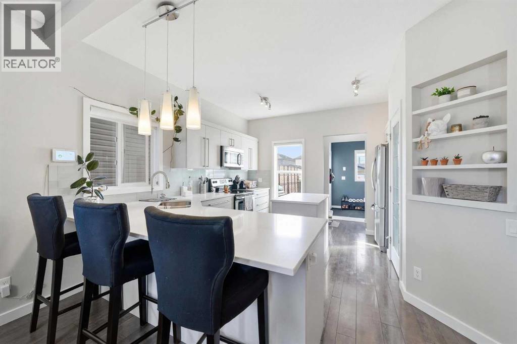 Experience the perfect blend of style and practicality in this ~1,809 sq. ft. home, masterfully crafted by McKee Homes. Situated in the heart of Ravenswood, Airdrie’s premier southeast community, this residence is designed for families who value quality construction and a connected lifestyle. The moment you step onto the spacious front veranda, you’ll feel the "home" vibe. Inside, a grand entrance leads to a bright, open-concept living area where large windows flood the space with natural light. The living room serves as a true centerpiece, featuring a cozy fireplace set against a stunning accent wall. For the modern professional, a dedicated main-floor office/den provides a quiet workspace away from the main hustle. Tucked away for privacy is a stylish half-bathroom, leading toward the home's operational hub: a huge mudroom that keeps the family organized and the clutter out of sight. Retreat upstairs to find a layout that prioritizes both relaxation and togetherness. The second-floor family room is a versatile escape for movie nights or kid-friendly play space. The sleeping quarters include three generous bedrooms, highlighted by a primary suite complete with a private en-suite. Step out from the dining area onto a good-sized rear deck, perfect for summer BBQs while overlooking the yard and the convenient parking pad. Living in Ravenswood means you are steps away from: Education: Walking distance to École Francophone d'Airdrie and Heloise Lorimer School. Amenities: Minutes from Kingsview Market for all your shopping and dining needs. Active Lifestyle: Explore the neighborhood’s famous manicured green corridors, playgrounds, and kilometers of winding walking paths. This McKee-built beauty combines high-end design with the everyday utility a growing family needs. Don’t miss your chance to join one of Airdrie’s most vibrant communities! (id:63190)
