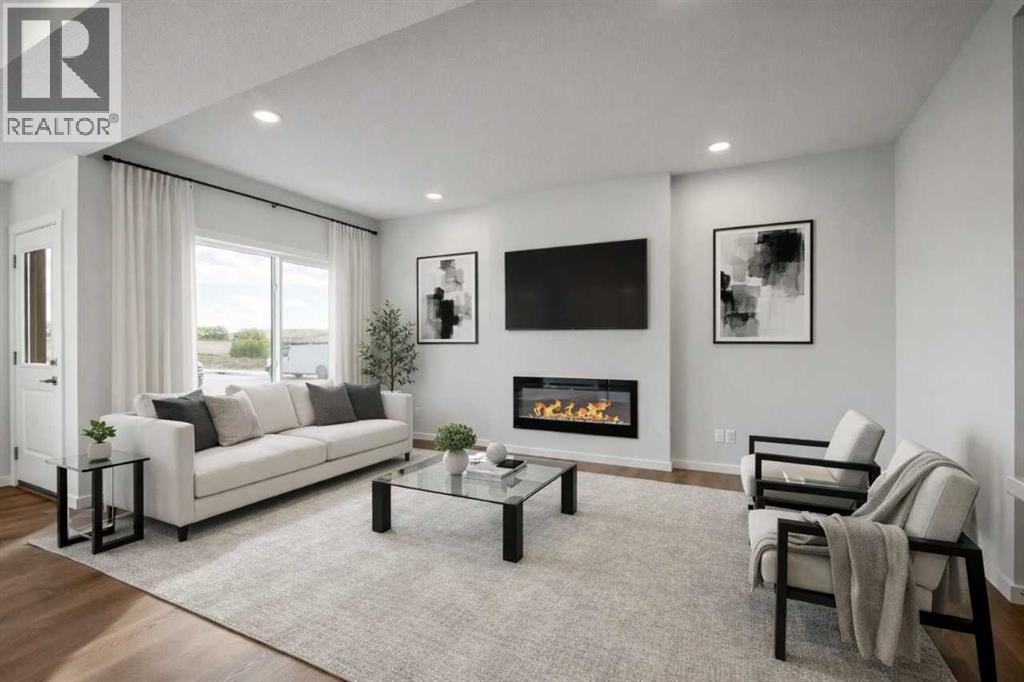 This Remi Model by Bedrock homes is situated on a beautiful corner lot with Mountain views! This model features a welcoming front foyer with open to above, a central flex room on the main floor, and a walk-through mudroom and pantry leading straight to the designer kitchen. The kitchen features coffered ceilings for an elegant feeling with a large island that opens up to the dining area and great room, great for a gathering space! The open to above staircase will lead you upstairs to find two secondary bedrooms with a full bathroom at the front of the home, a central bonus room, laundry, and a large primary bedroom. Last but not least primary bedroom features a spacious four-piece ensuite with a water closet, dual vanities, and a soaker tub, and conveniently leads straight to the large walk-in closet. Photos are representative. (id:63190)