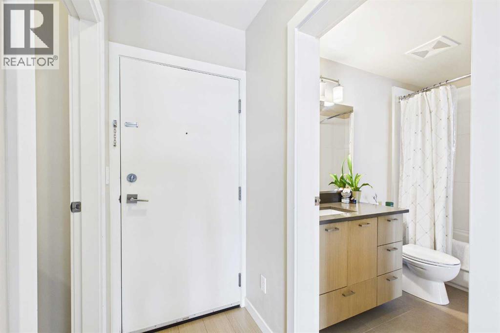 Experience the pinnacle of inner-city living in this stunning one-bedroom, one-bathroom sanctuary located in the prestigious community of Renfrew. Designed for the discerning urbanite, this condo blends contemporary elegance, convenience, sophistication and boasts a perfect view of Calgary’s downtown skyline. Modern Design & Finish with a minimalist vibe. Step into an open-concept layout defined by sleek, contemporary finishes and a sophisticated palette. The chef-inspired kitchen features flat-panel cabinetry with soft close precision, gas cooktop, premium stainless steel appliances, chunky shelves and sprawling polished quartz countertops that serve as both a culinary workshop and social centrepiece seamlessly flowing into a bright and airy living space. High ceilings and wide-plank flooring enhance the modern aesthetic, creating a home that is as functional as it is beautiful. The hidden gem of this residence is the unobstructed, panoramic view of the downtown skyline from either your bedroom or your main living space, its spectacular! Oversized windows flood the interior with natural light from the Southwest-facing balcony. Whether you’re sipping your morning coffee or hosting evening cocktails, you’ll have a front-row seat to Calgary’s most spectacular sunsets and the glittering lights of the city core. Minutes from the downtown core your commute will be short and your walks will be long as you stroll along our mighty Bow River and pathways system. Living in this building means enjoying a suite of premium amenities designed for a high-performance lifestyle. Skip the gym membership and stay active in the well-equipped, on-site gym. Convenient in-suite laundry and storage. Keep your vehicle secure and warm year-round in the heated parkade that includes a dedicated locker for your seasonal gear and outdoor equipment as well. Bike storage, visitor parking and we cant forget our furry friends a DOG and or CAR WASH. Renowned for its "small-town" feel with big-city pr oximity, Renfrew offers an unparalleled lifestyle. You are steps away from the trendy bistros of Edmonton Trail and 1st ave amenities, the lush pathways of Tom Campbell’s Hill, and a quick commute to the downtown core via bike, transit, car or a stroll. This is more than just a condo; it’s your private retreat above the city. Schedule your private showing today and see why Renfrew is the place to be in 2026. (id:63190)