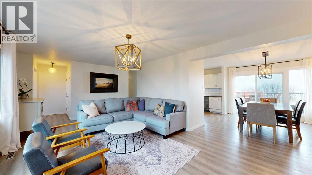 This lake front property at Rochon Sands on the south shore of Buffalo Lake is a fantastic spot for your family to get away for the weekend, spend the whole summer, or enjoy year-round living. The well-designed family home includes a bright, inviting entrance leading to a spacious living room with large windows providing ample natural light. The dining room has an amazing view of the lake, with patio doors taking you out to the raised deck. The kitchen window also has an excellent view of the lake. Down the hall, there is a large primary bedroom with modern ensuite which has a tub/shower combination with custom tile. There are two more bedrooms and a 2pc bathroom with unique vessel sink. Downstairs, there is a huge family room which could be used for a variety of activities: home gym, media centre, kids play area, etc. There are two bedrooms and a renovated, 4 pc bathroom with double sinks. The dedicated laundry room with high-efficiency appliances adds convenience. Throughout the home, the light, wood-look flooring creates a cohesive and contemporary feel and makes it easy to sweep up sand from the beach. There are so many upgrades in this home including new flooring throughout, new doors and door knobs, updated light fixtures, new vinyl windows, new electrical, heating, and hot water tank. Outside, the view from the deck doesn’t get any better than this! The lawn stretches out front to a sloped hillside and shore beneath and there is a path to the lake. The street side of this property has plenty of parking and enough space to build a garage. This is one of the few properties in this area that is on municipal water and sewer, so you don’t have to worry about hauling water in or emptying out a septic. Rochon Sands is a wonderful community that has tennis/pickleball courts, a disc golf course, playgrounds, a community hall, and there are 3 golf courses close by. In the winter you can partake in ice fishing, sledding, snowshoeing, cross country skiing, skating track, and a rink with lights at night. This is an awesome opportunity to own a lake front property. (id:63190)