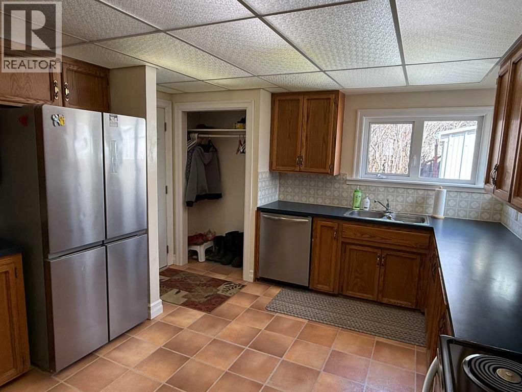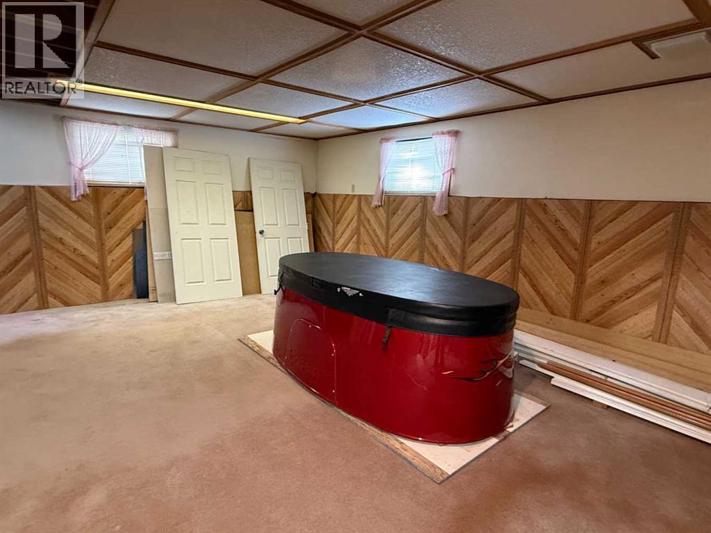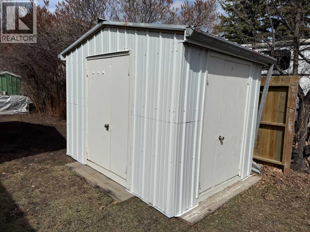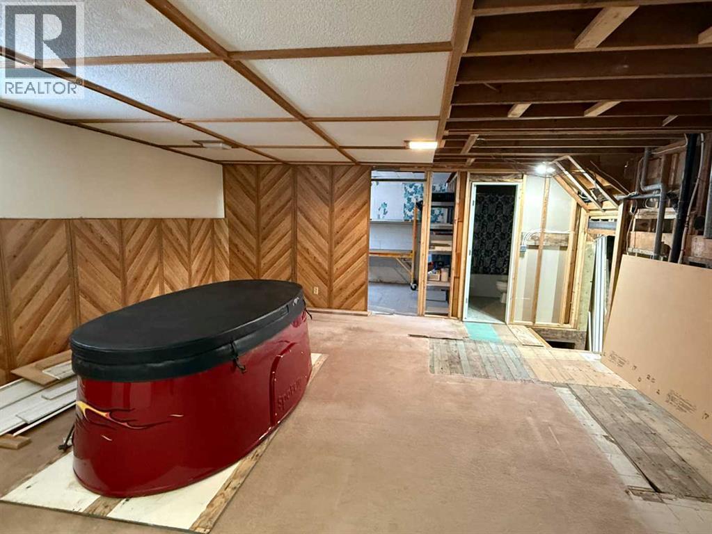 Situated on a generous 75’ x 132’ corner lot in the Town of Vulcan, this four-level split offers excellent potential in a highly desirable location. Just one block from the Vulcan Golf Course clubhouse, two blocks from the seasonal outdoor swimming pool, and within walking distance to both the elementary and high school, this property combines convenience with space. The main level features an inviting entry leading into the dining area, kitchen, and two bedrooms. The upper level offers a bright living room with large windows, a primary bedroom with walk-in closet and roughed-in two-piece ensuite, a full bathroom, and convenient laundry with stacking washer and dryer. The lower level is partially developed with a family room (hot tub included in as-is condition), a four-piece bathroom, and additional den/storage space. The basement houses the utility area and features a combination of dirt and cinderblock construction. Exterior features include a stucco finish and durable metal roof. Parking and workspace are a standout with a 24’ x 26’ carport adjoining a 24’ x 24’ heated shop/garage complete with 220 amp electrical service—ideal for hobbyists or projects. Recent updates include a hot water tank (2023). An additional furnace is included but has not been installed. Central vacuum system is present but not currently operational. Extra flooring materials in the garage and yard are included. This property is being sold “as is, where is” as the seller has not resided in the home. (id:63190)