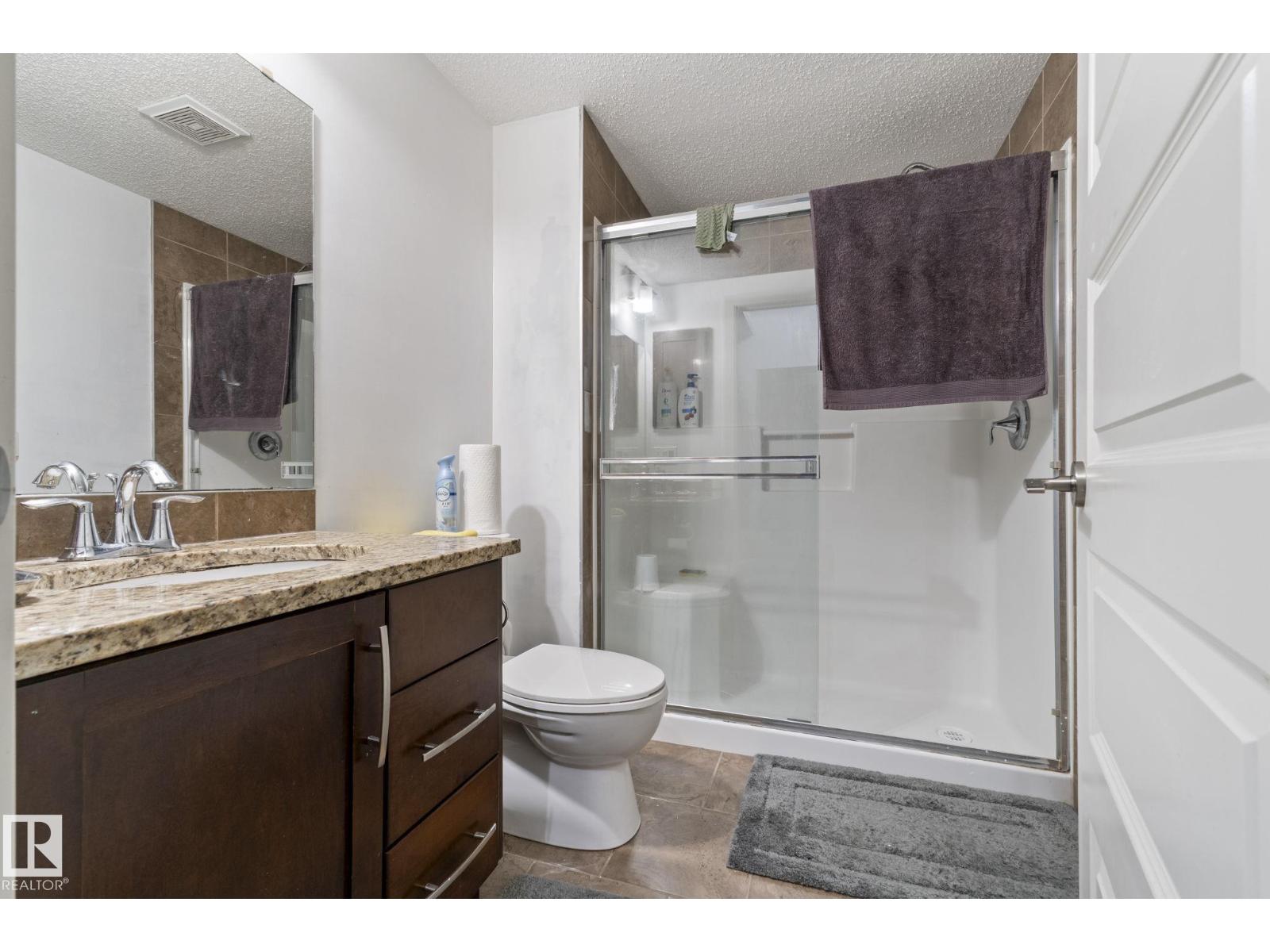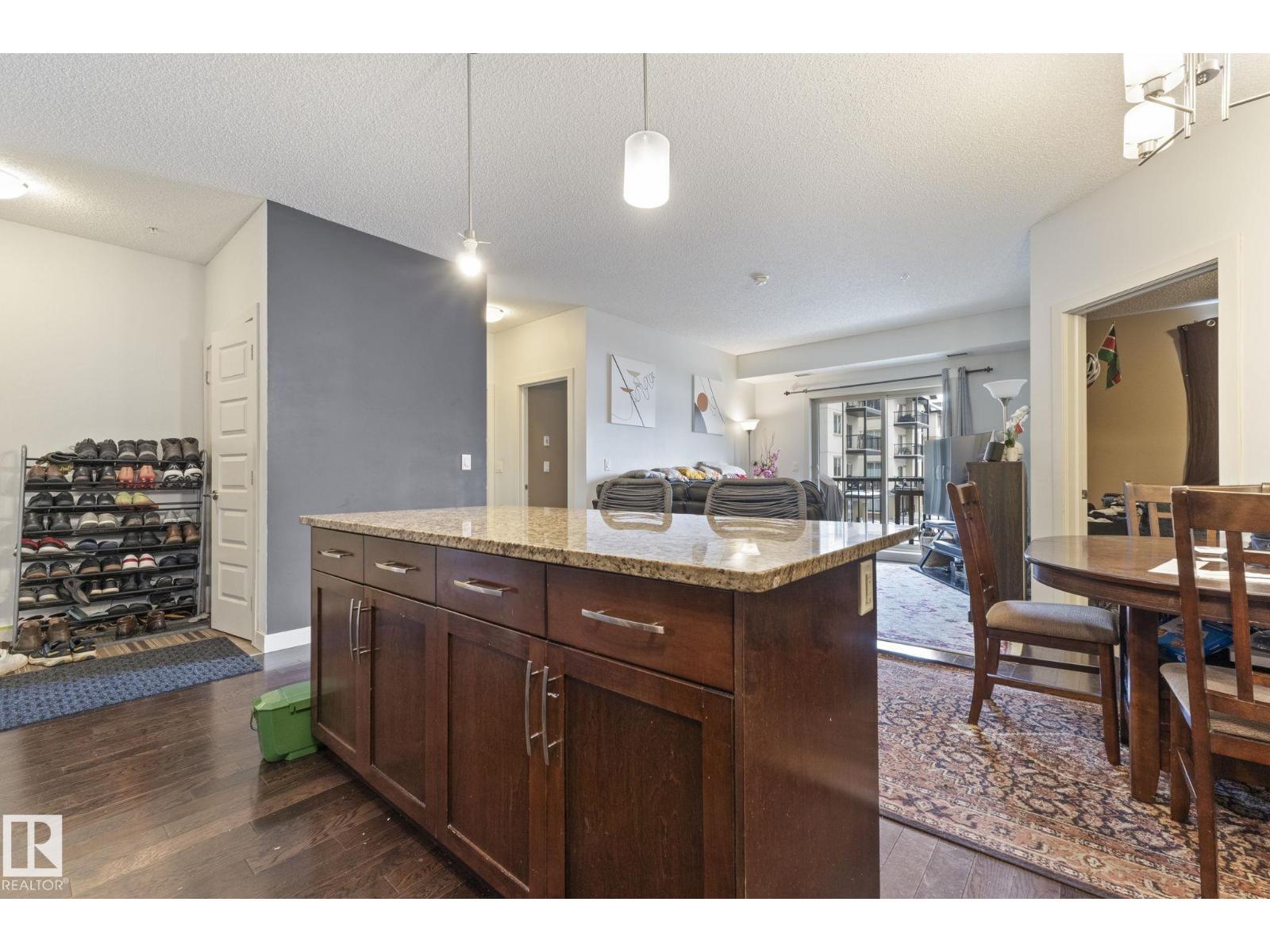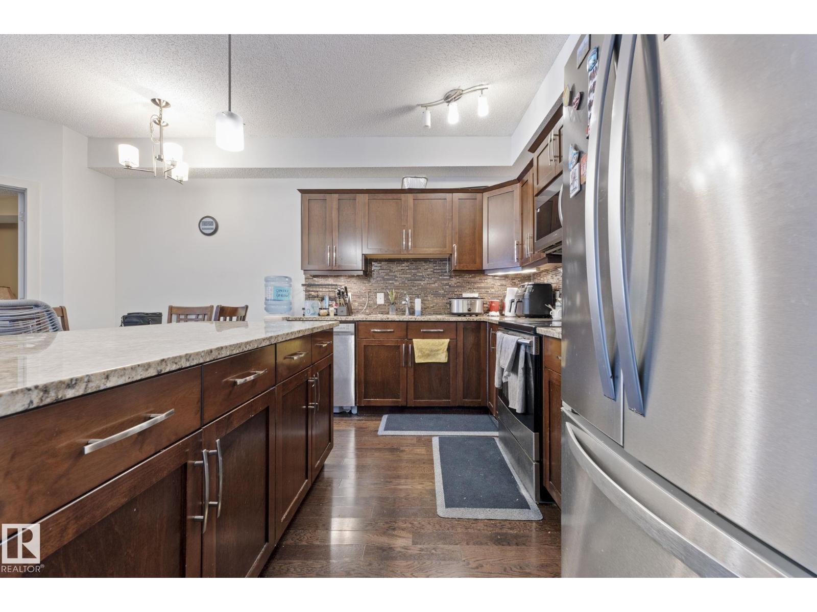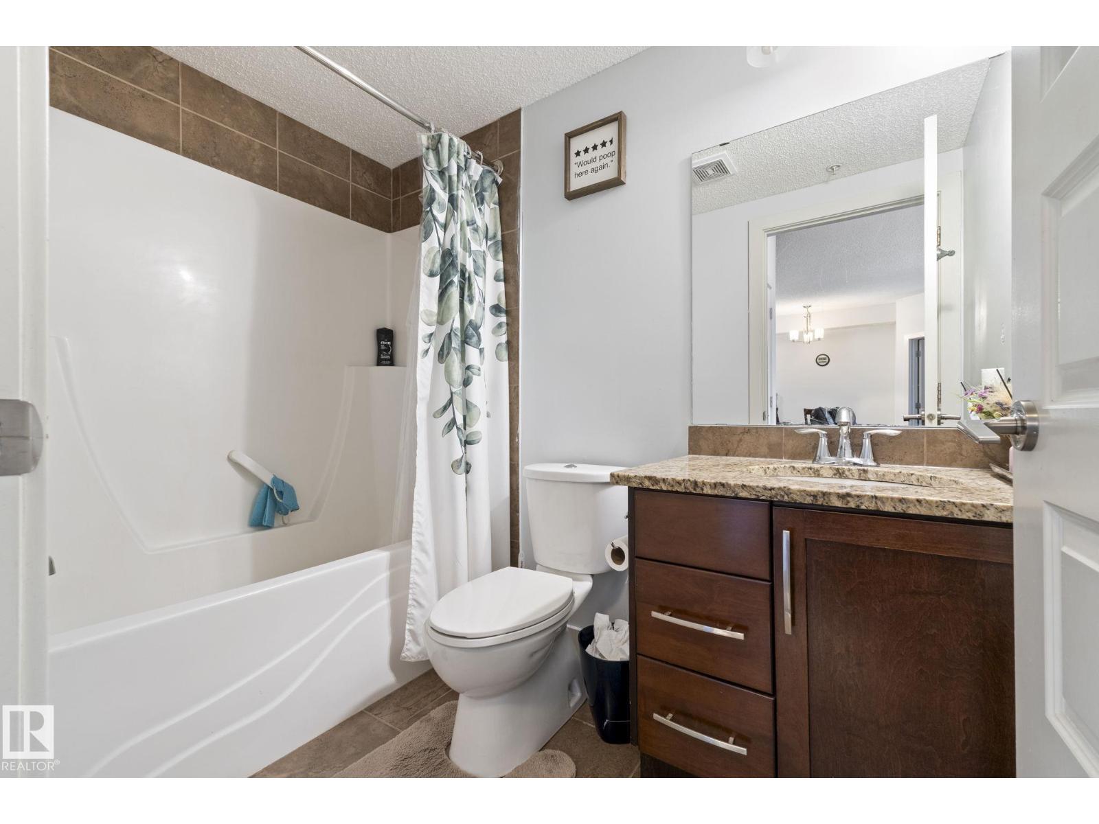 Welcome to Serenity Gardens in the desirable neighbourhood of Pleasantview — a move-in ready 2 bedroom, 2 bath, 933 sqft condo in a prime south Edmonton location. Featuring 9 ft ceilings, BRAND NEW LVP FLOORING INSTALLED IN APRIL 2026, granite countertops, air conditioning, and in-suite laundry, this bright open-concept layout offers both style and function. The kitchen includes a large island with eat-up bar and flows into a spacious living area that leads to a private treed balcony with natural gas BBQ hook-up. The primary suite offers a walk-through closet and 3-piece ensuite, while the second bedroom is privately positioned near a 4-piece bath. Complete with a titled underground heated parking stall and storage cage, and walking distance to schools, Southgate Centre, LRT, and transit with quick access to Whitemud Drive and Calgary Trail — this is convenient, low-maintenance living at its best. (id:63190)
