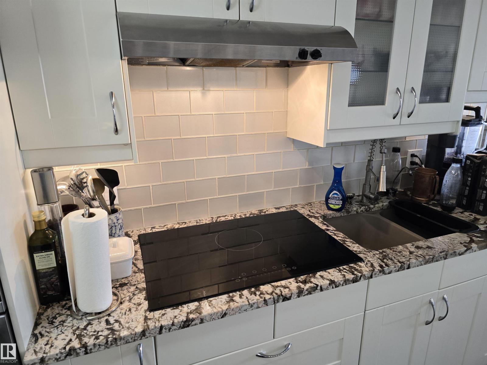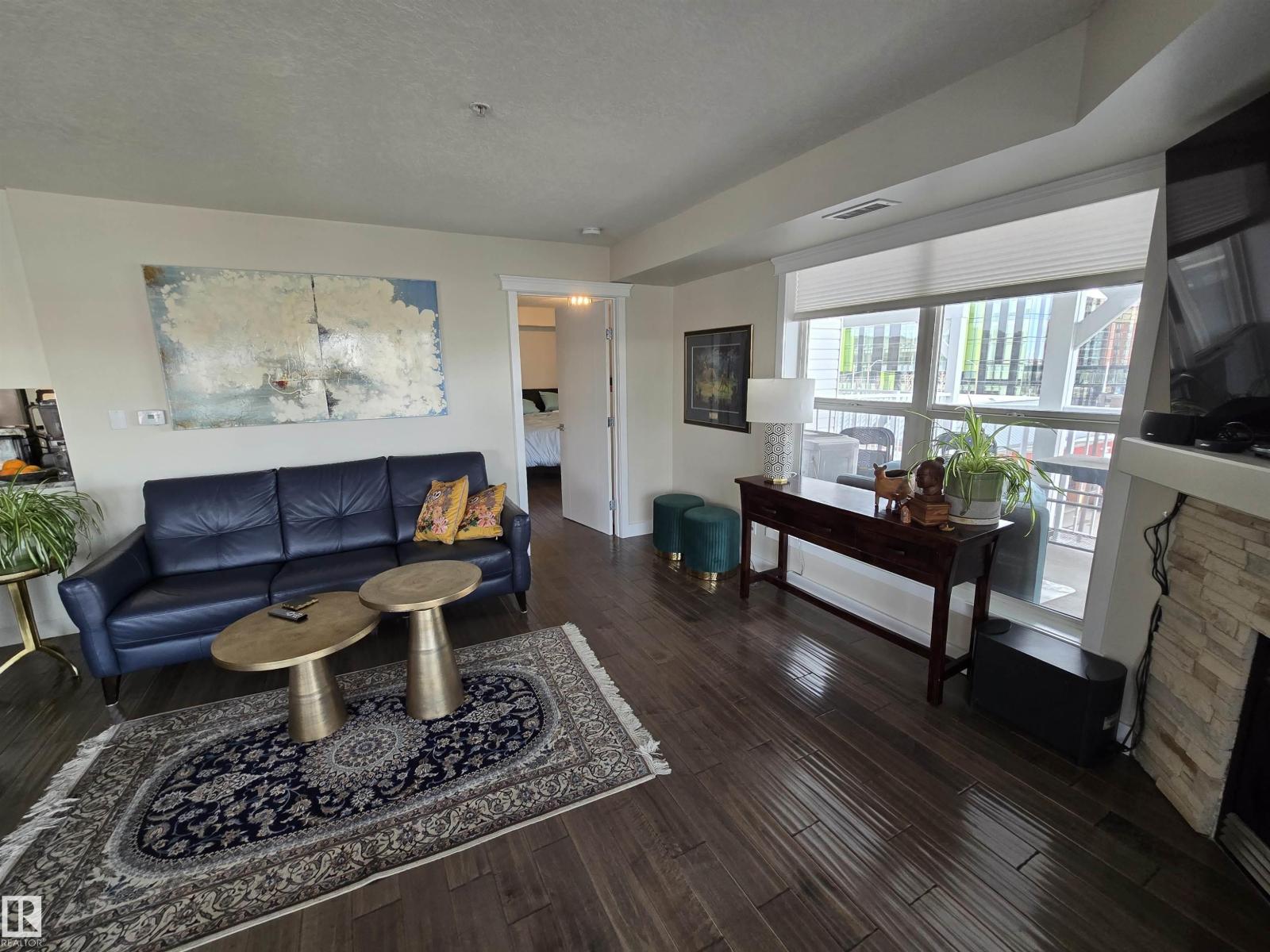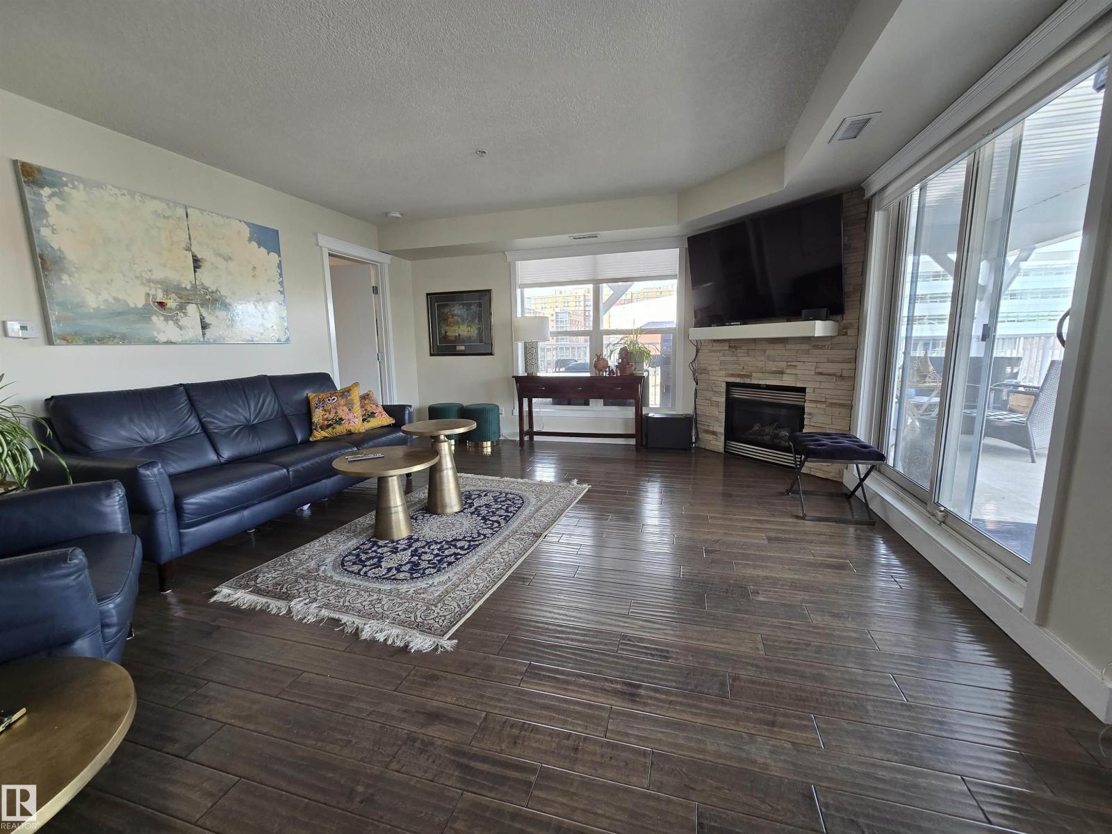 LOCATION, LOCATION, LOCATION!!! Railtown on the Park. THIS COMPLETELY RENOVATED 1141 sq. ft. 2 bedroom 2 bathroom condo is conveniently located close to the LRT, shopping, downtown, the River valley trails & the U of A. Numerous recent upgrades include the Kitchen redesign with an open floor plan, large island, pantry, granite counter tops, S/S appliances. Corner gas fireplace. 3 piece ensuite with a linen closet. 4 piece bathroom next to the 2nd bedroom with a vessel sink. Granite counters in both bathrooms. Engineered hardwood throughout except for tile in the bathrooms. Newer paint, baseboards, solid core doors, California knock down ceilings. Gas BBQ hook-up on your massive, private, covered Northeast City Skyline View balcony. Included: counter top induction stove, built-in oven, built-in microwave, fridge, dishwasher, washer, dryer, all window coverings, A/C. TWO UNDERGROUND PARKING UNITS 190, 175 Actual #'s 102, 87, with storage in front of 102. GYM & Guest Suite in building. (id:63190)