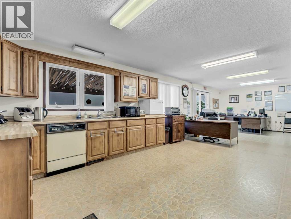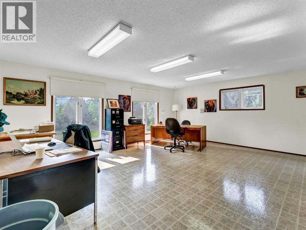 Located just off the Trans-Canada Highway in Dunmore, this versatile commercial property offers excellent visibility, easy highway access, and outstanding flexibility for a wide range of business operations. Vacant and quick possession as an opportunity, the property presents an excellent opportunity for an owner-operator or investor seeking future income-generating lease potential. The main building is a 2,358 sq. ft. Nelson-built structure (1981) that was previously used as office space but could easily transition back to residential use or continue as professional/commercial space. Designed with durability and functionality in mind, it features a tiled roof, brick-and-metal exterior, three offices or bedrooms, three bathrooms, a large boardroom/living room, a spacious kitchen, and a full basement offering wide-open space for future development or storage. The property is serviced by two septic tanks. At the rear of the lot, two commercial shops are connected by an enclosed walkway, creating an efficient setup for operations, storage, service, or light industrial use: Shop 1: 39 ft x 59 ft, Concrete floor, Electric overhead door, Enclosed office, 2-piece bathroom and a Make-up air unit. Shop 2: 39 ft x 120 ft, Concrete floor, Electric overhead doors on both ends for drive-through capability, and a Make-up air unit. The expansive yard provides ample room for equipment parking, material storage, fleet use, or future expansion. The eastern property line extends approximately 15–20 feet beyond the shops, adding even more usable yard space. With vacant possession and strong functional infrastructure already in place, this property offers a rare opportunity to establish your own operation or secure a property with strong future leasing potential just minutes from Medicine Hat. (id:63190)