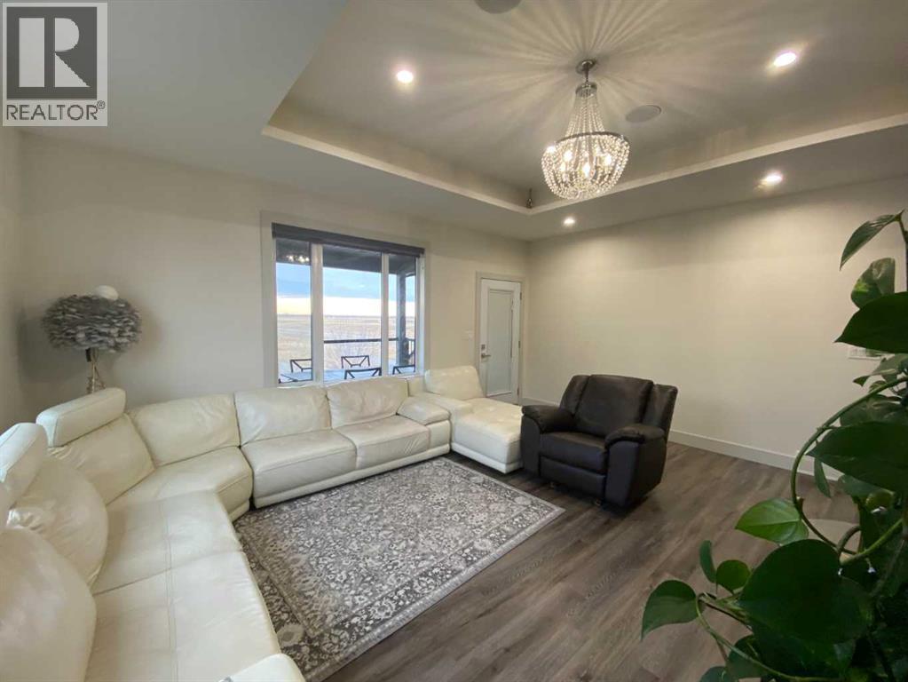Beautiful home on the lake in Taber! With 3400 sqft of finished living space and 5 bedrooms, this amazing bi-level home has ample room for the whole family! Built in 2020, this home located in Westview Estates was built to a high standard and features a main floor with 9 foot ceilings and large living spaces. A massive 18'x14' primary bedroom with full ensuite including jetted tub, and walk in closet are also included on the main floor as well as a 2 piece bathroom with laundry. Watch the sun set from the large 18'x12' covered deck in the back that looks out over Westview lake that has full glass walls to protect you from the wind while still maintaining the view. If you're looking for a different space to enjoy your morning coffee, you also have the option to sit on the 13'x12' covered deck at the front of the house that you access from the upper level where you will also find 2 additional bedrooms and a full bathroom. In the basement, you will love the absolutely massive 32'x21' family room that includes a wet bar. Attached to the family room is a dedicated tv/theatre room, another full bathroom and 2 more bedrooms, which could also double as an office. Walk out of the basement family room to a covered patio and the backyard that leads to the green space, park and lake! Extra features for this home include central A/C, an HVAC systems that is zoned individually for each level, built in sound system, quartz countertops, water filter, widow coverings (with some automatic), garburator, heated double garage and underground sprinklers. This home has so much value and a lot to offer, you need to take a look! (id:63190)
