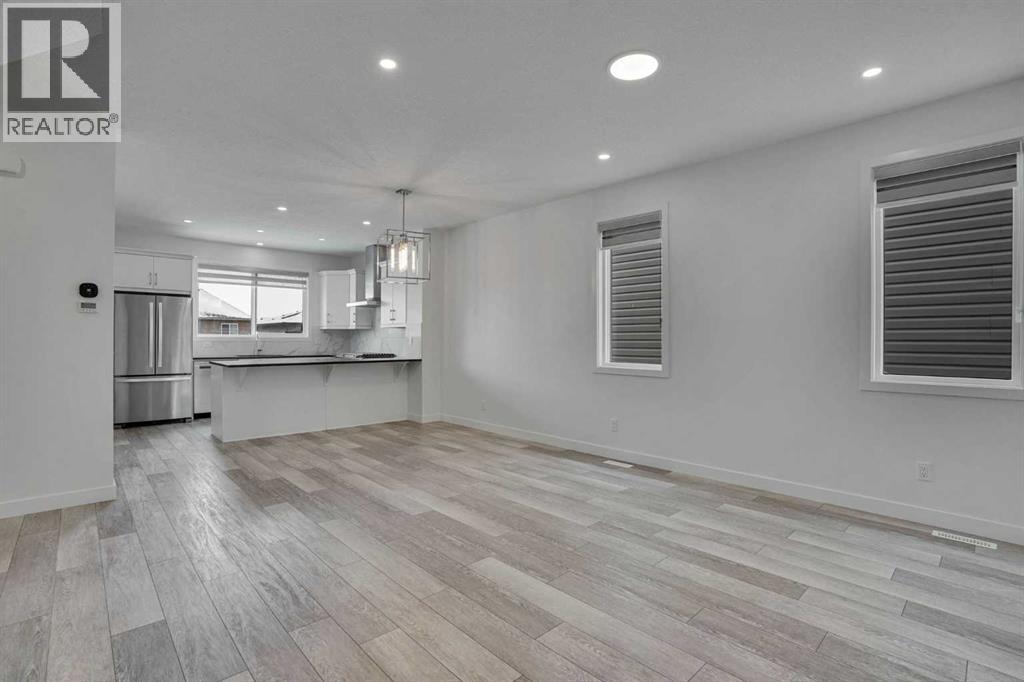 OPEN HOUSE - Sunday 26 April 1:00-4:00 pm. Discover a rare walkout basement home in one of Calgary’s newest and most vibrant communities — Moraine. Thoughtfully designed and built for modern living, this 2022 residence offers four bedrooms and three full baths, blending elegance, comfort, and cutting edge technology. The main floor welcomes you with bright, open concept living under 9 foot ceilings. The kitchen is a showpiece, featuring sleek quartz countertops, abundant cabinetry, and high end appliances, including a gas range that elevates both style and functionality. Matching quartz surfaces in the bathrooms create a cohesive, luxurious aesthetic throughout. A main floor bedroom and full bath provide flexibility — ideal for guests, multigenerational living, or a private home office. Natural light fills every space, enhanced by zebra blinds for adjustable privacy. Luxury vinyl plank flooring adds sophistication and durability across the main level. Upstairs, the primary suite offers a peaceful retreat with a four piece ensuite and a generous walk in closet. Two additional bedrooms, a full bath, a bonus room, and convenient upper level laundry complete this well planned layout. The unfinished walkout basement is a blank canvas awaiting your creative touch, perfectly laid out to maximize usable space. Located on a premium lot, and just out your front door, you will find a beautiful green space where your children can play in safety and the community hosts summer events. This home embraces the future with smart technology and eco friendly features: intelligent lighting and thermostat controls, an integrated security system, and six solar panels that harness the sun’s power to reduce energy costs. A tankless water heater ensures endless hot water, while the heat recovery ventilation system, triple pane windows, and high efficiency two stage furnace maintain comfort and air quality year round. With the balance of the new home warranty still in place, this property of fers peace of mind and exceptional value with many fit and finish upgrades. Experience the perfect combination of innovation, efficiency, and modern design — all in the heart of Moraine. (id:63190)
