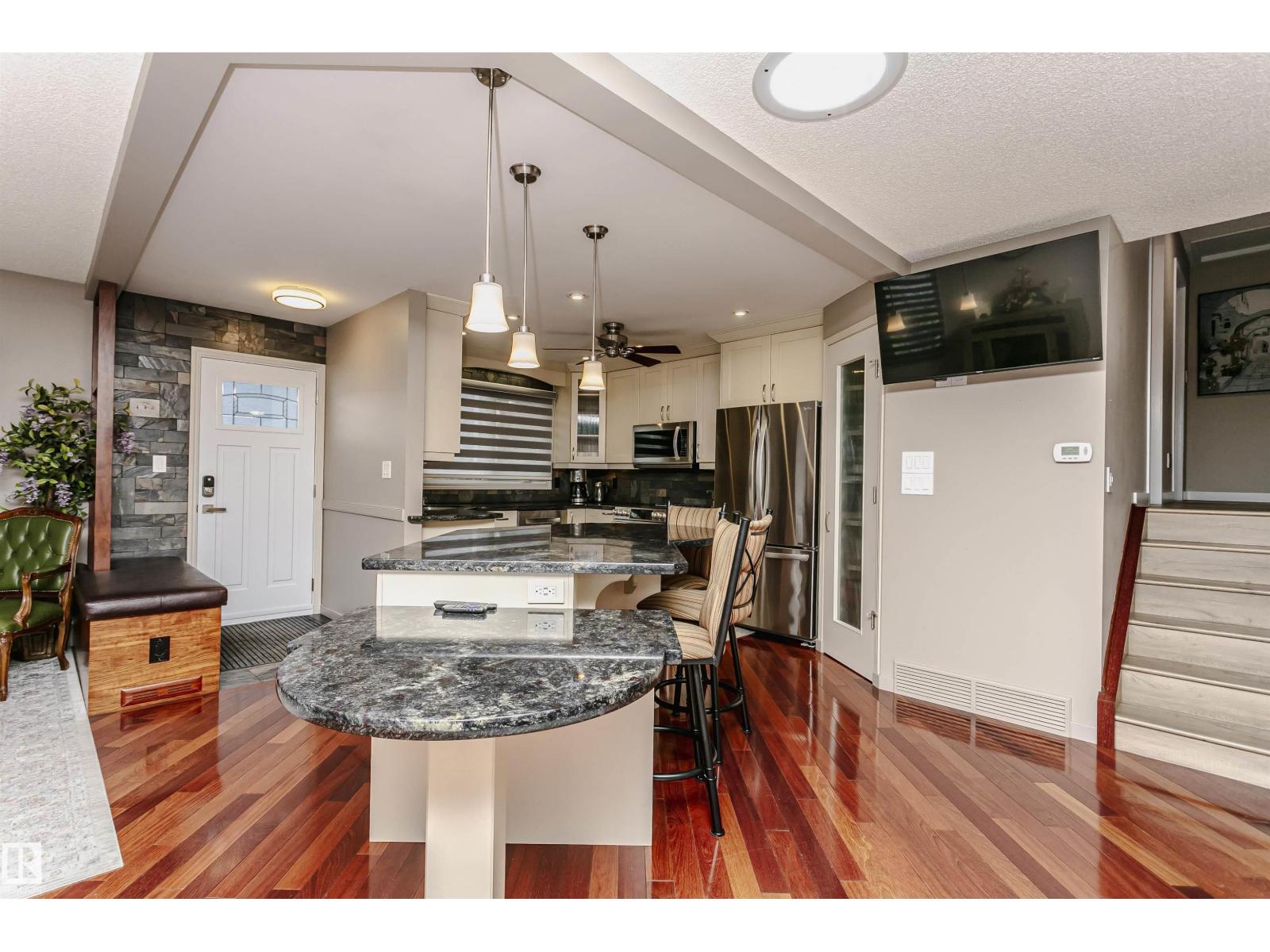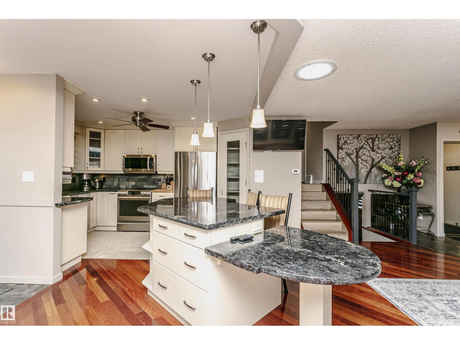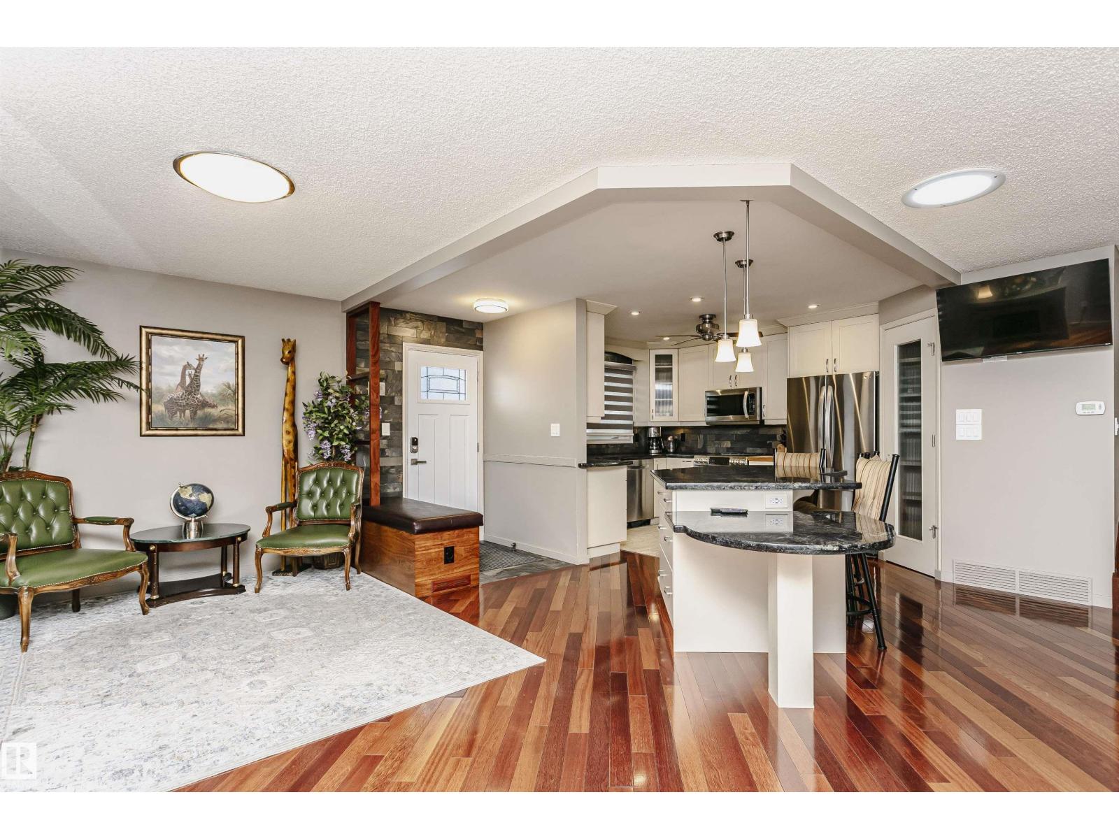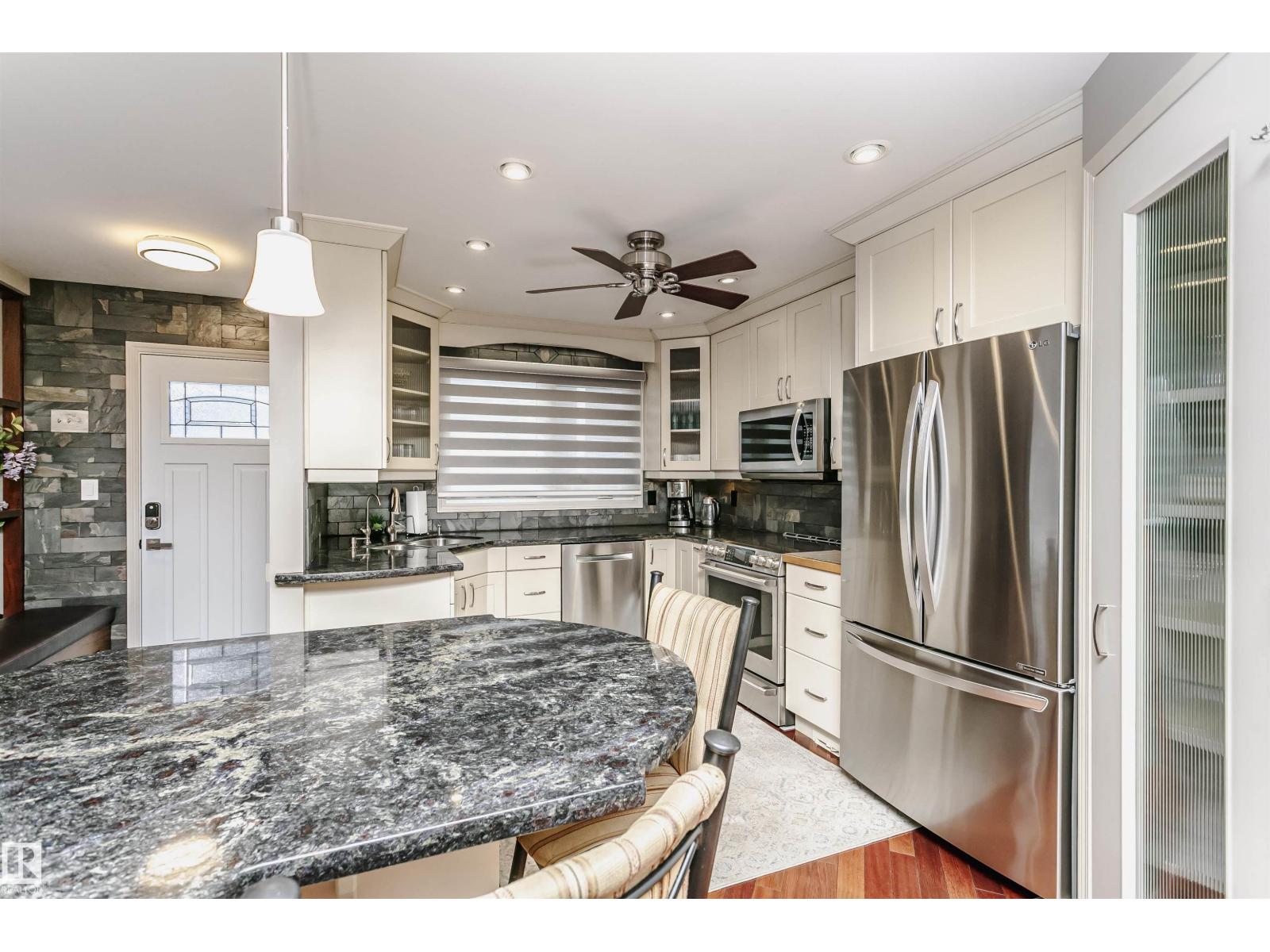 Welcome to this stunning 4 level split, located on a quiet street in La Perle neighborhood, nestled on a perfectly manicured setting. Fully renovated dream home, 4-beds, 2.5 bath w/ 2500 sq ft of living space. The open concept layout is perfect for a growing family with space for everyone! Luxury kitchen w/ granite counter tops, SS appliances, huge island & pantry. Living room w/ massive window & adjacent dining room. Brazilian cherry hardwood floors throughout main floor. Up one level you'll find 3 bedrooms, including a comfortable primary w/ 3-pice ensuite. The lower level features a family room w/ gas fireplace, 4th bedroom, bath & laundry. An enormous rec. room. Triple pane windows, solar tubes, bathroom, new flooring are just a few of the many updates done. The backyard is a true oasis with patio fire pit and huge mature trees, which create a relaxing setting for an evening entertainment. The oversized garage with extra long driveway leave room for loads of parking! This home is spectacular! (id:63190)