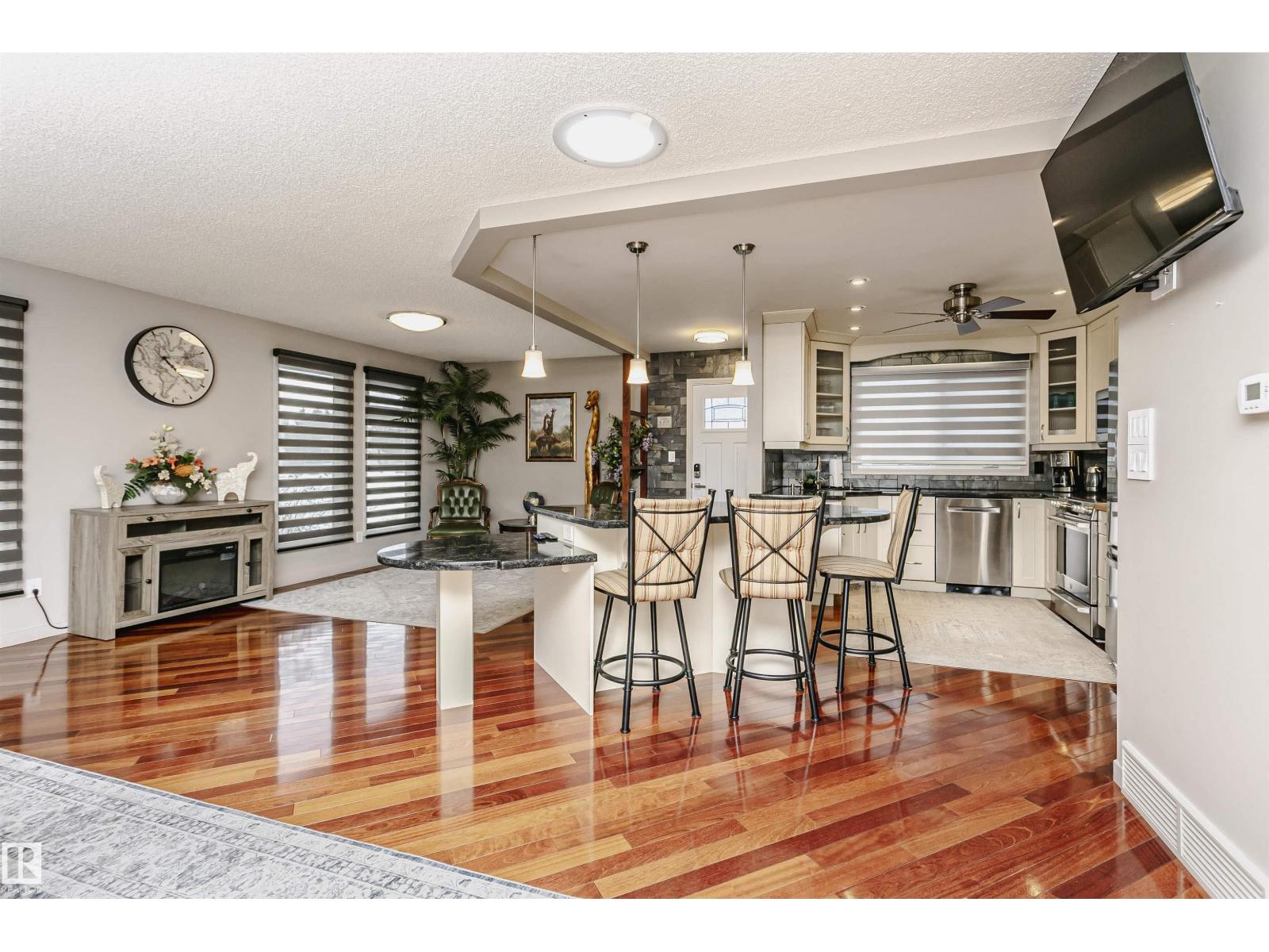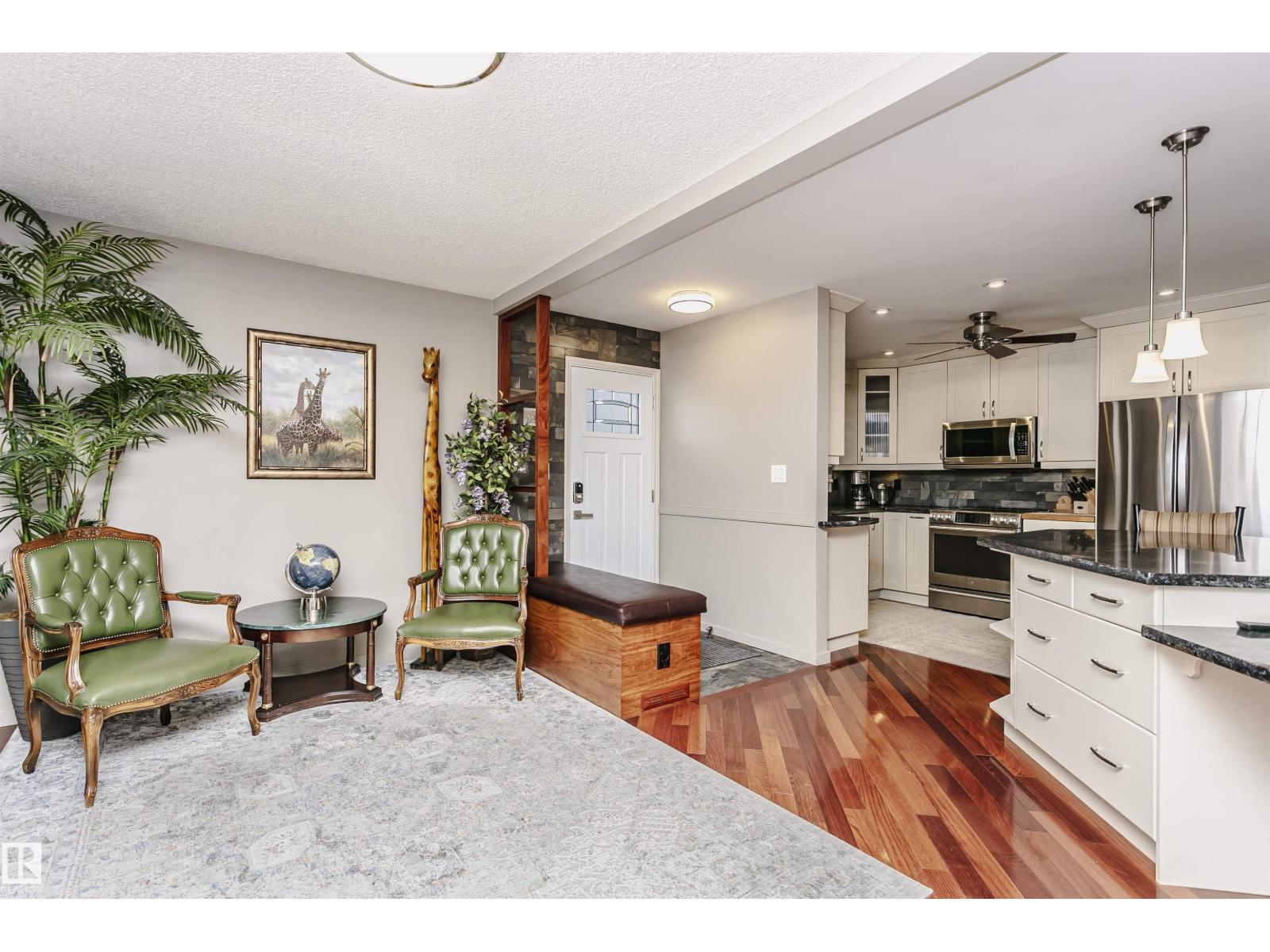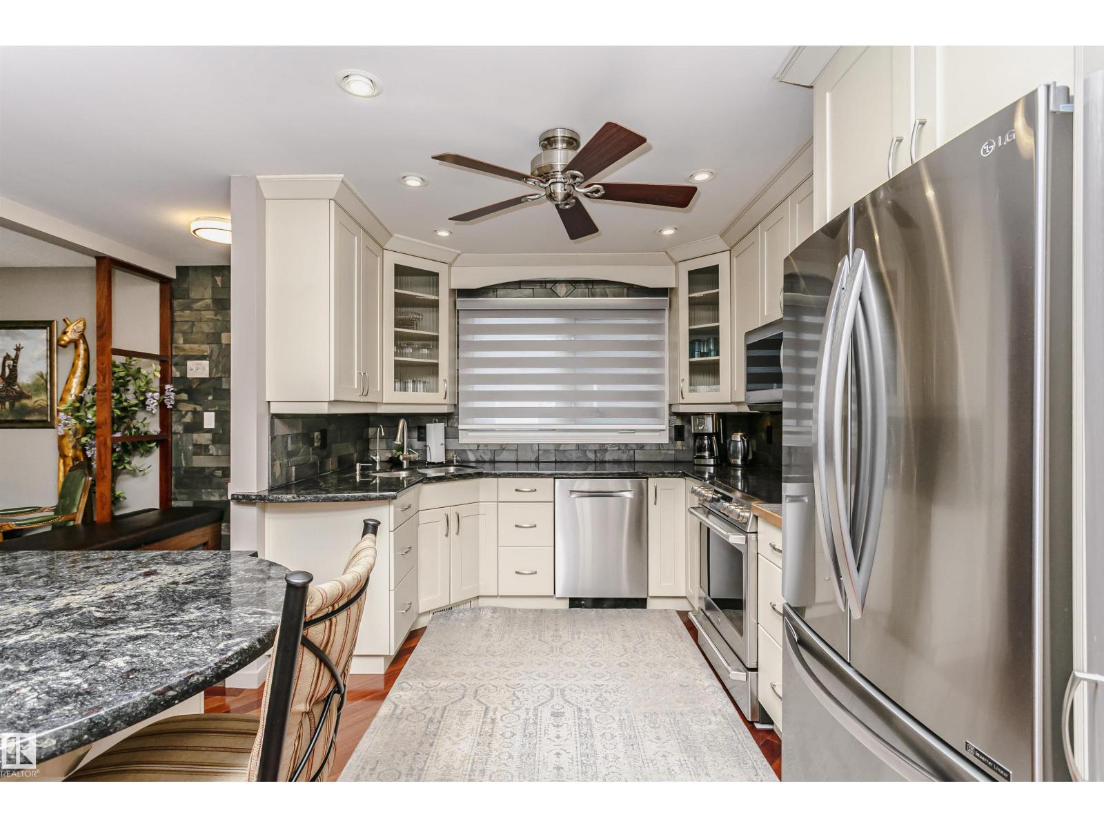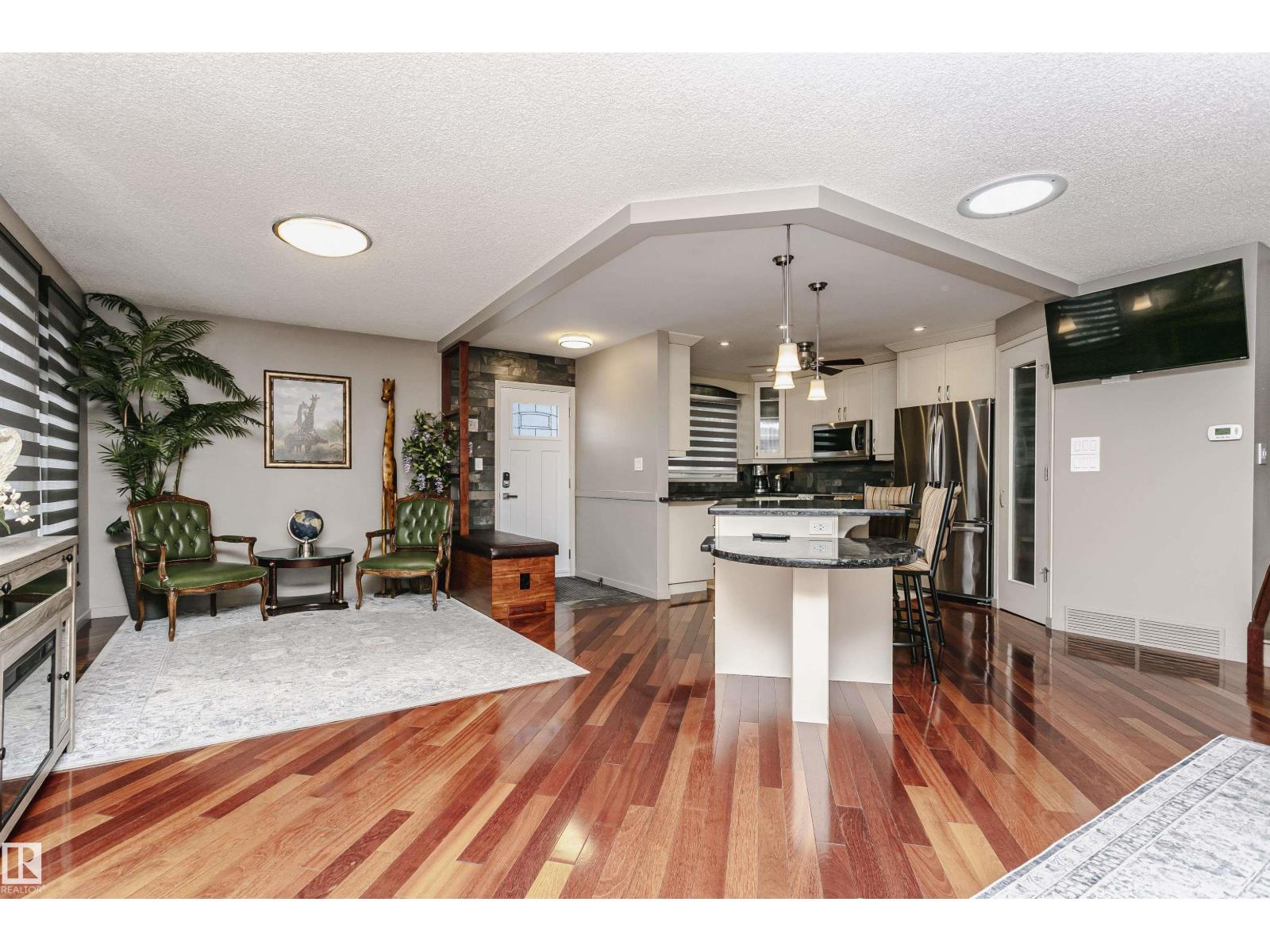Welcome to this stunning 4 level split, located on a quiet street in La Perle neighborhood, nestled on a perfectly manicured setting. Fully renovated dream home, 4-beds, 2.5 bath w/ 2500 sq ft of living space. The open concept layout is perfect for a growing family with space for everyone! Luxury kitchen w/ granite counter tops, SS appliances, huge island & pantry. Living room w/ massive window & adjacent dining room. Brazilian cherry hardwood floors throughout main floor. Up one level you'll find 3 bedrooms, including a comfortable primary w/ 3-pice ensuite. The lower level features a family room w/ gas fireplace, 4th bedroom, bath & laundry. An enormous rec. room. Triple pane windows, solar tubes, bathroom, new flooring are just a few of the many updates done. The backyard is a true oasis with patio fire pit and huge mature trees, which create a relaxing setting for an evening entertainment. The oversized garage with extra long driveway leave room for loads of parking! This home is spectacular! (id:63190)