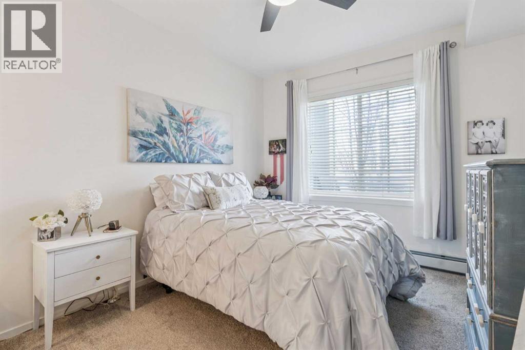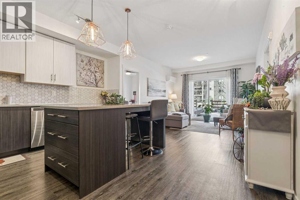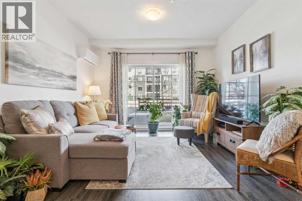 An absolutely gorgeous, move-in ready ground-floor apartment with two bedrooms and two connected bathrooms! This is a perfect set up for a first-time home buyer, including someone who would like a roommate, or a family that is looking for easy access to take a dog for a walk. The layout and location work for most situations! You will absolutely love the footprint of this home, including the ISLAND KITCHEN, which offers plenty of QUARTZ COUNTER TOPS, A HUGE EXTRA PANTRY for storage, and UPGRADED STAINLESS STEEL APPLIANCES including a fridge with water and ice dispenser and a ceramic top-stove. Plus there's UPGRADED KITCHEN BACK SPLASH as well as TWO-TONED KITCHEN CABINETRY! Other features of this AMAZING HOME include 9-FOOT CEILINGS, AIR CONDITIONING, VINYL PLANK FLOORING in the kitchen and living room, UPGRADED LIGHTING, MORE QUARTZ COUNTERS IN BOTH BATHROOMS, and DOUBLE SINKS IN THE PRIMARY BATHROOM. You'll also enjoy a ceiling fan with a remote control, a kitchen breakfast bar, in suite laundry, titled underground parking, an assigned storage locker and a spacious west-facing patio that faces out to a beautifully maintained lawn and mature trees -giving you the feeling of even more space. All utilities, except electricity, are covered in the condo fees, and the current tenant says her electric bill runs about $100.00 a month. This unit is extremely clean and well maintained. Possession is available anytime starting in May. An absolute pleasure to show-Just move in and enjoy! CLICK ON THE MULTI MEDIA ICON FOR A VIRTUAL TOUR! (id:63190)