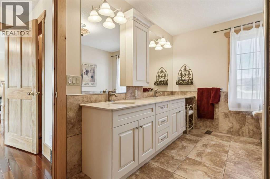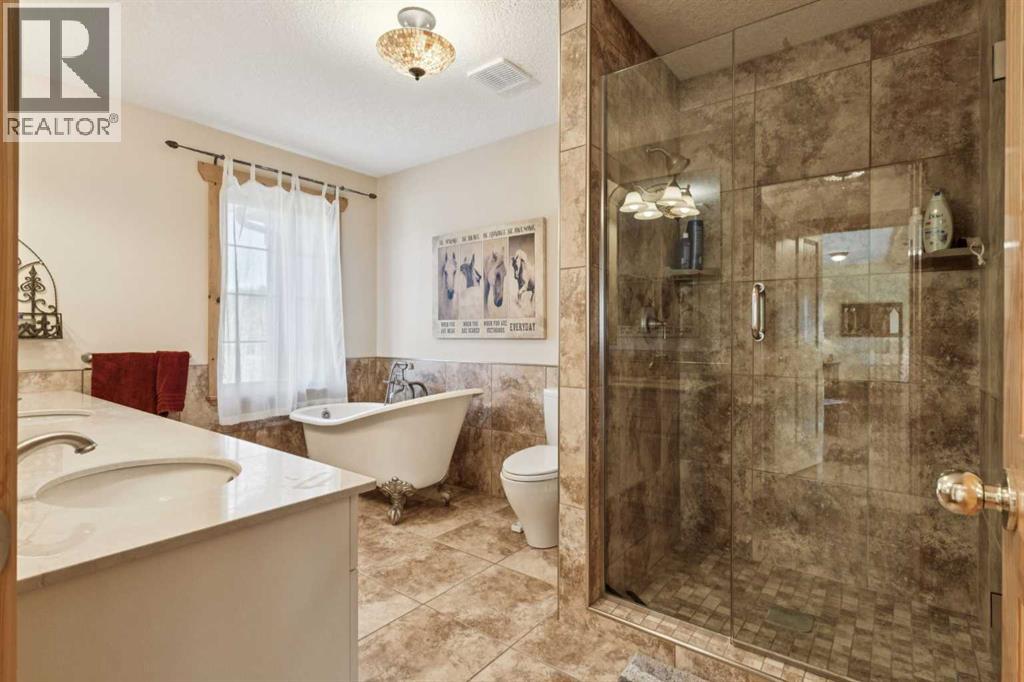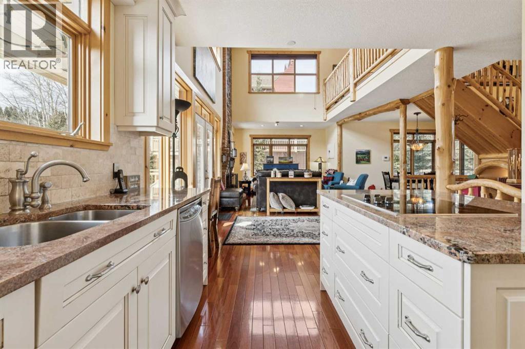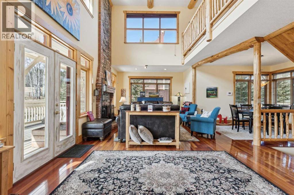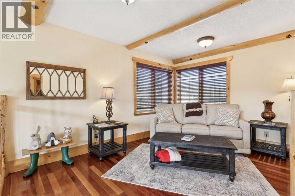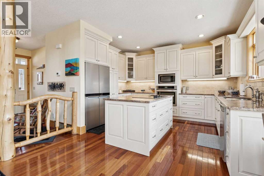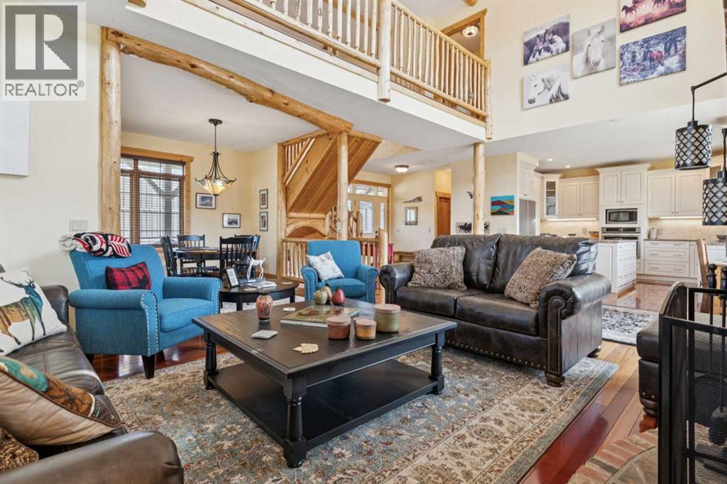 Some places are more than just a home. They are also a community and a lifestyle. Square Butte Ranch is one of Alberta’s best kept secrets, a place where you can live your Yellowstone fantasies, but without all the pesky chores…and only 35 minutes to Calgary! This light-filled corner townhouse (attached on one side only), with a total of just under 2,400 sq. ft., is surrounded by 480 acres of rolling land in this friendly recreation community. The ranch has a 120-seat "Saloon" (community center), outdoor arena, round pen, exercise room, 5 stall barn, three ponds (fishing anyone?) and direct access to extensive trails for riding and hiking in Kananaskis and MacLean Creek off-road area. You do not need to own a horse to ride here! Before entering the home you are greeted by a recently upgraded custom front door, and side panels for light and privacy. For better aesthetic entry appeal, the current owner has installed a pocket door to the laundry room and powder room. The home is an open concept floor plan with high ceilings, three long decks, wood-burning fireplace, Brazilian cherry wood flooring throughout, and French doors on the main level as well as the finished walk-out level. A spacious, ivory-stained French Country kitchen features granite countertops and very recently upgraded appliances (fridge, cooktop, and wall oven). The space between kitchen and great room is ideal for entertaining (or your Christmas tree!). Rustic pine beams and artisan woodworking are evident throughout. The primary en-suite has a claw-foot tub with a separate tiled shower. Two tiled showers also complement the powder room and basement walk-out bathrooms, both with recently upgraded fixtures. From the rear of the home is an unobstructed view of Square Butte itself with horses grazing, wildlife and fabulous sunsets enjoyed even longer into the evening- thanks to a large deck overhead gas heater. This home is offered beautifully furnished with an extensive list of upgrades. Some ha ve been mentioned while other major upgrades include monitored alarm system, complete interior repaint, exterior house and garage painting, phantom screens front and back (allowing constant air flow), new roof, and new gutters. Imagine no more exterior maintenance! You can just relax ... making this home and ranch the perfect getaway property! That is if you can bring yourself to leave because, once you fall in love with life at the ranch, you might never want to! Check out the streaming video, and 3-D tour, then grab your Cowboy hat and book your showing today! (id:63190)