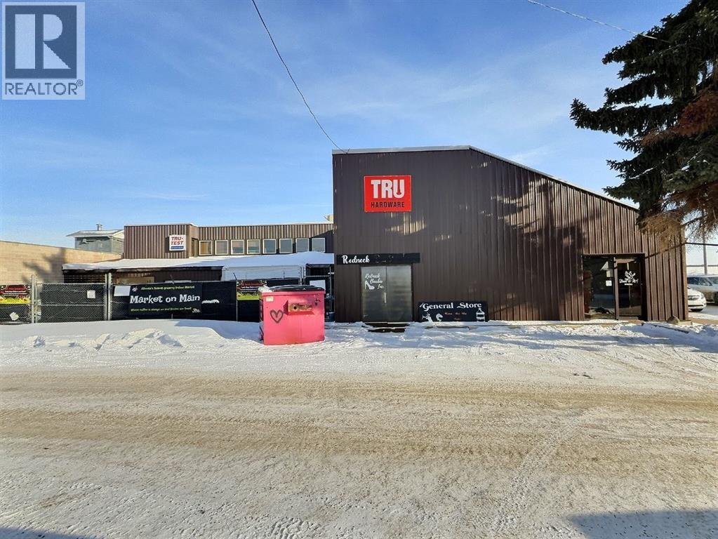 Former Bank Location Built to Last !!! HIGH REVENUE YIELD MULTI TENANT Possible. River Bank Common !!!! Ideally Located on a corner lot at the intersection of 48 Ave. & 50 Street in Ponoka. Be a Landlord of Multiple Businesses, Golden Business Opportunity to own Land, Building & Business already included in List price! This centralized commercial retail property has the space and accommodations to house one, or a multitude of store fronts or retailers like it is currently hosting. With the expansive open floor plan on the main floor, or the individual retail spaces on the second floor with a suite. The Building is already home to many businesses Like Bruces hardware, aUkrainian themed Bistro , Boutique & much more possibilities. The building includes in the purchase price a bottled water business & equipmentcurrently in operation & ILCO key cutting machine. The Building has 2 separate wash rooms & 1 full bathroom with the suite. The suite has a huge potential for renting for even more rental yield. The brick exterior adds a rustic feel, along with the vast expanse of store front windows. Brand new Windows on the East & South of Building upgraded in 2026.Many different venues have utilized this expansive space for a multitude of purposes, from local markets, cafe's, aesthetic store fronts, retail, as well as a hardware and a general store. There is a green house attached towards the west of the building. Ideal for a nursery or vegetable growing & retail business. The area for the green house is over 1,300 Square feet (22' 7" x 64' 10") The fully fenced back yard is 1378 sq Ft (53'x26') . (id:63190)