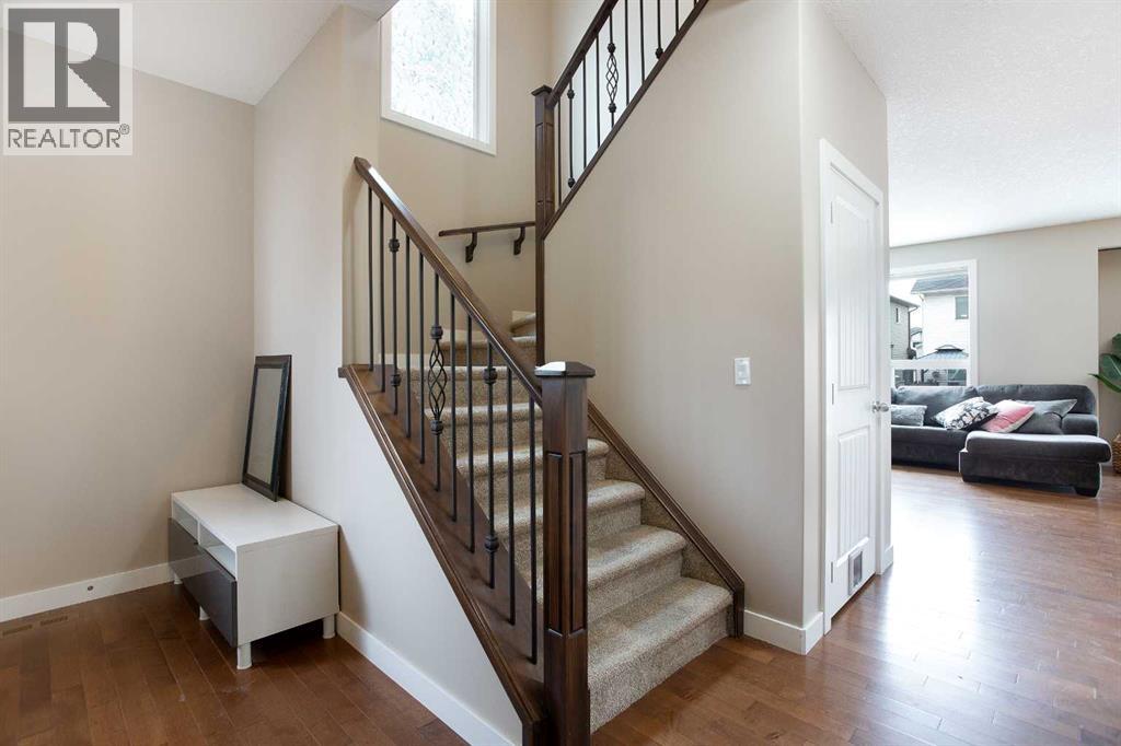 Welcome to this stunning family retreat in the highly desirable community of Morningside, where thoughtful design meets everyday luxury. Offering 2,517 square feet of immaculately maintained living space, this 3-bedroom, 3.5-bathroom home greets you with a charming front porch and an expansive foyer that opens into a seamless, light-filled layout. The main level is bathed in a serene, neutral palette, perfectly complemented by nine-foot ceilings and the sophisticated glow of gleaming hardwood floors. The living room invites you to unwind beside a beautiful corner gas fireplace, elegantly finished with a classic mantle and stone facing. This space flows effortlessly into a chef’s dream kitchen, where style meets high-end functionality. With upgraded black and stainless steel appliances, sleek granite countertops and premium soft-close cabinetry surround a massive central island—the perfect hub for morning coffee or casual entertaining. Storage is effortless thanks to the walk-through pantry, which provides convenient access to the mudroom and the double attached garage. Nearby, the dining area offers a versatile setting for everything from intimate family dinners to large holiday gatherings, with direct access to your private outdoor sanctuary. Ascending the widened staircase with its elegant wrought iron spindles, you’ll discover an upper level designed for modern comfort. The primary suite serves as a true sanctuary, boasting a spa-like five-piece ensuite complete with dual vanities, a deep corner soaker tub for luxurious relaxation, and a separate walk-in shower. Two additional generously sized bedrooms share a bright four-piece bathroom, while a dedicated laundry room with a Brand new Washer and Dryer, adds a layer of daily convenience. The vaulted bonus room serves as the home’s crowning jewel; here, massive floor-to-ceiling windows flood the space with natural light, offering a perfect setting for a home theater or play area. The experience continues in the ful ly finished basement, which features an enormous family room, an additional three-piece bathroom, and a large storage room. Outdoors, the beautifully landscaped, fully fenced backyard beckons. A gorgeous two-tiered deck stands ready for summer BBQs, overlooking established garden beds that provide a touch of lush privacy. Perfectly situated in a family-centric neighborhood, this home puts you steps away from scenic walking paths, a tranquil pond, and top-tier amenities including schools and shopping. This turn-key masterpiece is more than just a house; it’s the lifestyle you’ve been waiting for. Don’t let this one slip away—schedule your private tour today! (id:63190)