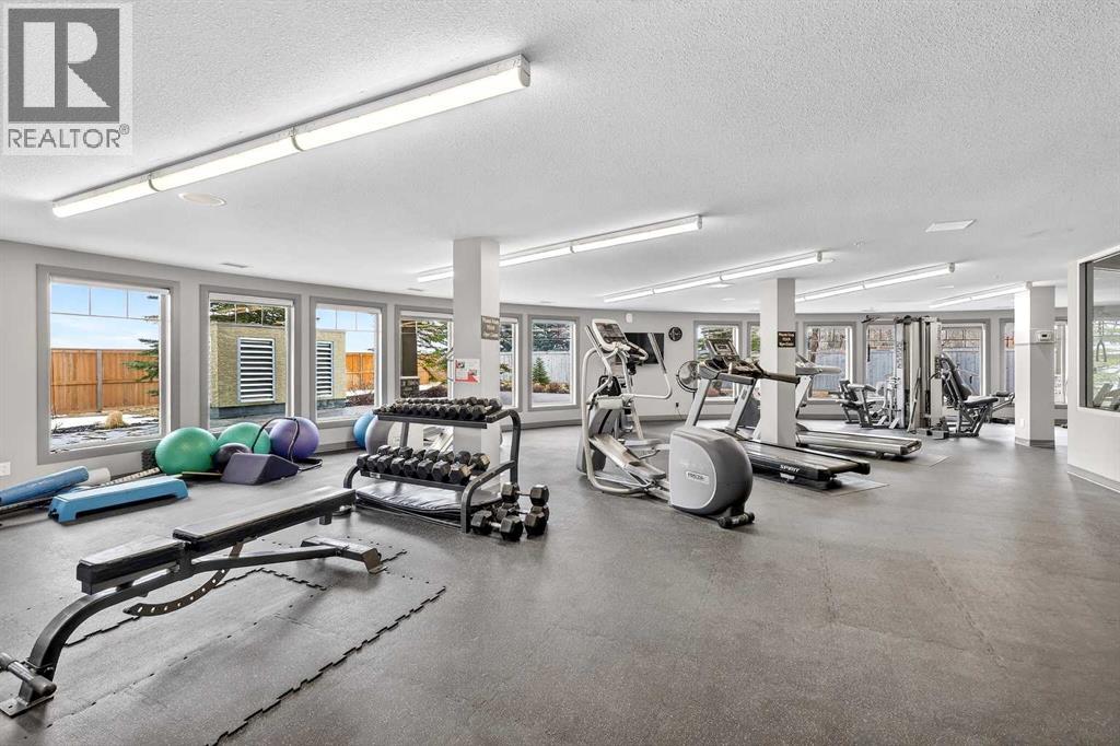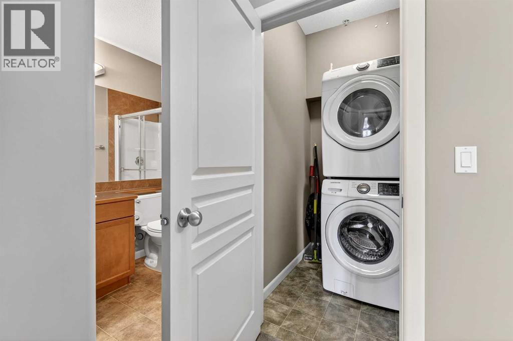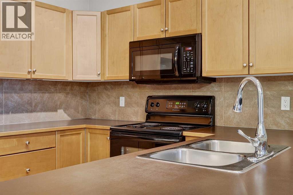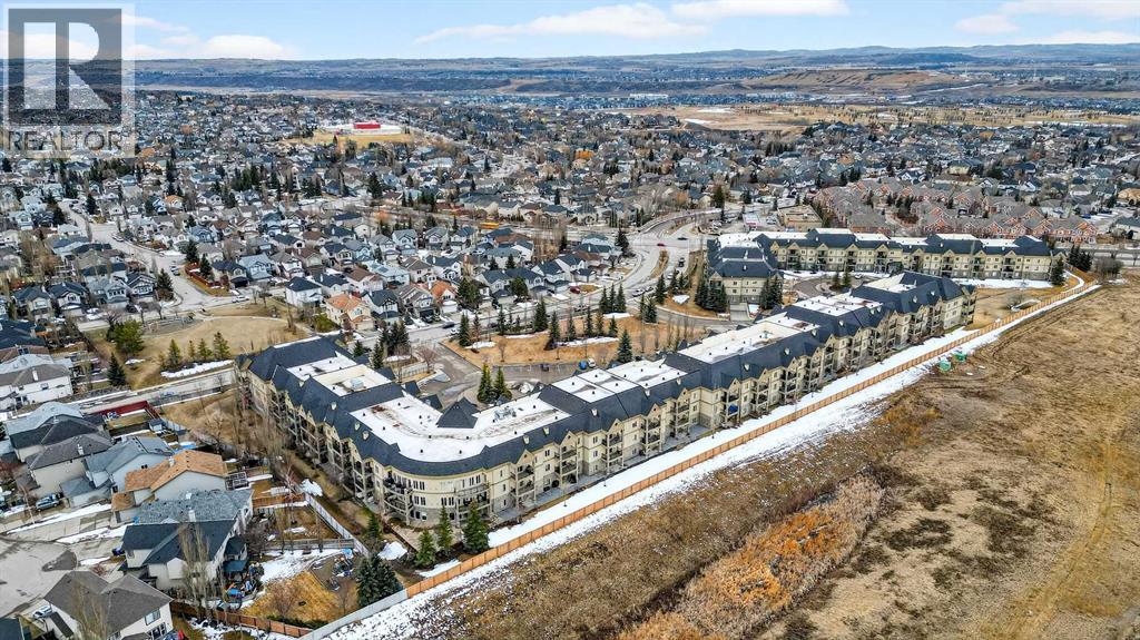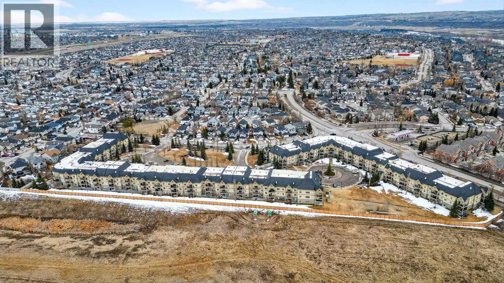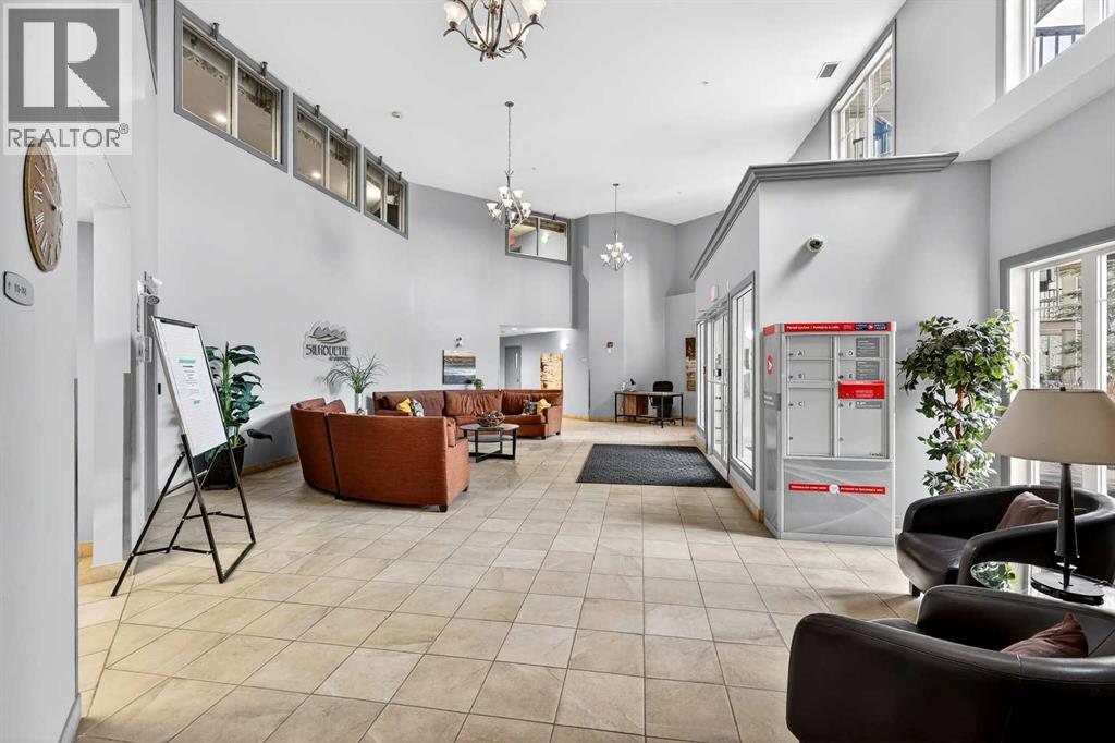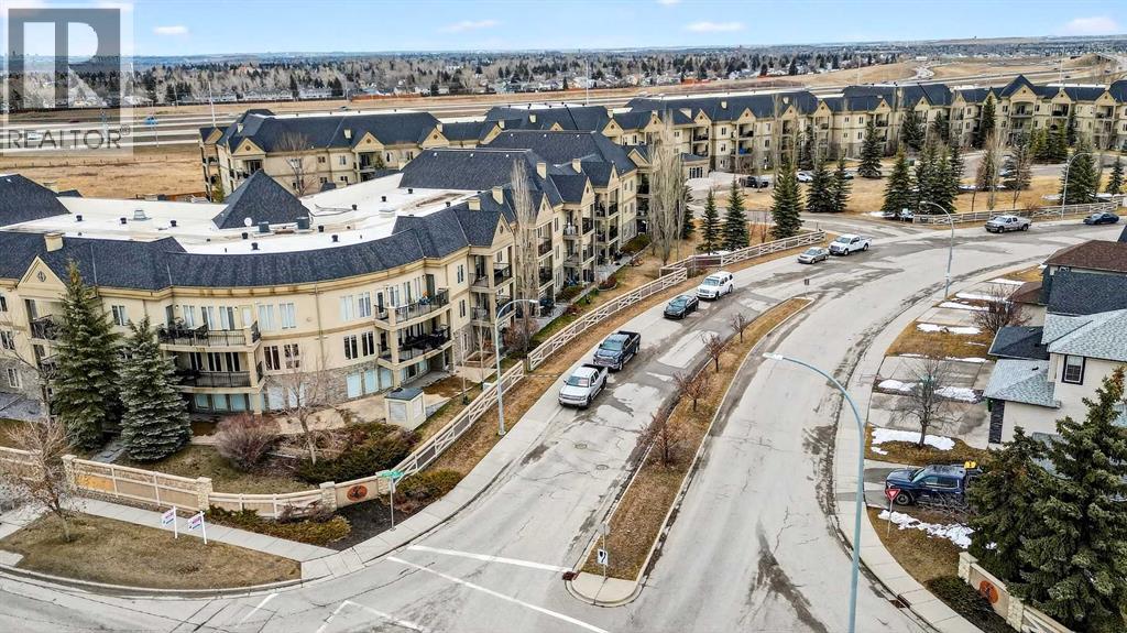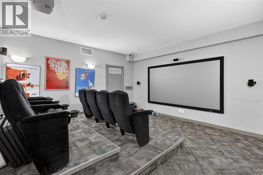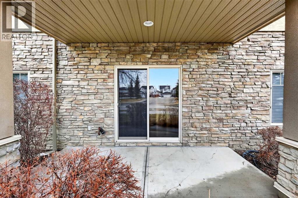 This is the premier location and building for the experiential lifestyle you have been searching for! This 2-bedroom + Den model features a great open-concept floor plan with high 8'9" ceilings, the desirable south-facing "The Silhouette" - Adult-only living. This main floor plan does not come up for sale often! Located on the first floor, it has its own private south-facing balcony. With views of the front park, walkways and near the visitor parking stalls. A premium condo with over 1133 SF offers a Gourmet Kitchen: black appliances, stainless steel sink, ample countertop space, tile backsplash, a flush eating bar, wood drawers and cabinet doors. In-suite laundry with space for storage. Indoor titled parking + storage cage area to keep your extra items safe out of the way. The building is perfectly located with close proximity to the South Health Campus, Shopping, Food, Stoney Trail, Deerfoot, Transit & Starbucks! The Silhouette in Cranston is an 18+ adult-oriented condominium in SE Calgary offering 1,000+ sq. ft. units. Residents enjoy a peaceful, amenity-rich environment with a fitness centre, sauna, hot tub, movie room, party room with billiards, dog run, and car wash bay in the underground parkade. Key Community Amenities at The Silhouette include Health & Wellness events, Entertainment & Social clubs, Convenience & Security, Heated underground parking, assigned storage cages, and a well-maintained lobby. Pet-Friendly: Includes a dog run/off-leash area. Located minutes from Cranston's walking paths and ridge views, the complex provides easy access to keep active at any age. Don’t miss this opportunity. Call your friendly REALTOR(R) to book your viewing right away! (id:63190)