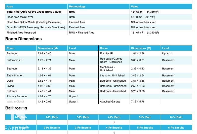 | Kitchen | Main level | 4.09 × 4.61 | — |