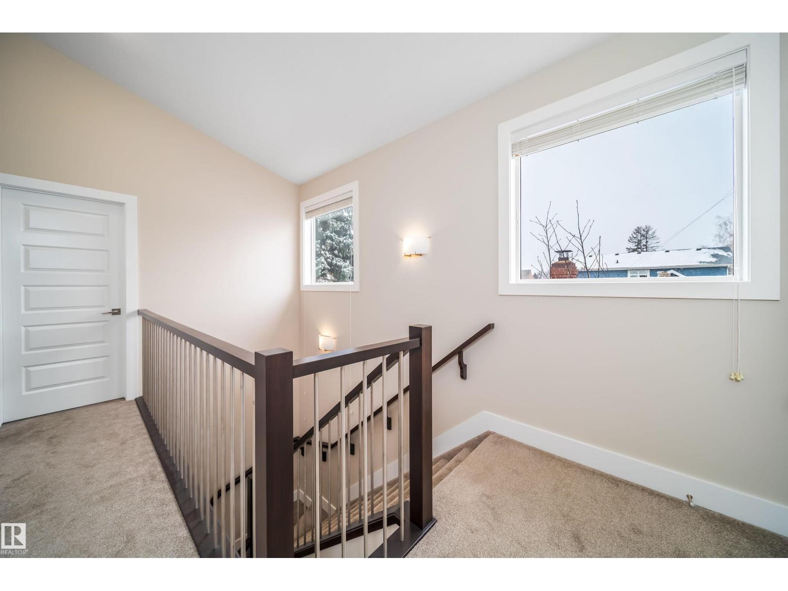 Located 1.5 blocks from the picturesque Millcreek Ravine, this upscale, contemporary-designed home offers the perfect blend of style and functionality. The open-concept layout, soaring vaulted ceilings, and open-to-below staircase create a spacious, airy ambiance throughout. With 9-foot ceilings , plus oversized windows—the home is bathed in natural light. High-end finishes like granite countertops, quality flooring and bath pieces, bring a modern yet warm aesthetic. The gourmet kitchen is ideal for entertaining, featuring a large island, stainless steel appliances, walk-in pantry, and plenty of prep space. You'll love the convenience of large mudrooms at both the front and rear entrances. Upstairs, the vaulted-ceiling primary suite boasts a massive walk-in closet and a luxurious 4-piece ensuite with dual vanities. The fully finished basement adds even more living space to this impressive home. Central Air Conditioner for hot summer months. Nice sized decked yard. A rare, stylish gem ! (id:63190)