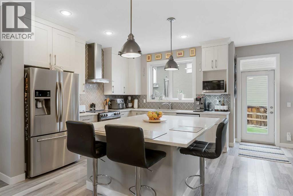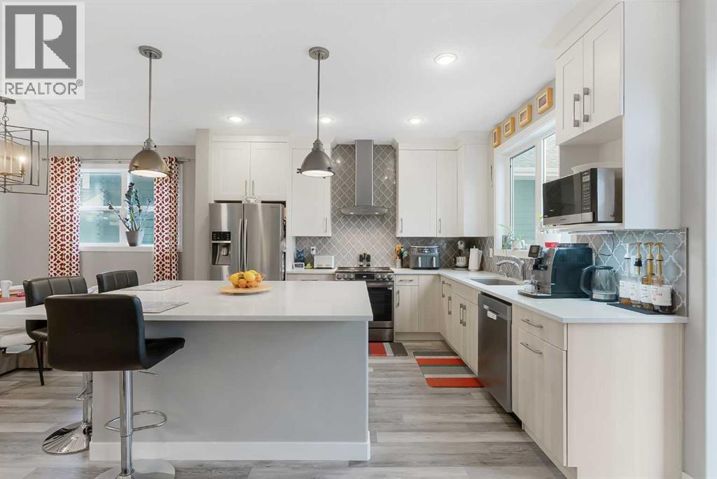This beautiful Auburn Bay home is packed with upgrades and designed for family living. The exterior features durable Hardie board siding, permanent programmable exterior lighting and over $40,000 invested in backyard living which Includes a 2 tiered PVC deck, artificial turf large custom storage shed and privacy fencing. The attached double garage is heated and pre-wired for a future EV charging station. Inside the open-to-above foyer creates a bright and airy first impression. The main floor offers 9-foot ceilings, large windows, stylish vinyl plank flooring throughout the main floor , along with a spacious office/flex room featuring a sliding barn door. The chef-inspired kitchen showcases a massive quartz island and walk-in pantry, flowing seamlessly into the dining and living rooms. There you will find a custom built-in feature wall and electric fireplace perfect for entertaining and everyday comfort. Upstairs you will find 3 generous bedrooms, including a king-sized primary retreat, a large bonus room and a convenient built-in workspace. and the upper-level laundry room adds everyday practicality. The main bathroom features a trough-style sink with dual faucets, while the primary ensuite offers in-floor heating, floor to ceiling glass shower and dual sinks with a quartz countertop. Additional features include central air conditioning and water softener. Ideally located with easy access to Auburn Bay Lake, schools, parks, green spaces and all amenities. This home offers the perfect blend of lifestyle and convenience. (id:63190)
