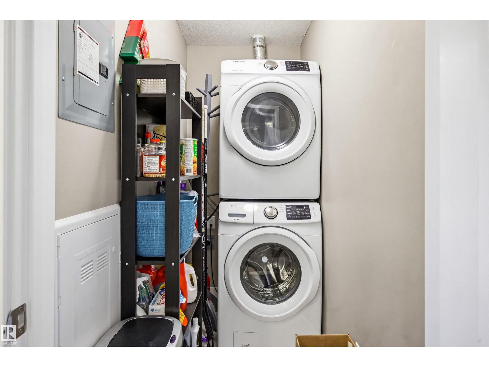 Welcome to Northshore in Schonsee! This well-maintained home is located in a quality-built building by Carrington Communities, known for its thoughtful design and excellent amenities. Residents enjoy access to a fitness centre, social room, heated underground parking, a storage locker, and ample visitor parking. This bright second-floor unit showcases numerous upgrades, including enhanced cabinetry, an upgraded kitchen, modern appliances, and refreshed bathrooms. The functional layout is complemented by a central island, ideal for both everyday living and entertaining. The primary bedroom features a private 3-piece ensuite and a walk in closet. A second bedroom, a full 4-piece bathroom, and convenient in-suite laundry complete the space. This unit includes one heated underground parking stall with an attached storage unit. Ideally located close to parks, schools, shopping, and with quick access to Anthony Henday Drive for easy commuting. (id:63190)