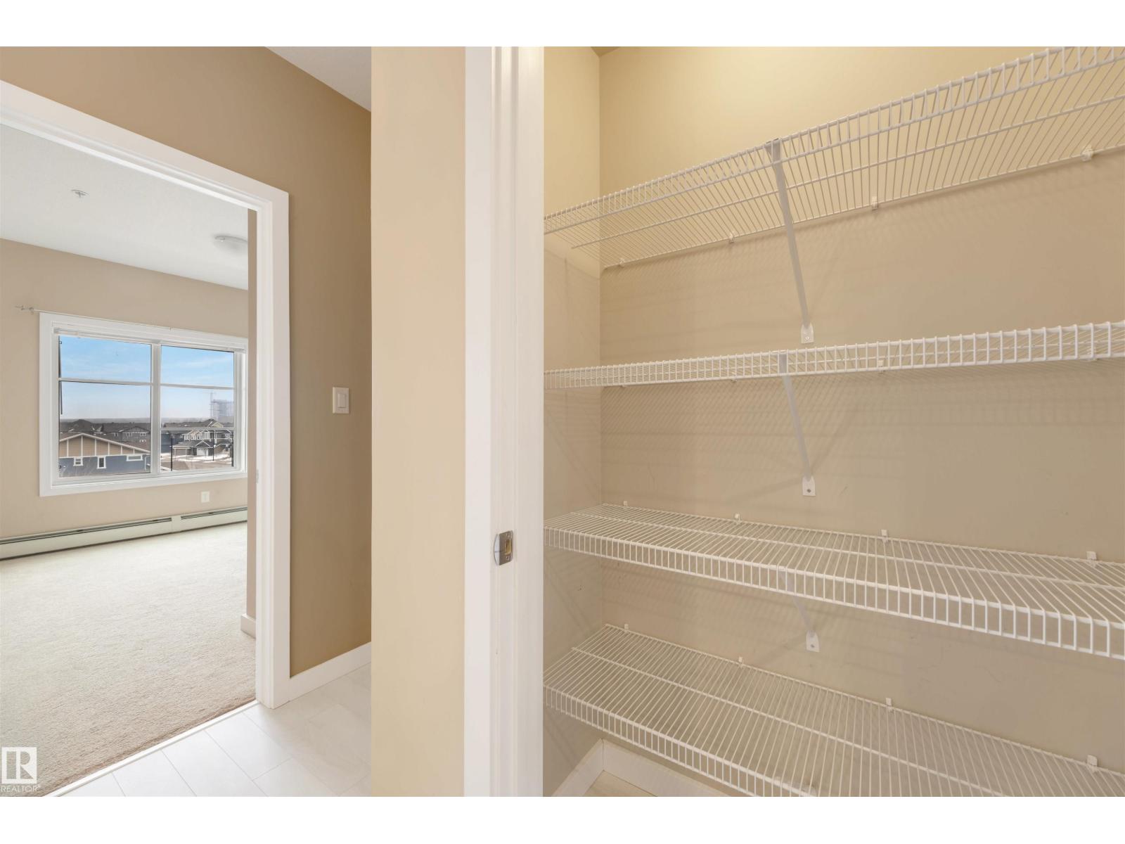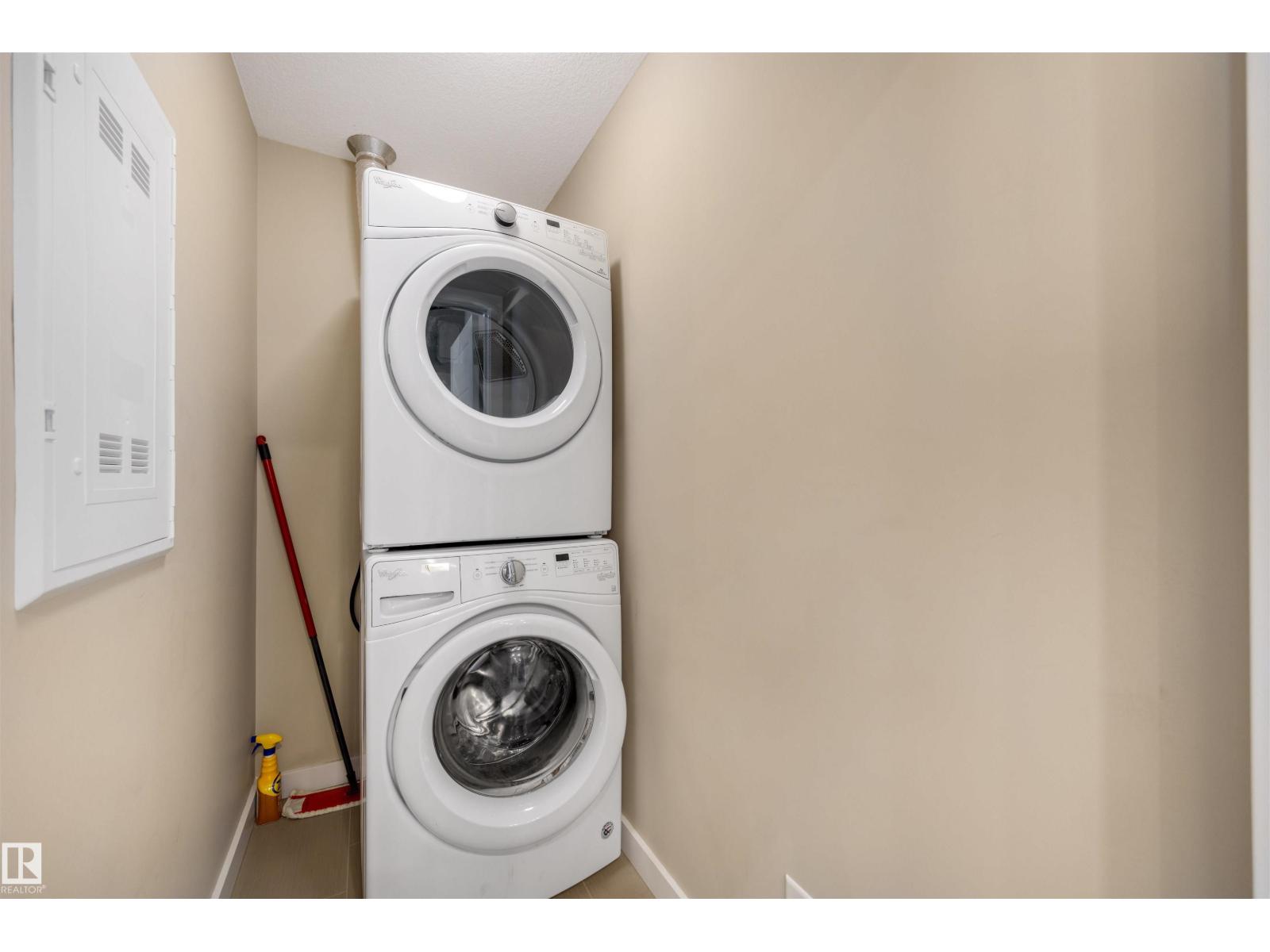 Ideally located, TOP floor, and move-in ready- this 2 bed 2 bath unit checks all the boxes! The unit comes with the convenience of in-suite laundry and TWO titled parking stalls (Underground with Storage + Surface with plug-in). Have peace of mind knowing the unit was immaculately maintained by the original owners and situated with minimal shared walls. Enjoy all day sunshine from your unobstructed SOUTH facing balcony, filling the unit with natural light. The modern kitchen features Quartz countertops, Stainless Steel Appliances, a generous Pantry, and an Island with eat-up bar. The open concept design flows seamlessly into a bright living room and designated workspace, along with 4-piece bath. The spacious primary bedroom includes dual closets and a 3-piece bath. Amenities include a GYM, SOCIAL ROOM, and GUEST SUITE. This desirable building backs parks, ponds, and walking trails- along with quick access to the Anthony Henday, Whitemud, Costco, River Cree, Lewis Estates Golf Course, and so much more! (id:63190)