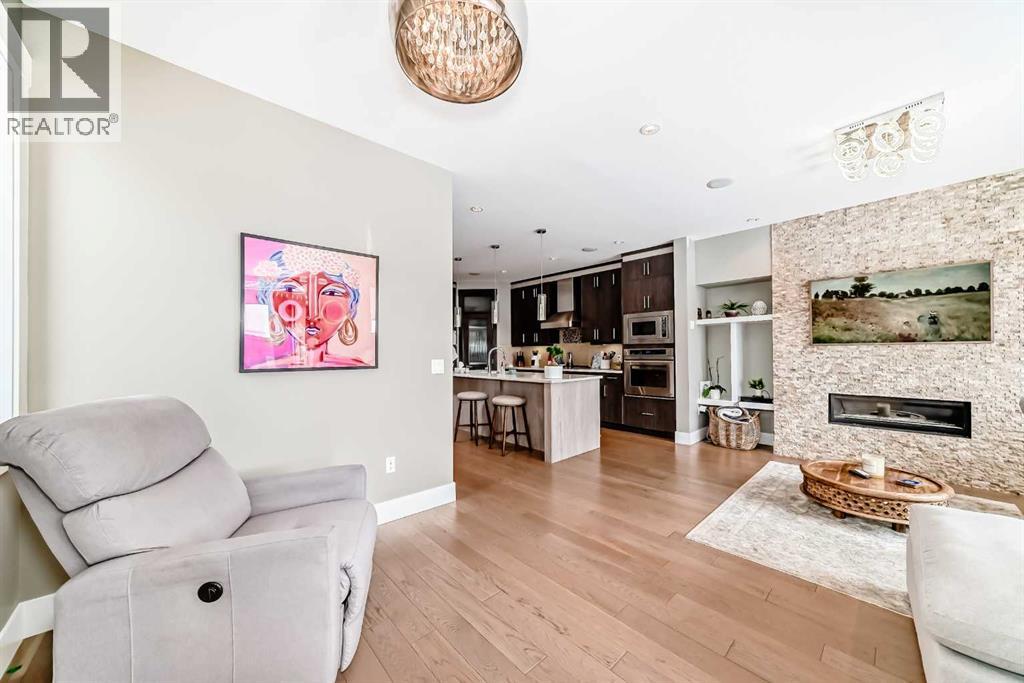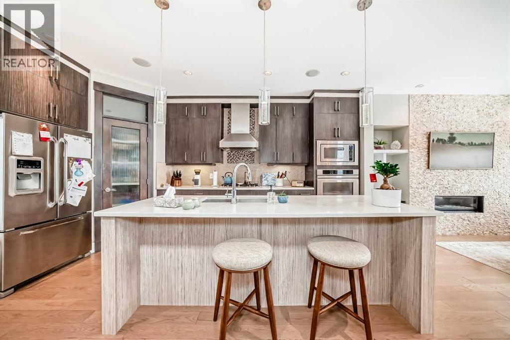 Welcome to 2117 51 Avenue SW, a beautifully crafted semi-detached home offering 2,706 sq ft of luxurious living space. This executive build features high-end finishes, impeccable design, and thoughtful details throughout.Features You'll Love:Main Floor: 9-foot ceilings, elegant engineered oak hardwood, and a cozy gas fireplace with built-insKitchen: Gourmet appliances, sleek cabinetry, Island with breakfast bar and a full pantryUpper Floor: 12-foot ceiling primary bedroom with a double-sided fireplace, spa-like ensuite, custom walk-in closet, and two additional spacious bedroomsOffice & Laundry: Functional second-floor layout with office and dedicated laundry spacesFully Finished Basement: Wet bar with wine fridge, media room built-ins, full bath, and large fourth bedroom with walk-in closetOutdoor Oasis: A well-sized deck with a gas line for your BBQ, perfect for summer eveningsParking: Detached double garage for convenienceLocated in desirable North Glenmore Park, this home is ideal for families, professionals, or anyone looking for elegance and comfort.Don’t miss this rare opportunity! (id:63190)