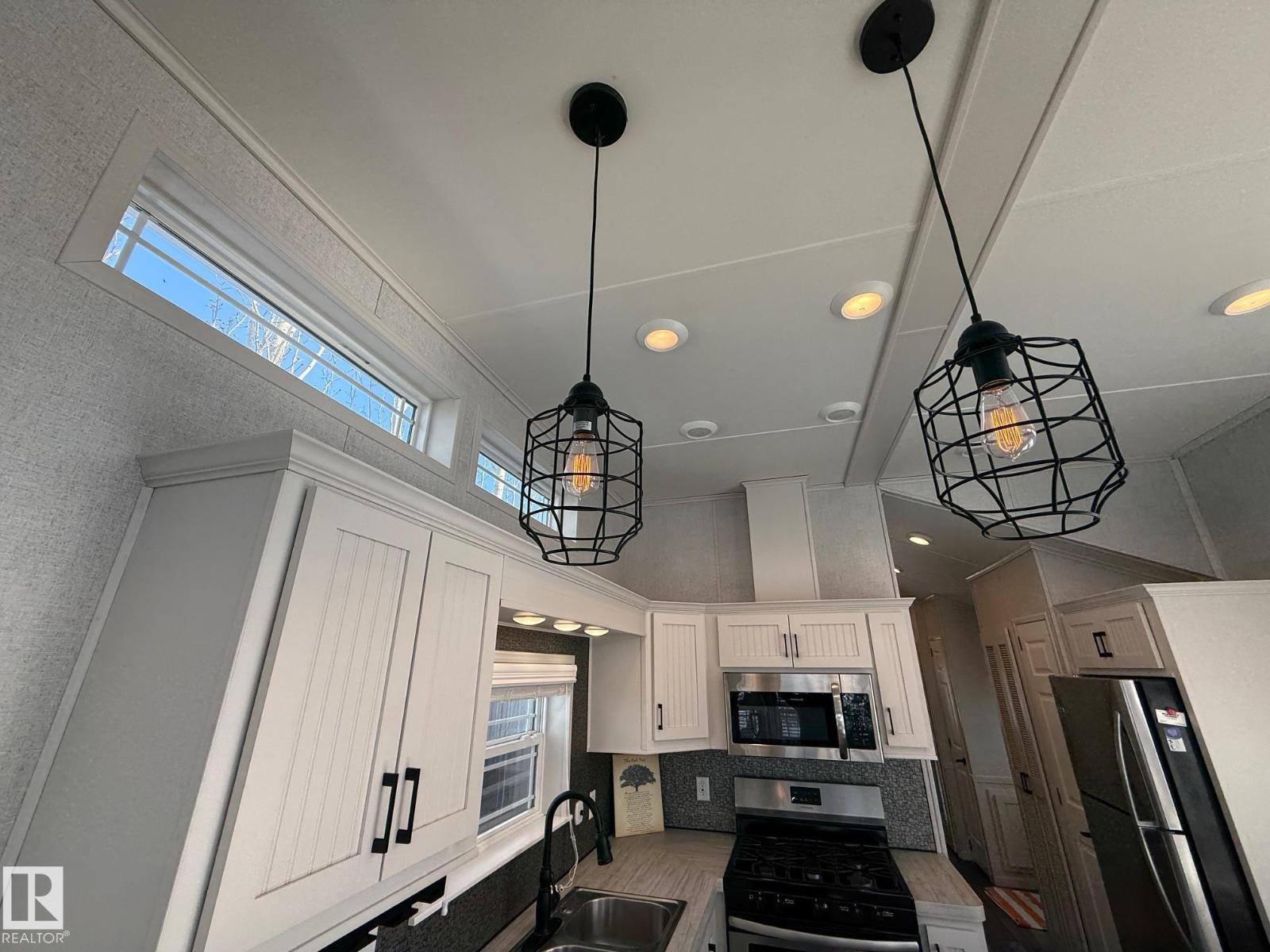 *Sunset Shores RV Resort* Private gated Four Season lake living could be yours at Sunset Shores Resort on Isle Lake just a few km north of the Seba Beach, a short 45 min drive from Edmonton with pavement to your door! This 12x40 ft quality four season Woodland Park Model TC-302C The Candle Lake Features 2 bedrooms, a master bedroom & bunk room, Large 3pc bathroom & open floor-plan with vaulted ceilings, amazing view windows, electric fireplace, large kitchen with stainless steel appliances, eating bar, dining area, large living room overlooking the lake with patio doors leading to the huge L shaped deck. Lot 17 has one of the best lake views in the entire resort, Very large lot for garage & lower 2nd level development. the resort amenities include a Clubhouse, heated pool, tennis, pickle ball & basketball courts, marina & dock, walking trails, ATV, golf cart & pet friendly, Amazing social club with many activities. Isle Lake offers excellent fishing, boating & water sports. NEW CITY WATER SERVICES (id:63190)