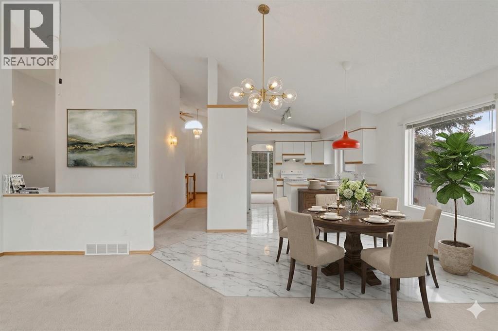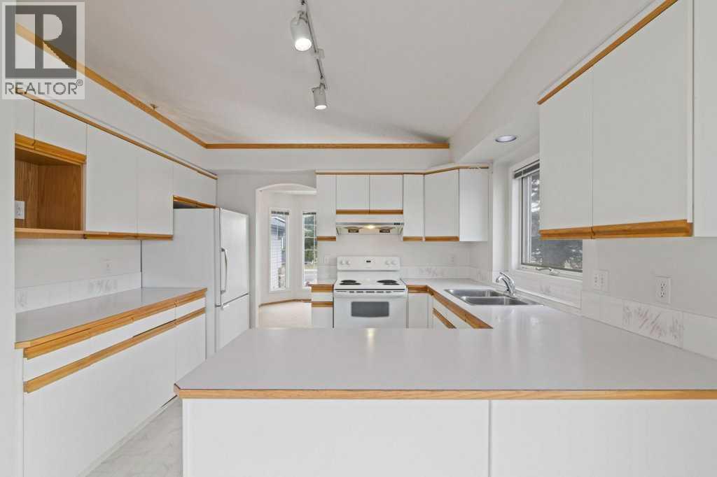Bungalows in the coveted lake community of Sundance are a rare find at this price point, offering a spectacular opportunity to bring your own vision to a spacious, well-loved home designed for the ease of single-level living. Set on a sprawling corner lot with a sun-drenched, south-facing backyard, this residence features over 2,700 sq. ft. of functional living space defined by dramatic vaulted ceilings and an airy, open atmosphere. The heart of the home is a classic white kitchen with timeless cabinetry and abundant counter space, flowing effortlessly into the bright dining area and out to a private rear deck—perfect for summer BBQs and outdoor relaxation. A charming breakfast nook with a built-in hutch adds character and extra storage for daily life. The vaulted primary suite serves as a quiet retreat, complete with a walk-in closet and a 4-piece ensuite, while a second main-floor bedroom and full bath provide the perfect layout for a home office or guest space. Total convenience is found in the main-floor laundry room, making daily chores a breeze. The fully finished basement dramatically expands the footprint, offering a massive family room for movie nights, two additional bedrooms, a third full bathroom, and two dedicated hobby rooms to keep your creative projects organized. Living in Sundance means enjoying an unparalleled lifestyle with year-round lake access for swimming and skating, plus immediate proximity to the scenic trails of Fish Creek Park, transit, and shopping. If you have been searching for an affordable entry into a premier community with space to grow and a backyard to enjoy, this Sundance gem is the one you’ve been waiting for—book your showing today! (id:63190)
