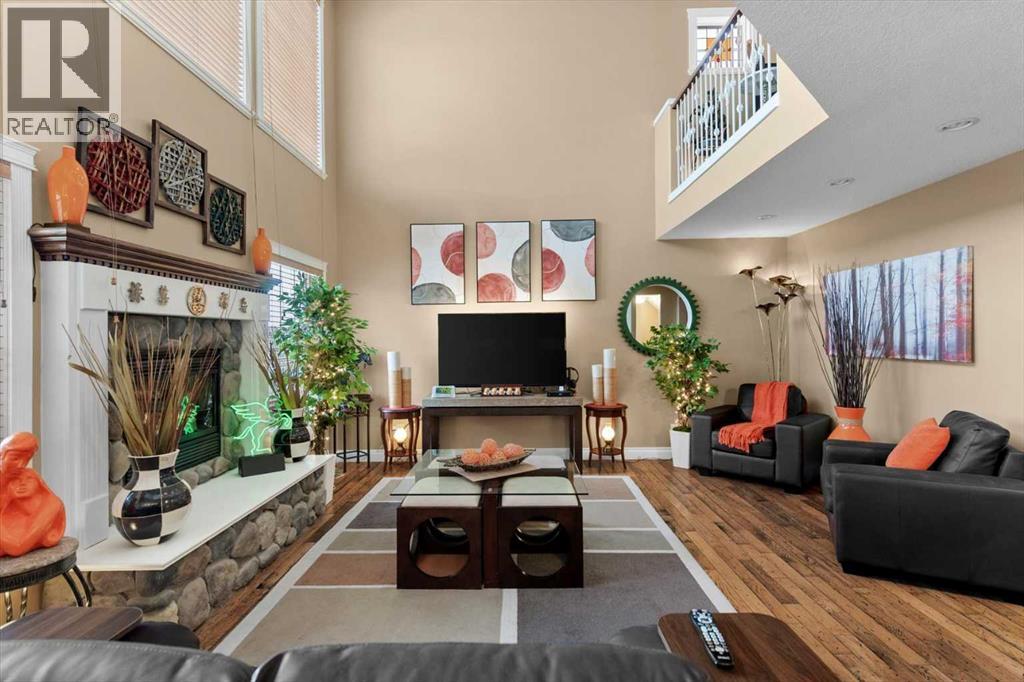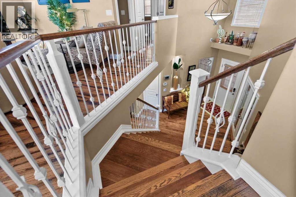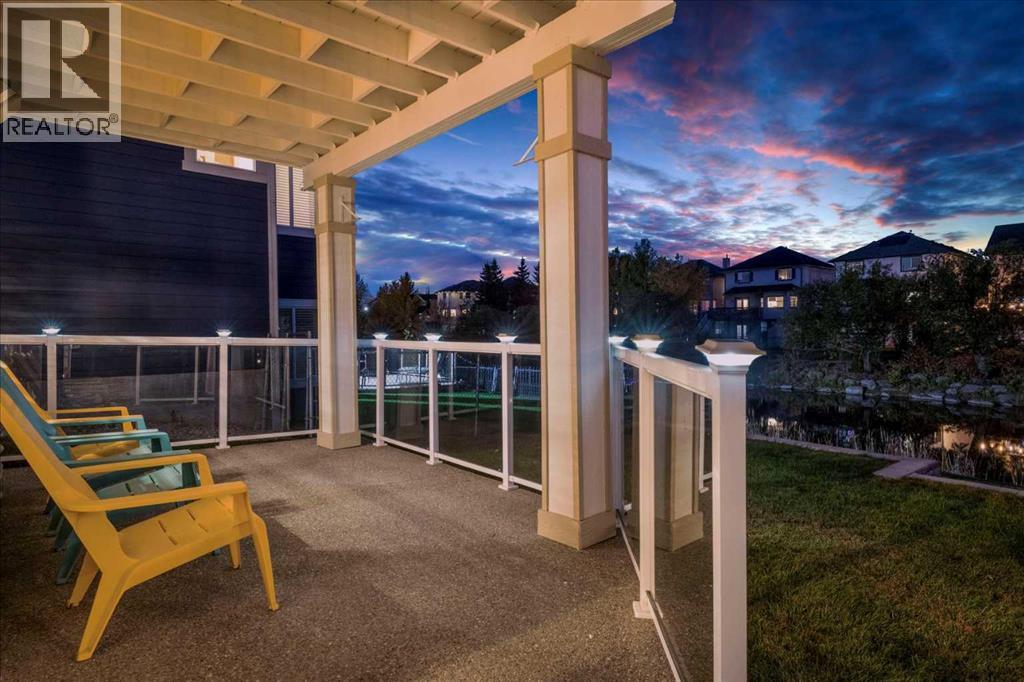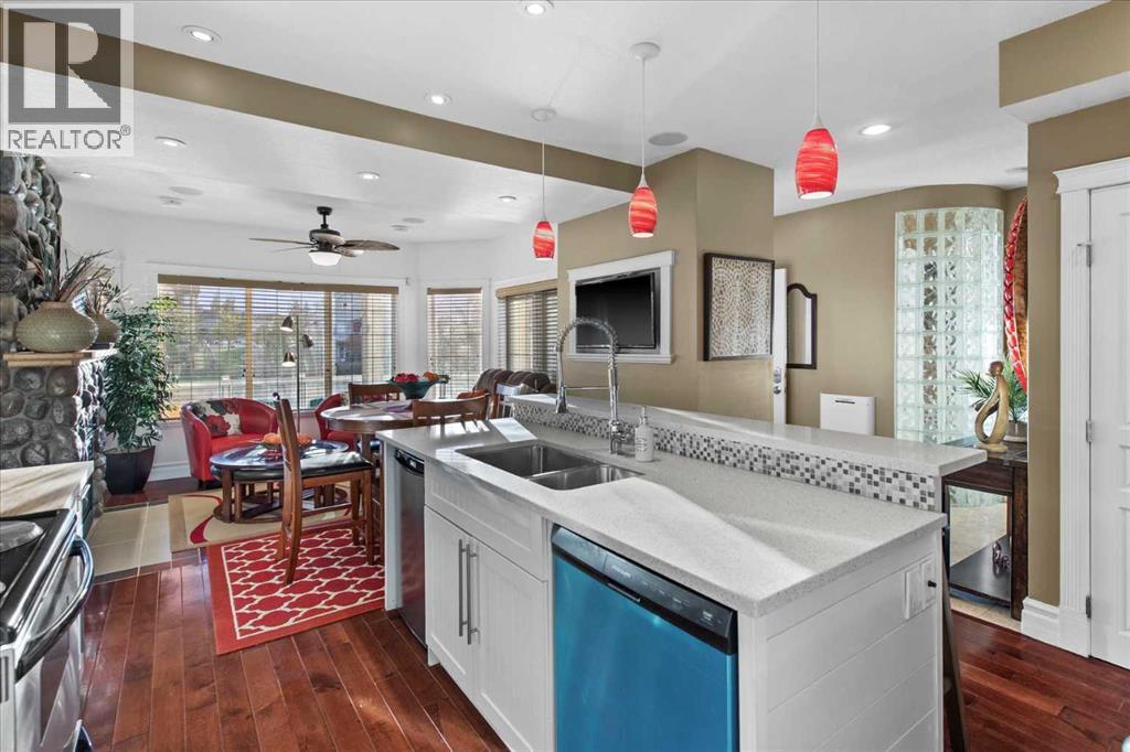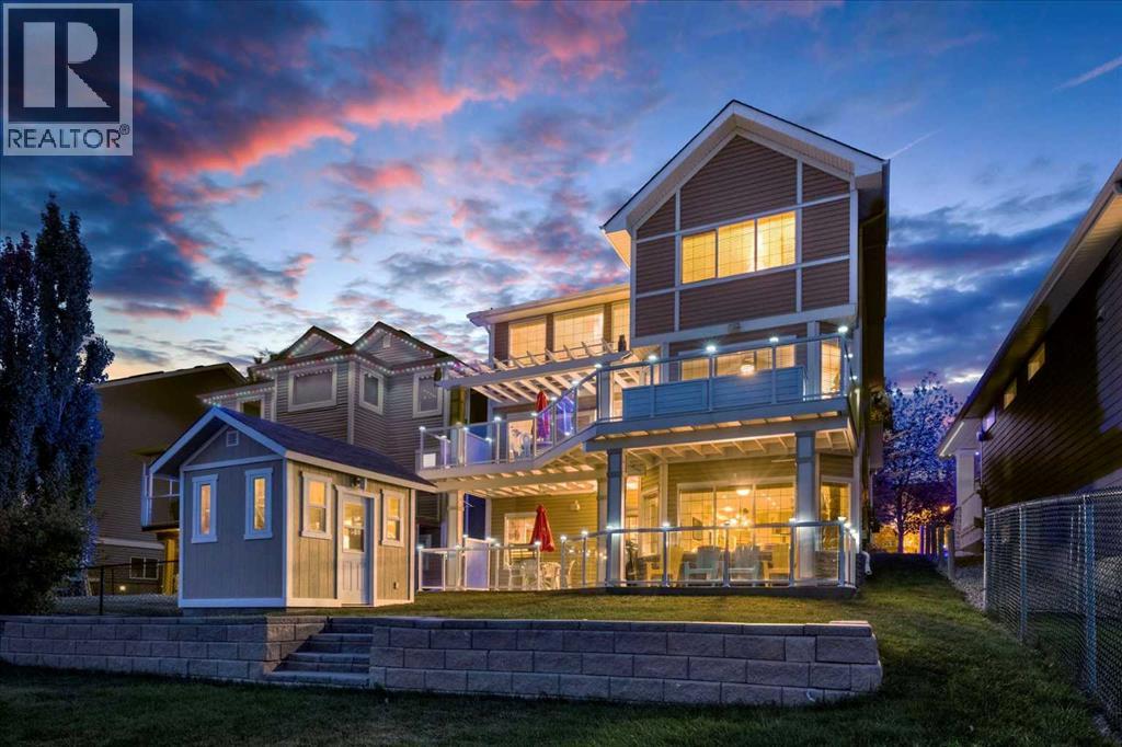 Welcome to this exceptionally cared for Bayside home offering over 3,400 sq.ft of beautifully developed living space, perfectly positioned backing onto the canal with year-round enjoyment including paddle boarding, kayaking, skating, plus unobstructed sunset and breathtaking northern lights views. This former show home, offered by the original owner, showcases true pride of ownership with extensive upgrades throughout. Mature trees frame the low-maintenance composite front porch and garden beds, creating stunning curb appeal.Inside, soaring vaulted ceilings and a striking oak staircase with white accents and wrought iron spindles set the tone for the refined interior. The main level features a private office with French doors and large windows, while rustic hand-detailed oak flooring seamlessly connects the living room and kitchen. The living room is flooded with natural light from expansive south-facing floor-to-ceiling windows, anchored by a vaulted ceiling and a raised gas fireplace with a natural stone surround.The chef-inspired kitchen blends elegance and function with granite countertops, a 10’ eat-up island, custom cabinetry, gas range, built-in microwave, wine fridge, and commercial-grade dishwasher, complemented by an updated backsplash and under/over-cabinet lighting. The dining area opens onto a full-length composite deck with glass railings, solar lighting, and built-in speakers—perfect for entertaining or relaxing while taking in the tranquil canal views. A dedicated laundry room with custom cabinetry and quartz counters, along with a stylish 2-piece bath, complete the main level.Upstairs offers a spacious primary retreat with built-in speakers, dual closets, private 2-piece bath, and a 4-piece ensuite featuring a soaker tub, separate shower, and double vanity. A bright bonus/flex room overlooks the living space, along with two additional bedrooms and a full bathroom.The fully self-contained walkout illegal basement suite features 10’ ceilings, 2 bedrooms, private entrance, and separate systems including sound (inside and out), alarm, hot water tank, washer/dryer, central vacuum, and electric baseboard heating. The space is complete with a spa-inspired 5-piece bath with in-floor heating, jetted tub, stone shower, and double vanity, plus a designer kitchen with quartz counters and a full appliance package. The living area offers a gas fireplace and large south-facing windows, opening onto a full-length aggregate patio with built-in speakers, solar lighting, and a smartboard shed with motion lighting.The beautifully landscaped backyard includes an underground sprinkler system and breathtaking canal views, creating an entertainer’s dream. This one-of-a-kind home is loaded with high-end finishings and thoughtful upgrades throughout and must be experienced in person to be fully appreciated. Full list of upgrades and dates completed is available in supplements. Please contact your favourite realtor to view:) (id:63190)