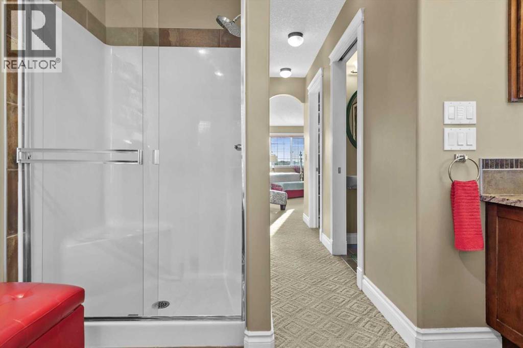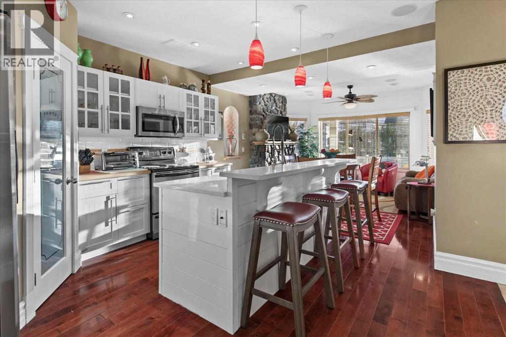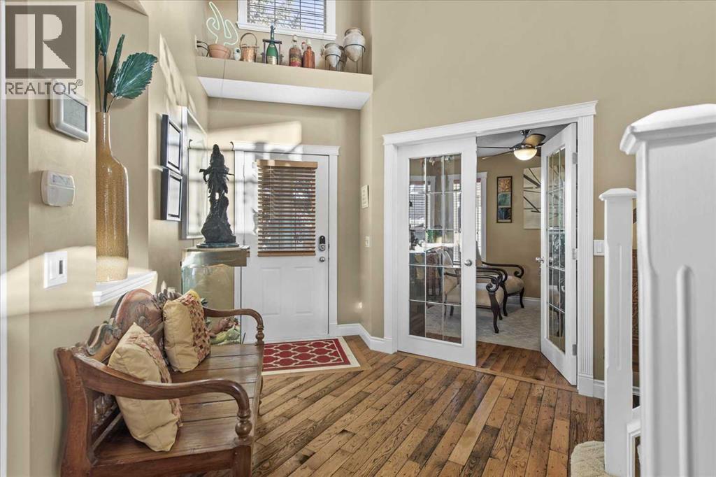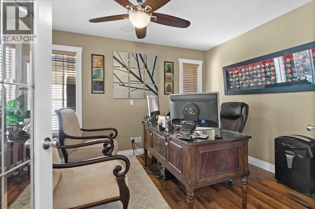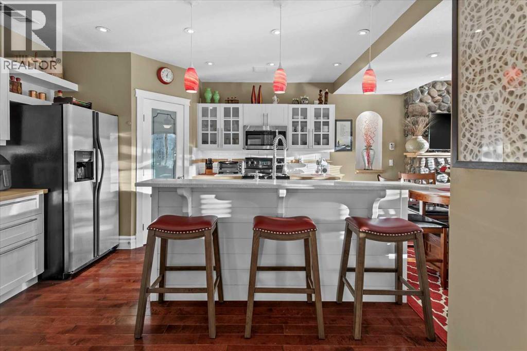 Welcome to this exceptionally cared for Bayside home offering over 3,400 sq.ft of beautifully developed living space, perfectly positioned backing onto the canal with year-round enjoyment including paddle boarding, kayaking, skating, plus unobstructed sunset and breathtaking northern lights views. This former show home, offered by the original owner, showcases true pride of ownership with extensive upgrades throughout. Mature trees frame the low-maintenance composite front porch and garden beds, creating stunning curb appeal.Inside, soaring vaulted ceilings and a striking oak staircase with white accents and wrought iron spindles set the tone for the refined interior. The main level features a private office with French doors and large windows, while rustic hand-detailed oak flooring seamlessly connects the living room and kitchen. The living room is flooded with natural light from expansive south-facing floor-to-ceiling windows, anchored by a vaulted ceiling and a raised gas fireplace with a natural stone surround.The chef-inspired kitchen blends elegance and function with granite countertops, a 10’ eat-up island, custom cabinetry, gas range, built-in microwave, wine fridge, and commercial-grade dishwasher, complemented by an updated backsplash and under/over-cabinet lighting. The dining area opens onto a full-length composite deck with glass railings, solar lighting, and built-in speakers—perfect for entertaining or relaxing while taking in the tranquil canal views. A dedicated laundry room with custom cabinetry and quartz counters, along with a stylish 2-piece bath, complete the main level.Upstairs offers a spacious primary retreat with built-in speakers, dual closets, private 2-piece bath, and a 4-piece ensuite featuring a soaker tub, separate shower, and double vanity. A bright bonus/flex room overlooks the living space, along with two additional bedrooms and a full bathroom.The fully self-contained walkout illegal basement suite features 10’ ceilings, 2 bedrooms, private entrance, and separate systems including sound (inside and out), alarm, hot water tank, washer/dryer, central vacuum, and electric baseboard heating. The space is complete with a spa-inspired 5-piece bath with in-floor heating, jetted tub, stone shower, and double vanity, plus a designer kitchen with quartz counters and a full appliance package. The living area offers a gas fireplace and large south-facing windows, opening onto a full-length aggregate patio with built-in speakers, solar lighting, and a smartboard shed with motion lighting.The beautifully landscaped backyard includes an underground sprinkler system and breathtaking canal views, creating an entertainer’s dream. This one-of-a-kind home is loaded with high-end finishings and thoughtful upgrades throughout and must be experienced in person to be fully appreciated. Full list of upgrades and dates completed is available in supplements. Please contact your favourite realtor to view:) (id:63190)