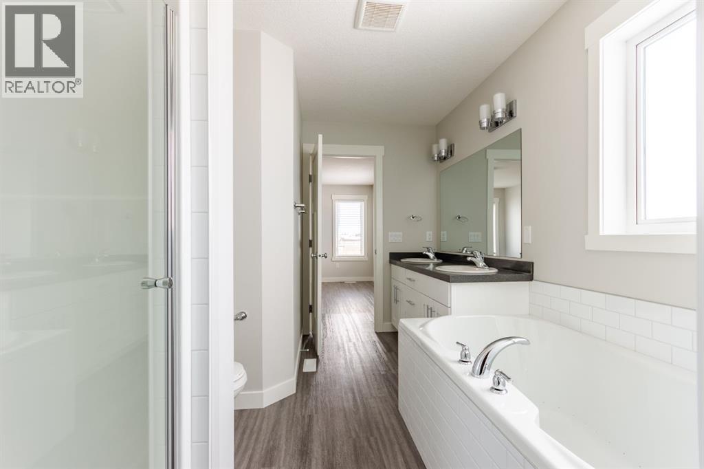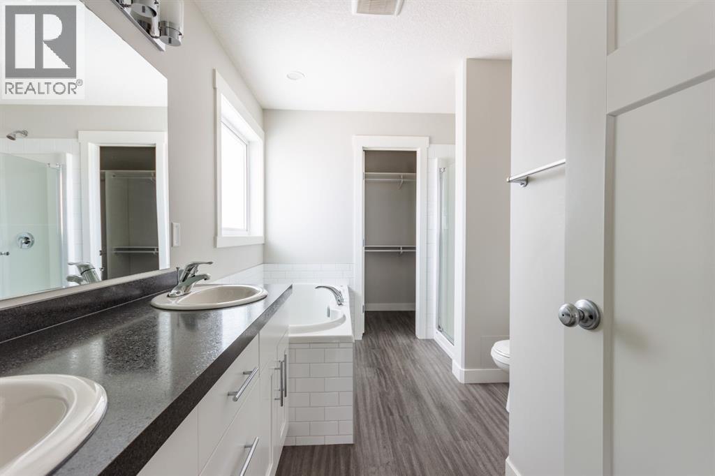 Quality built by Harder Builders, this up/down property is set up to attract strong tenants and consistent rental income. The upper unit feels open right from the main level. A large living room is centred around a gas fireplace, with a big window that brings in plenty of natural light. It flows easily into the dining area and kitchen, where white cabinets, stainless steel appliances, an island, and a pantry sit. All bedrooms in the upper unit are located upstairs, which helps provide some privacy and noise separation between both units. The primary bedroom is a generous size with multiple windows, and the ensuite is a standout feature with dual vanities, a jetted tub, separate shower, and a walk-in closet. This setup tends to attract longer term tenants who value a bit more comfort. A main floor half bath and separate laundry add convenience, and the double heated garage is a strong bonus, especially in colder months. The lower unit has its own well laid out living space with a living room that connects to the kitchen, finished with white cabinetry and stainless steel appliances. Two bedrooms, a full bathroom, and separate in-suite laundry make it a fully independent setup. It currently rents for $1,825 per month, including utilities., lease till Oct 31, 2026. Gas is separately metered, while power and water are shared at this property. Outside, the fenced yard and deck off the upper unit give tenants access to private outdoor space to enjoy in the warmer months and appeals to tenants with pets and kids alike. Located close to schools and parks, this is a well kept investment property with features that help attract and retain quality tenants. Call your REALTOR® today to book a showing!! (id:63190)