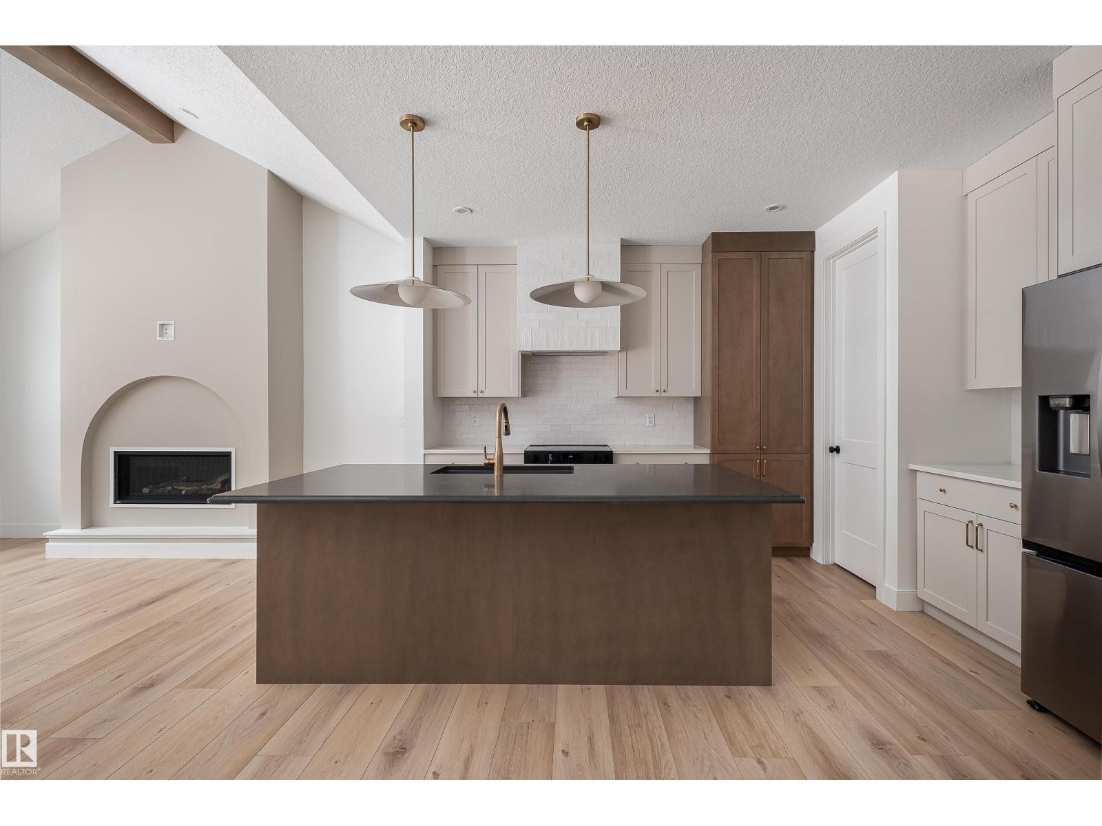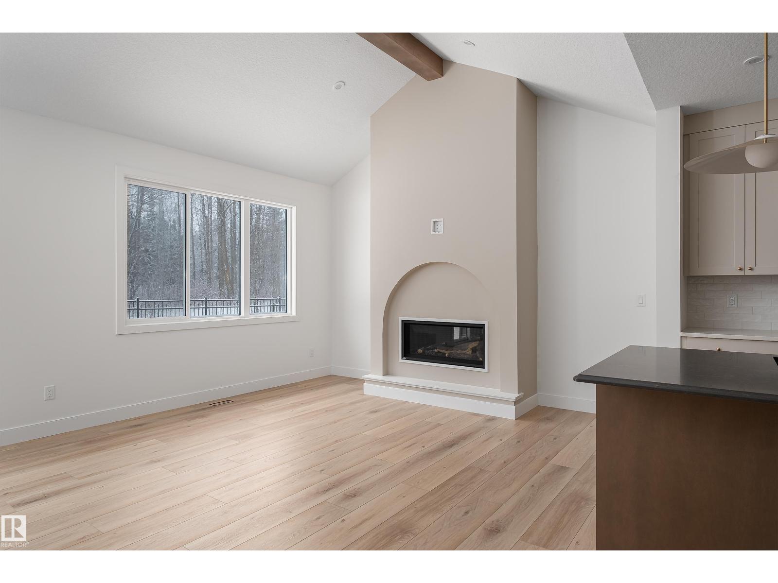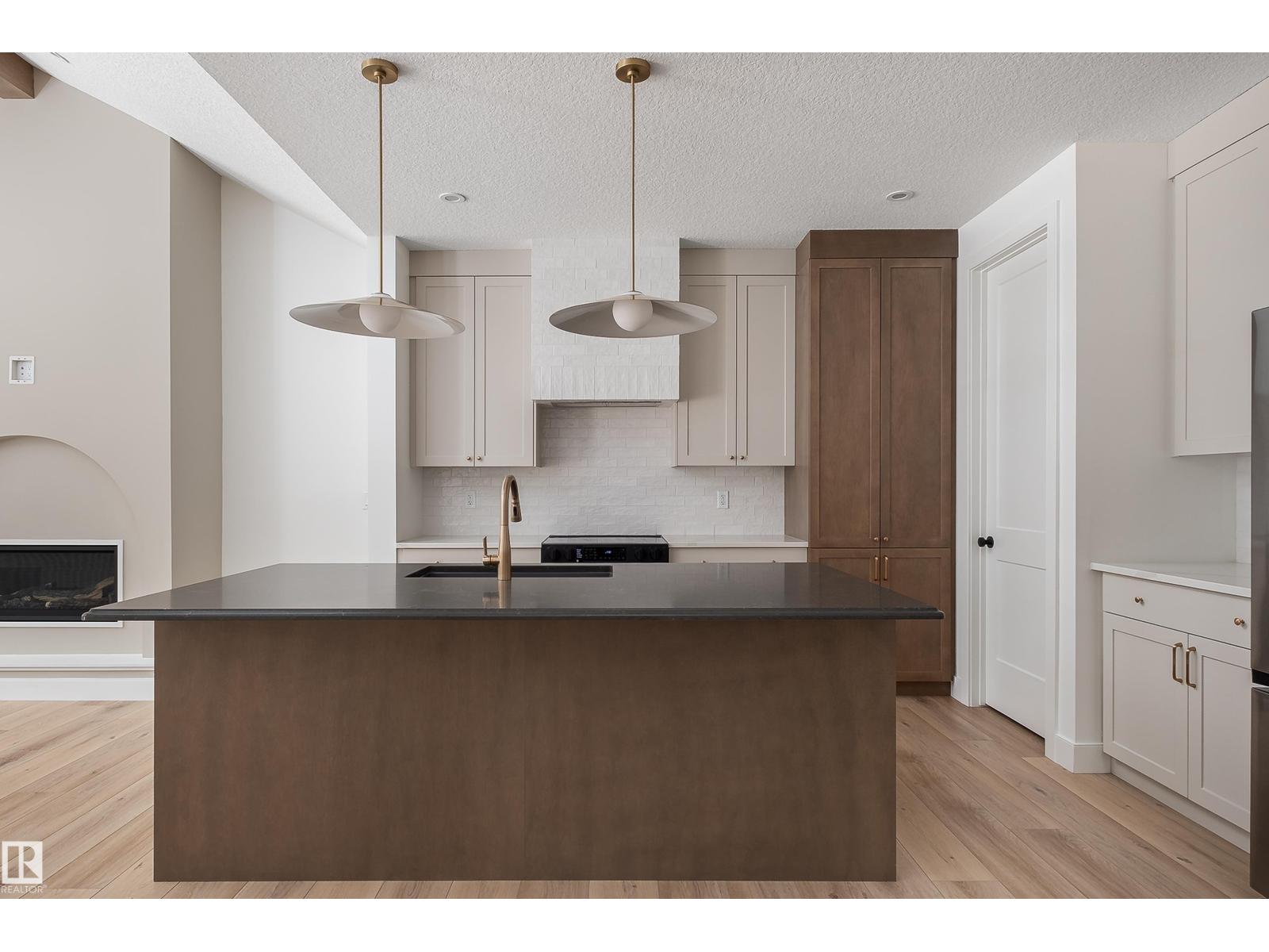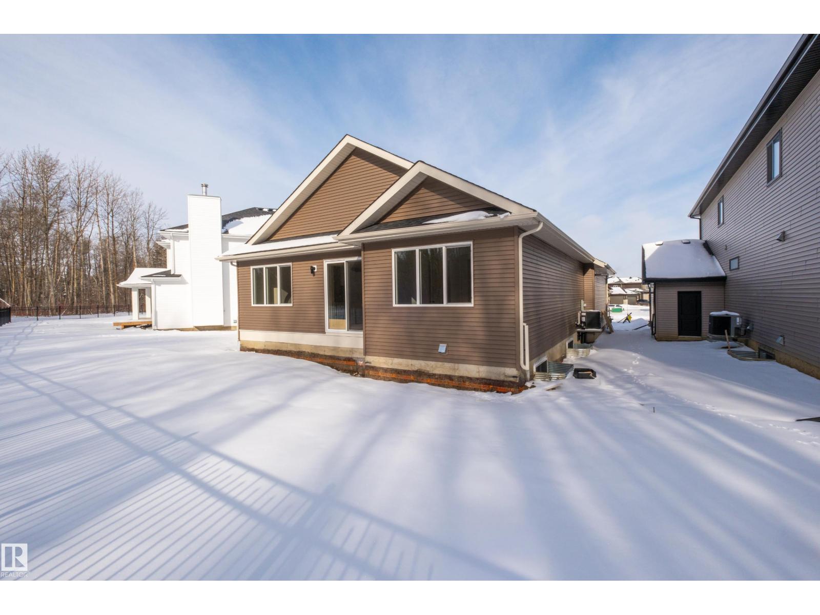 Backing the Fenwyck forest awaits a stunning bungalow built by HRD Homes. With over 1,400 sqft of living space this 1 bed, 1.5 bath home w/ an oversized heated triple garage is waiting for You to call it home. Featuring vaulted ceilings w/ a stained maple beam that spans the living & dining room, custom two toned cabinetry & tiled hood fan, s/s appliances, quartz countertops, vinyl plank flooring, gas fireplace, his/her sinks w/ custom tiled shower in your 5 pce ensuite, spacious walk-in closet, 8ft solid core doors, central A/C, main floor laundry w/ sink, tankless hot water system, beautifully accented bronze fixtures & lighting, hot/cold taps in the garage w/ floor drain, BBQ gas line & custom built ins throughout. With its timeless & sophisticated design this home is perfect for the empty nester or those looking to downsize yet still wanting the high end finishings and attention to detail. (id:63190)