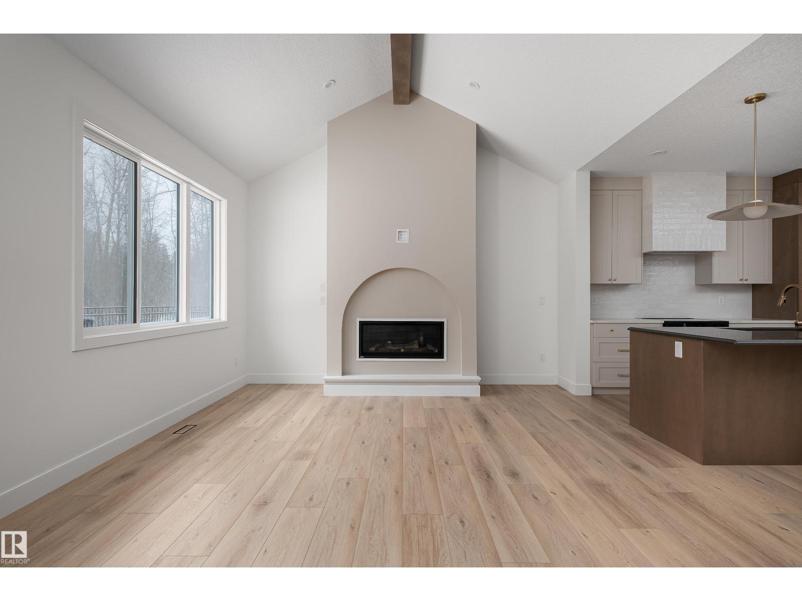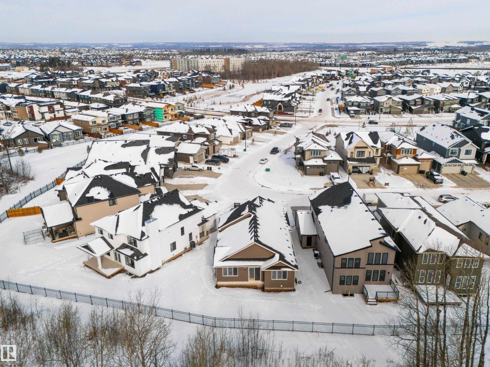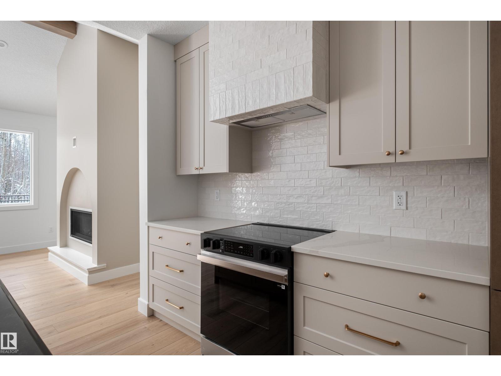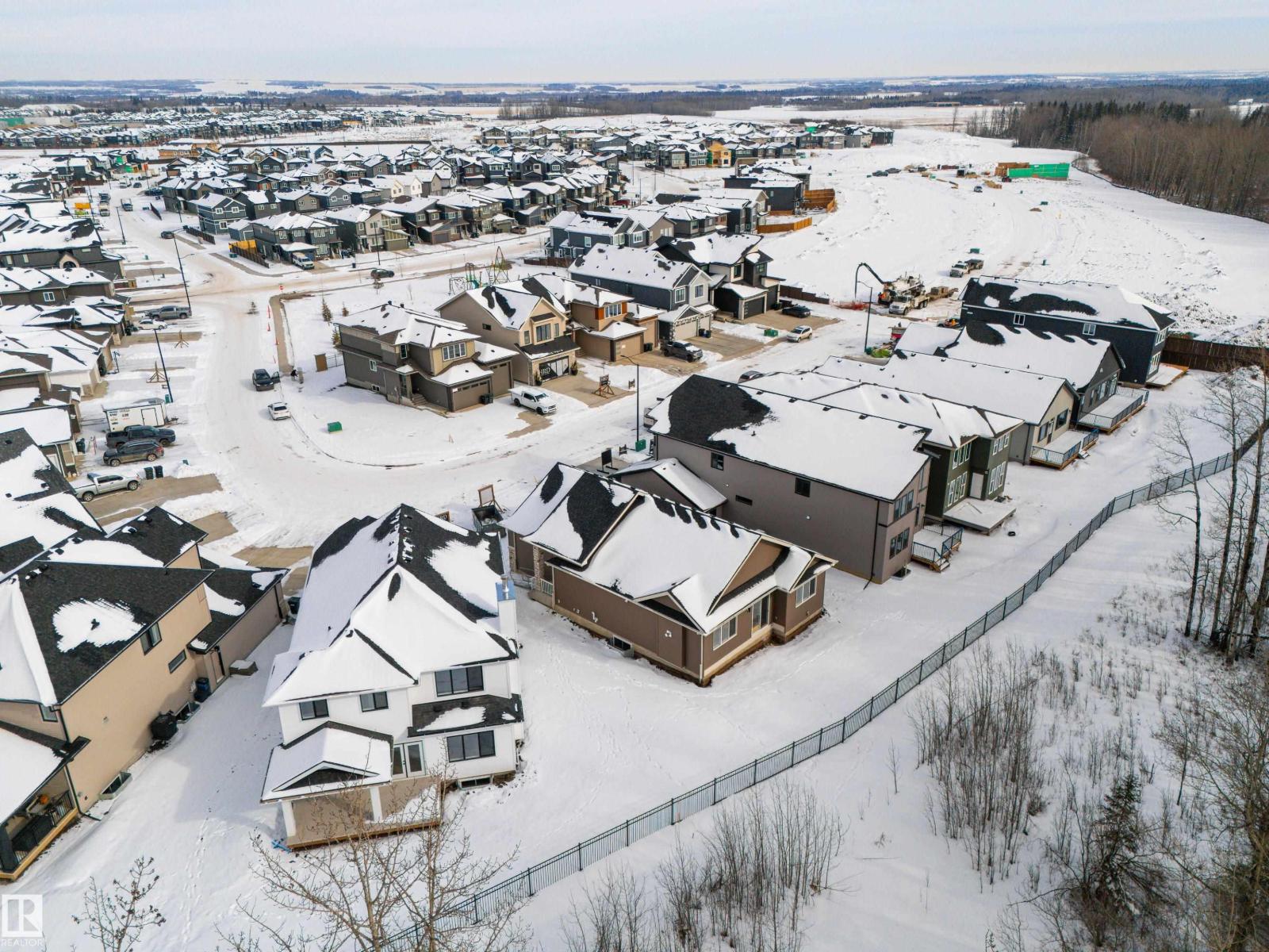 Backing the Fenwyck forest awaits a stunning bungalow built by HRD Homes. With over 1,400 sqft of living space this 1 bed, 1.5 bath home w/ an oversized heated triple garage is waiting for You to call it home. Featuring vaulted ceilings w/ a stained maple beam that spans the living & dining room, custom two toned cabinetry & tiled hood fan, s/s appliances, quartz countertops, vinyl plank flooring, gas fireplace, his/her sinks w/ custom tiled shower in your 5 pce ensuite, spacious walk-in closet, 8ft solid core doors, central A/C, main floor laundry w/ sink, tankless hot water system, beautifully accented bronze fixtures & lighting, hot/cold taps in the garage w/ floor drain, BBQ gas line & custom built ins throughout. With its timeless & sophisticated design this home is perfect for the empty nester or those looking to downsize yet still wanting the high end finishings and attention to detail. (id:63190)