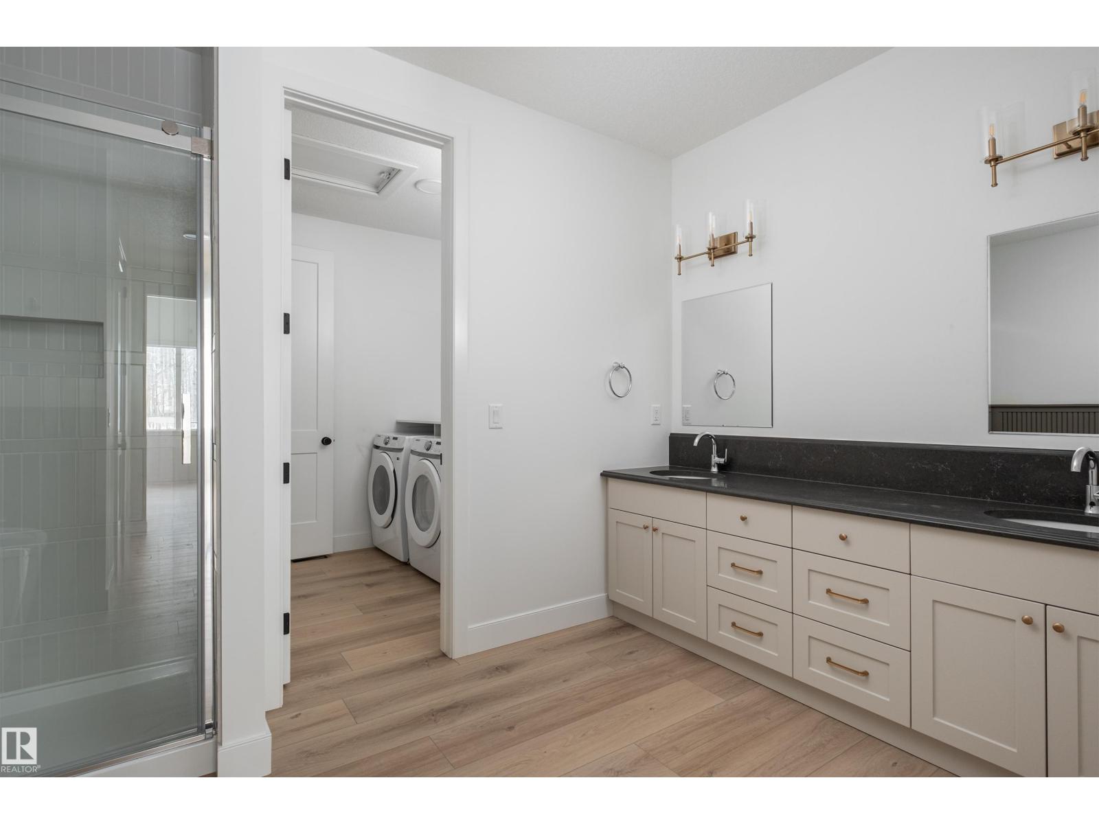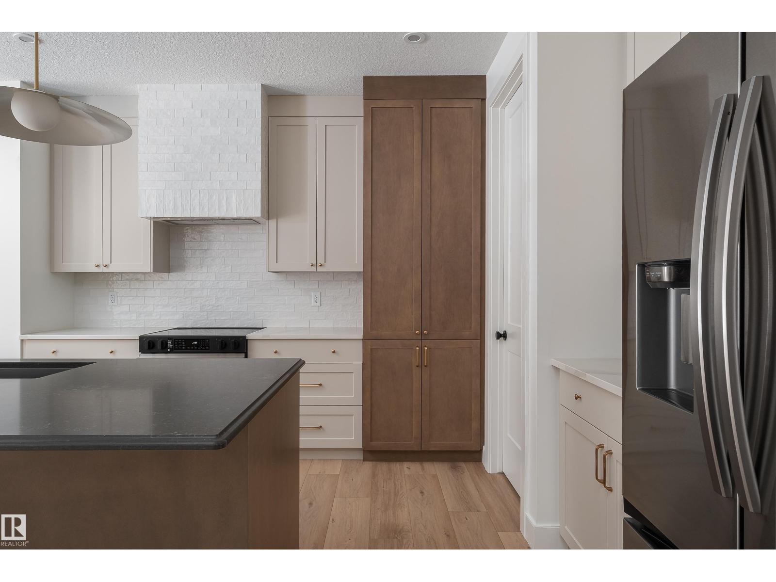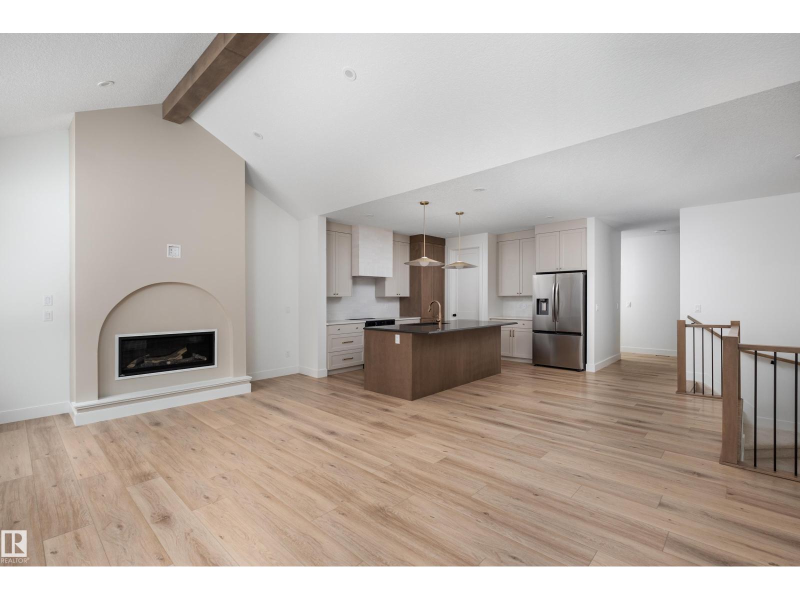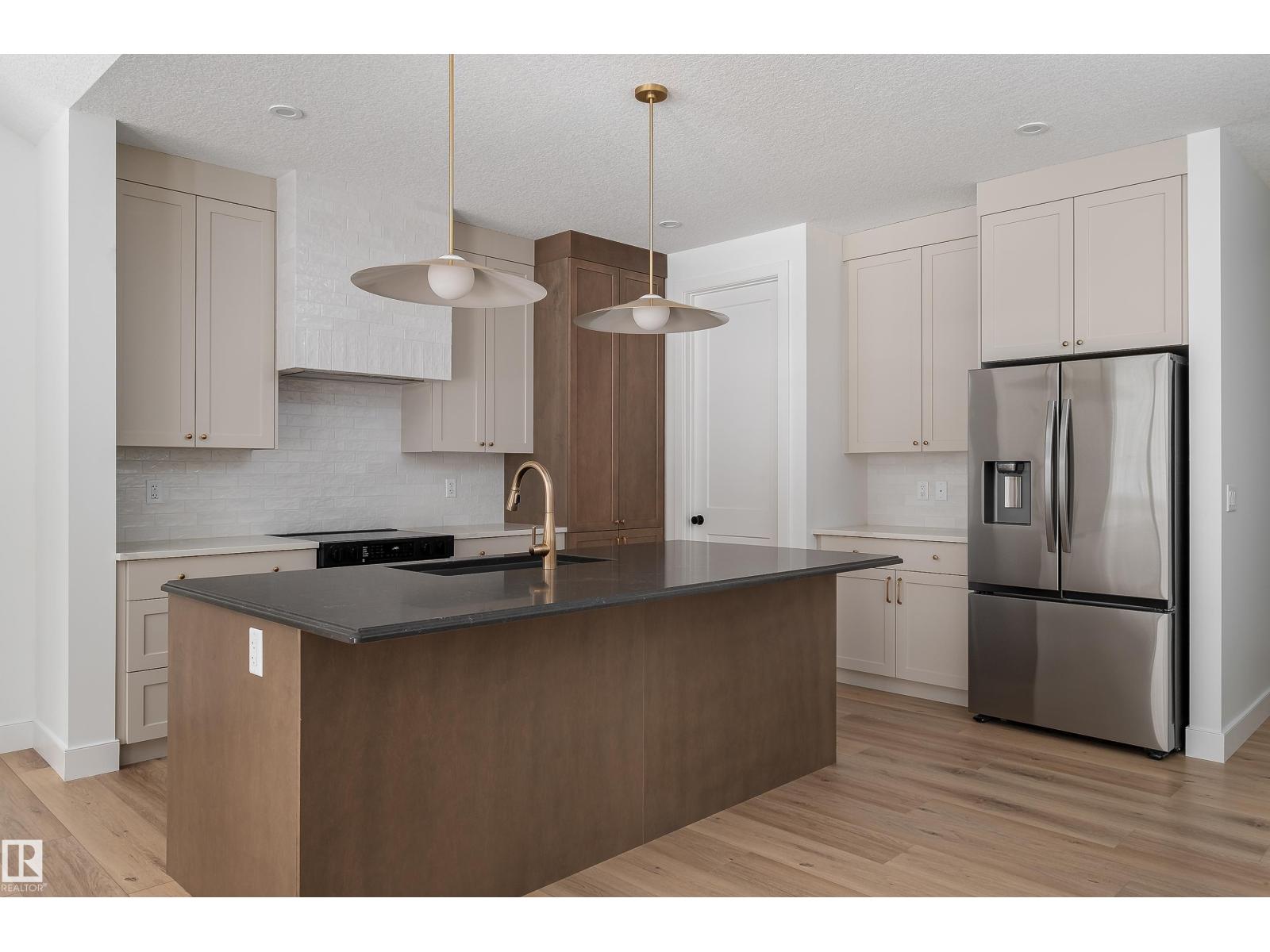 Backing the Fenwyck forest awaits a stunning bungalow built by HRD Homes. With over 1,400 sqft of living space this 1 bed, 1.5 bath home w/ an oversized heated triple garage is waiting for You to call it home. Featuring vaulted ceilings w/ a stained maple beam that spans the living & dining room, custom two toned cabinetry & tiled hood fan, s/s appliances, quartz countertops, vinyl plank flooring, gas fireplace, his/her sinks w/ custom tiled shower in your 5 pce ensuite, spacious walk-in closet, 8ft solid core doors, central A/C, main floor laundry w/ sink, tankless hot water system, beautifully accented bronze fixtures & lighting, hot/cold taps in the garage w/ floor drain, BBQ gas line & custom built ins throughout. With its timeless & sophisticated design this home is perfect for the empty nester or those looking to downsize yet still wanting the high end finishings and attention to detail. (id:63190)