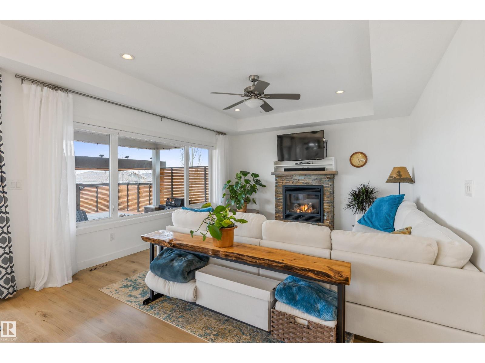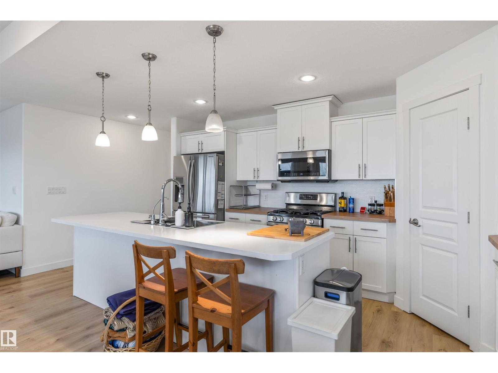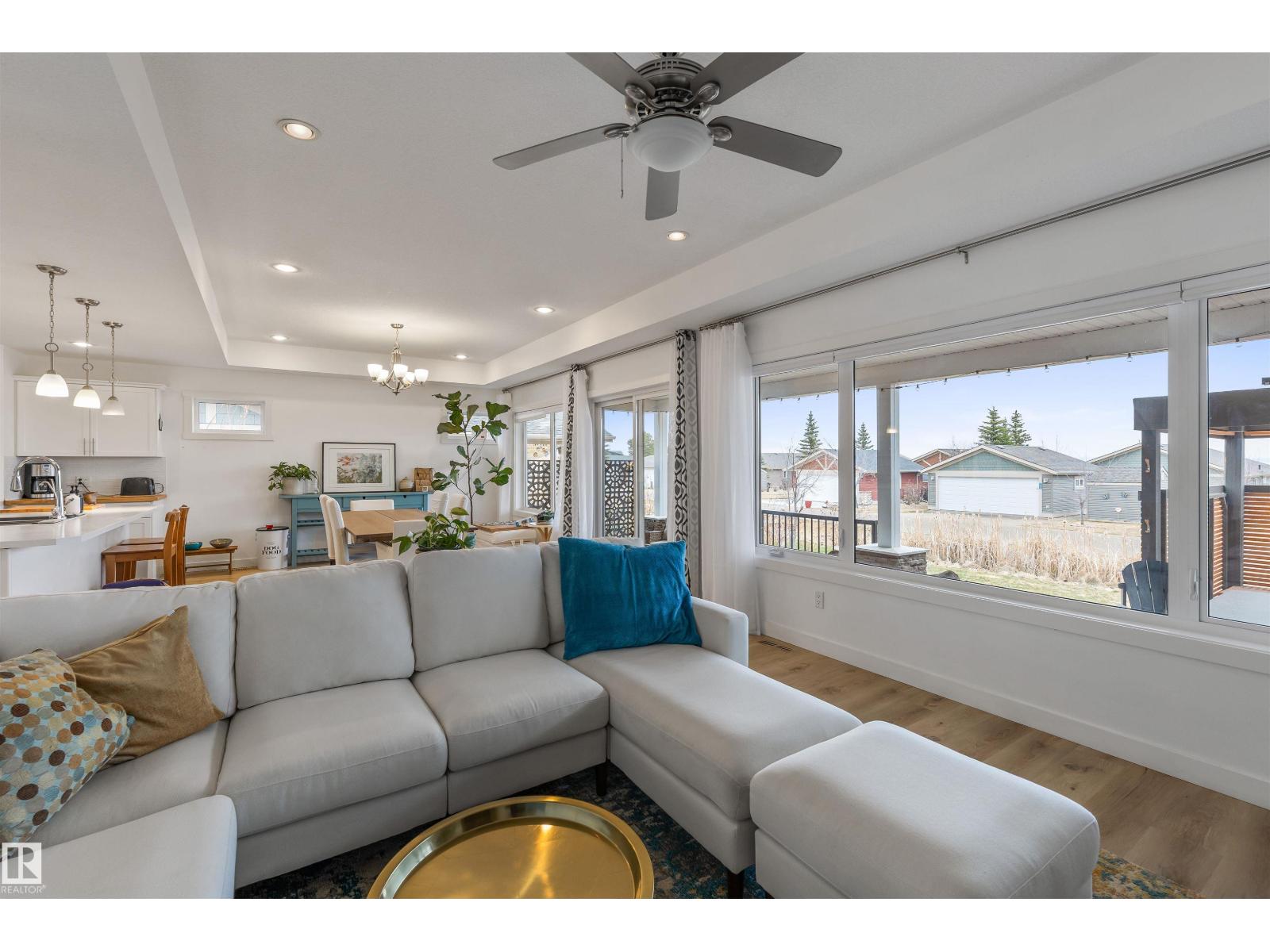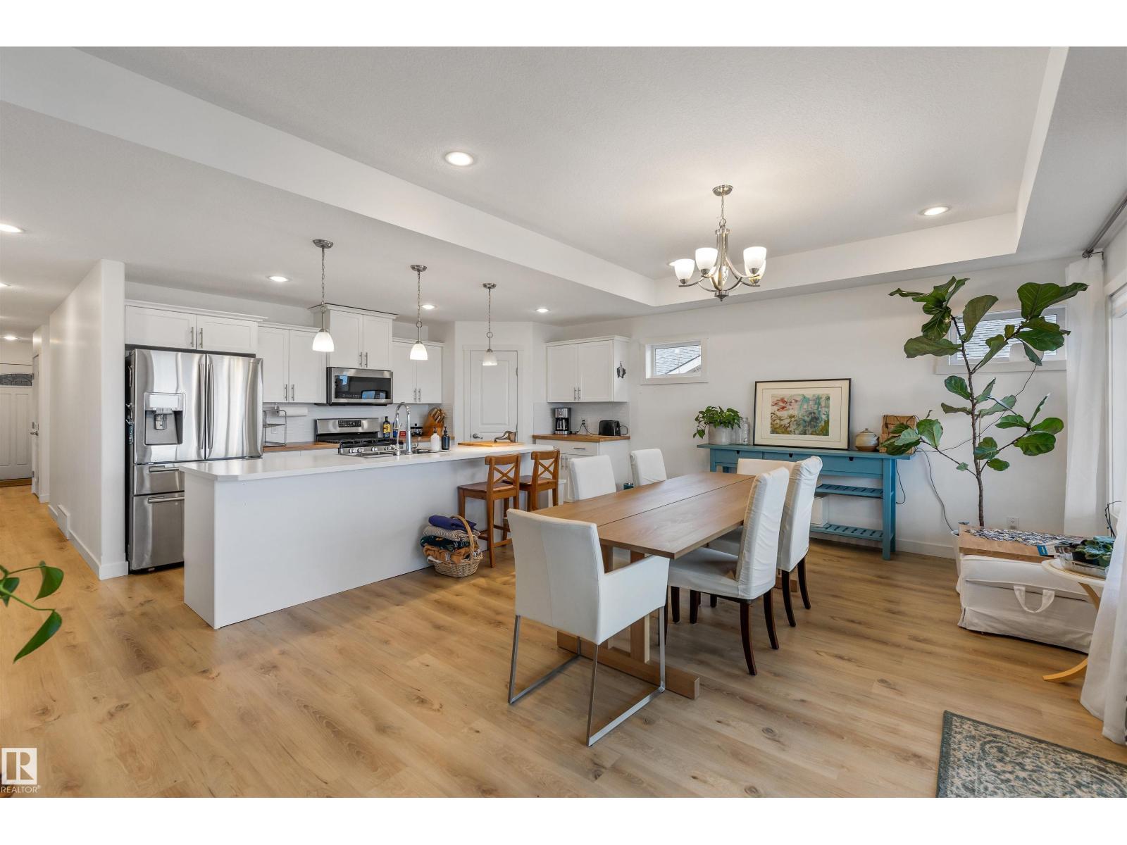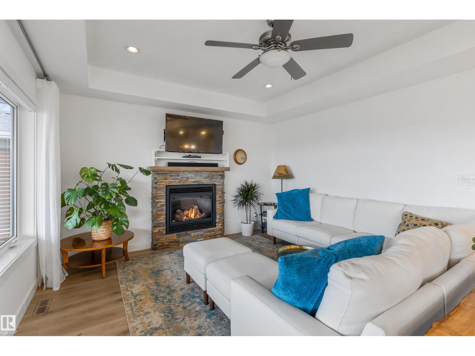 Discover this stunning bungalow in the Estates At Water's Edge. The kitchen is spacious and features white cabinetry, tile backsplash, stainless steel appliances (including a GAS STOVE), a huge eating bar island, corner pantry and an abundance of storage! The living room features a GAS FIREPLACE and has patio doors. The covered deck faces south with partial lake views and a private hot tub! The primary bedroom has a three-piece ensuite and a walk-in closet. Two additional bedrooms, a four piece main bathroom and a laundry room with sink complete the main floor. Crafted directly on the property, this home includes a solid concrete crawlspace, offering generous room for storage. A double attached HEATED OVERSIZED GARAGE completes this home. Additional features include VINYL PLANK flooring throughout the main floor and on demand hot water! A gated community, municipal water/sewer, private marina, outdoor heated pool, beachfront park and clubhouse are all amazing features in Estates at Water's Edge! (id:63190)