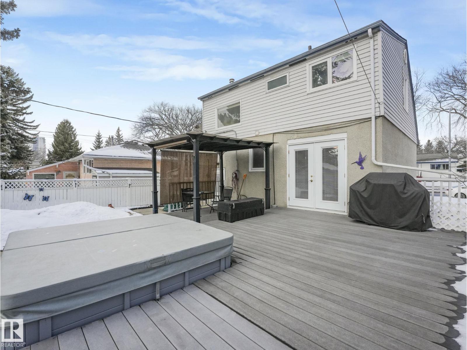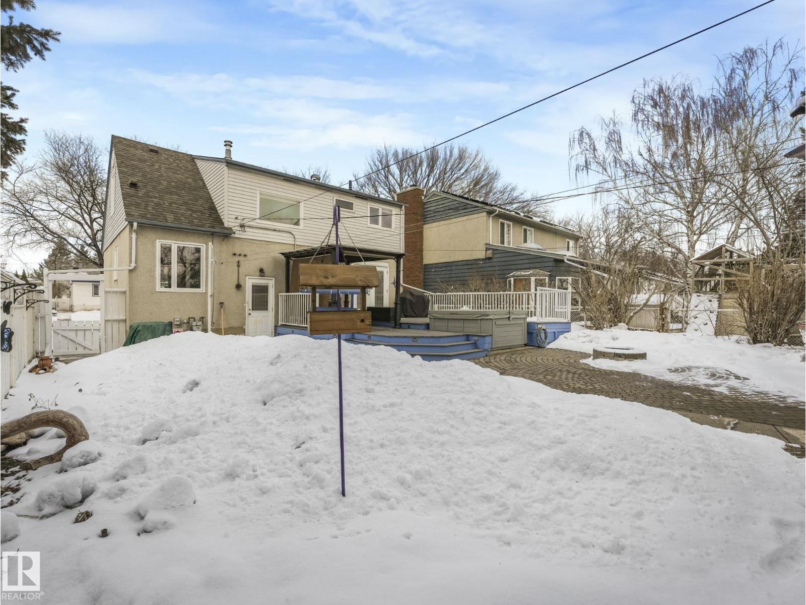 Well maintained and updated over the years on large lot in desirable Holyrood. Perfect family home with 1450 sq ft, 4 total bedrooms + 3 full baths. Fully landscaped, fenced, private low maintenance south facing back yard, with large deck, pergola and hot tub. Oversized garage with double overhead doors (fits full-size truck), plus RV parking. Main floor office - could be a bedroom - with double doors leading to back deck, also main floor full bath. Second floor has large primary + 5 pc ensuite. Fully finished basement has another bedroom and full bath. (id:63190)
