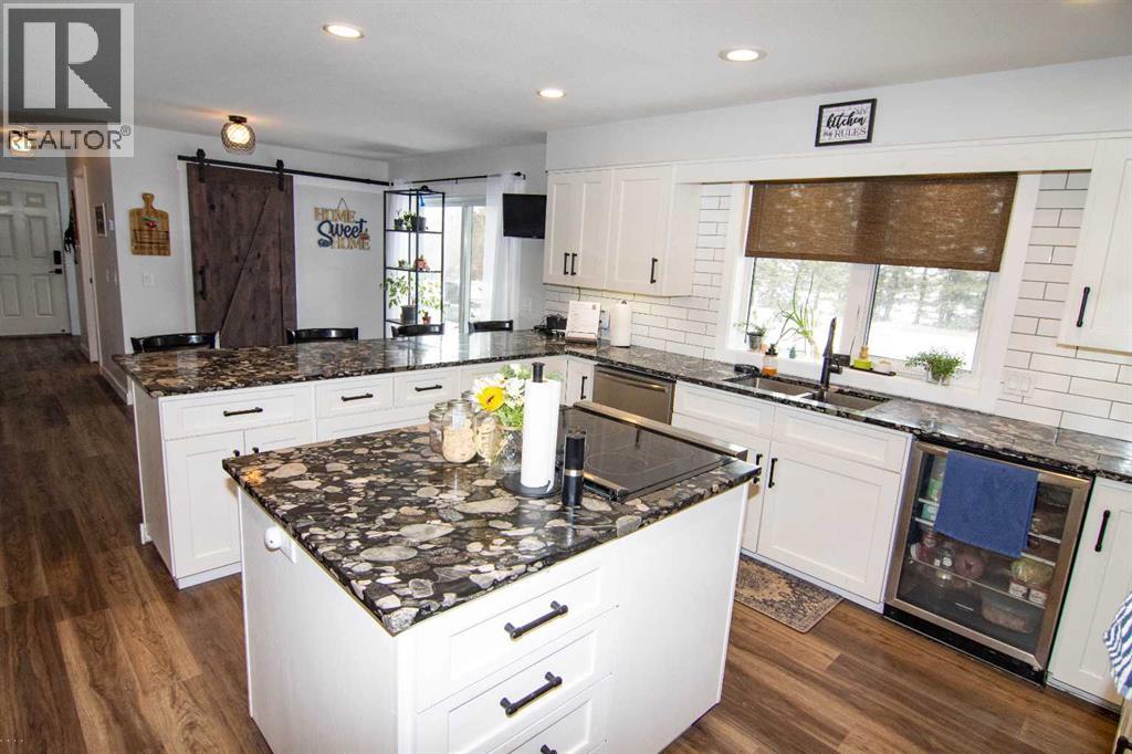 Discover the perfect blend of luxury, space, and country charm with with a total of 3732 square feet developed on the three levels, this beautifully remodelled two-storey executive acreage, located on 13.66 beautiful acres, just 15 minutes from Olds. Thoughtfully updated in 2022, the home features modern upgrades including a new HVAC system, ensuring comfort and efficiency year-round. Upstairs, you’ll find four generously sized bedrooms, including two with private full ensuites, plusan additional 3-piece bathroom—ideal for families or hosting guests.The main floor is a baker’s dream, showcasing a spacious kitchen with stainlesssteel appliances, a wall oven, and an electric range that can easily be convertedback to gas. Ample counter space, a large pantry, and convenient main floorlaundry make this space as functional as it is beautiful. The fully developed lowerlevel offers incredible versatility, featuring two additional bedrooms, a cozy theatreroom, a recreation area with wet bar, a hobby room, a cold room/storm shelter, andanother 3-piece bathroom—perfect for entertaining or extended family living. Anattached, heated double garage with access to the basement, adds everyday convenience.Step outside and experience everything this exceptional acreage has to offer.Surrounded by mature spruce trees for privacy, the property is fully equipped forhobby farming or rural living. This is a rare opportunity to own a turnkey acreagewith extensive infrastructure, modern updates, and endless potential—all in apeaceful setting just minutes from town. Features include heated 32x24 shop,72x48 quonset with 220v service, hip roof barn, 800 tree nursery, large garden,with kitchen herb garden next to the house. Abundant fruit trees, two livestockwaterers, full perimeter predator fencing and so much more. (id:63190)