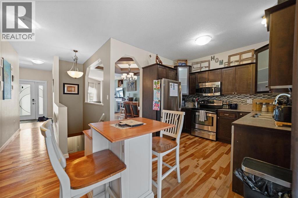 Three bedroom bungalow located in Creekview. This lovely home features a bright and spacious floor plan that includes a charming family room with cozy gas fire place, dining area with cofered ceiling, good size kitchen and covered rear deck. The downstairs framing has been started and is ready for you to put your own personal touch on it. The fully fenced yard is one of the larger yards in the area and would be a great space for the family to enjoy. Lots of potential here and situated in a beautiful large crescent. (id:63190)