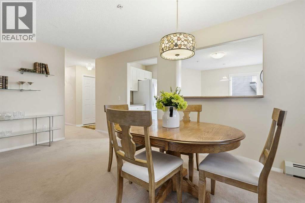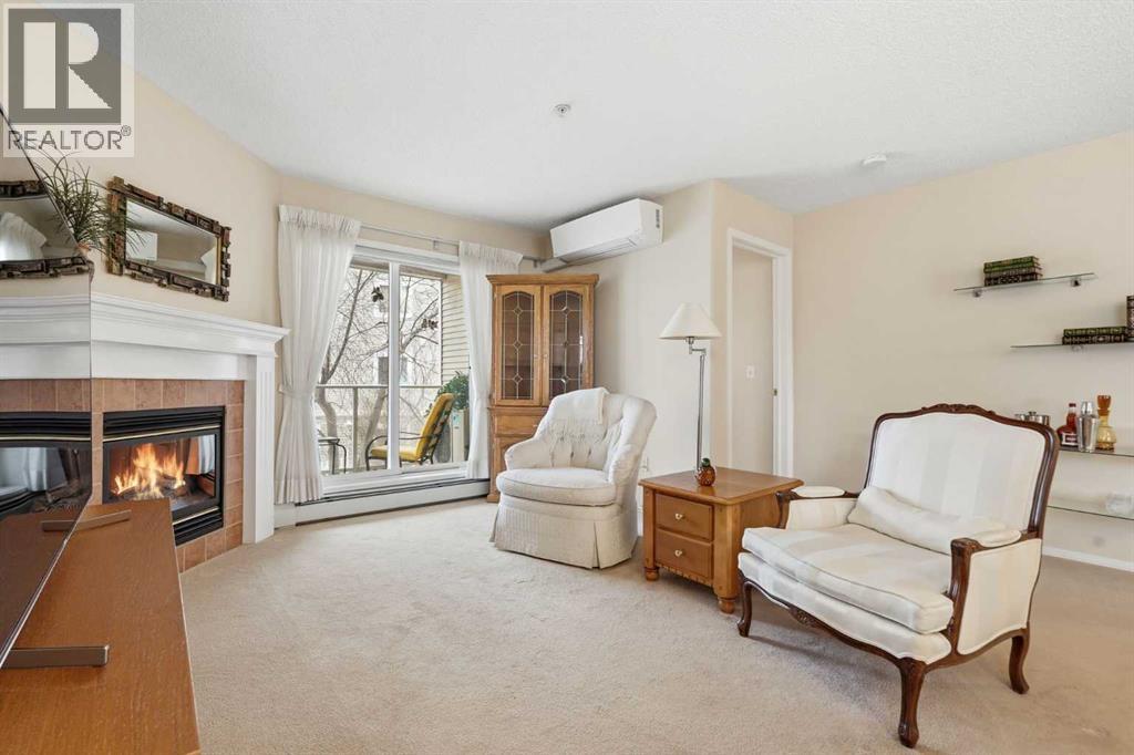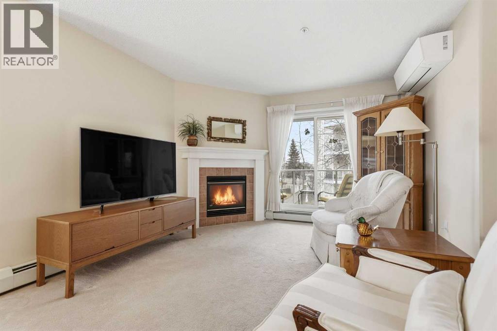 One of the largest units in the complex, this bright corner condo offers over 1,030 sq ft of well-designed living space with exceptional natural light throughout.The layout is both functional and spacious, featuring 2 bedrooms and 2 full bathrooms, including a generous primary retreat with walk-in closet and private ensuite.This home stands out with rare air conditioning, along with updated appliances including a newer washer, dryer, refrigerator, and microwave hood fan, all contributing to a move-in ready, low-maintenance lifestyle. Pride of ownership is evident, with the unit showing in immaculate condition.Enjoy a east-facing balcony overlooking the courtyard, perfect for morning sun and quiet relaxation.Additional features include titled underground parking.Located in an incredibly convenient Shawnessy location, just steps to the LRT, shopping, restaurants, and everyday amenities, this is a turnkey opportunity in one of the most accessible pockets in the south. (id:63190)