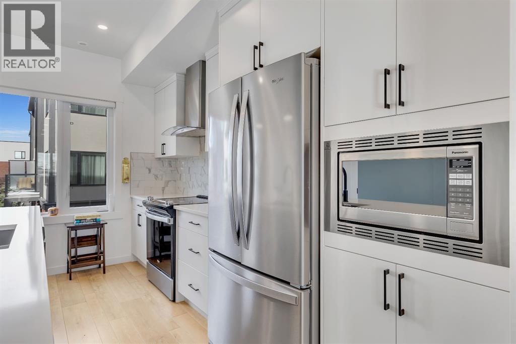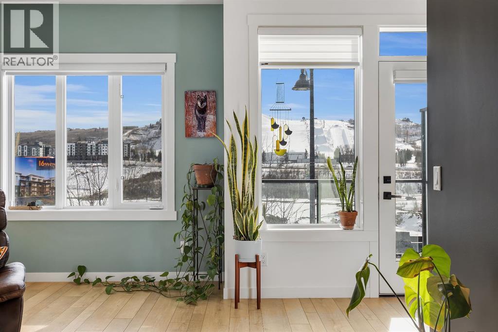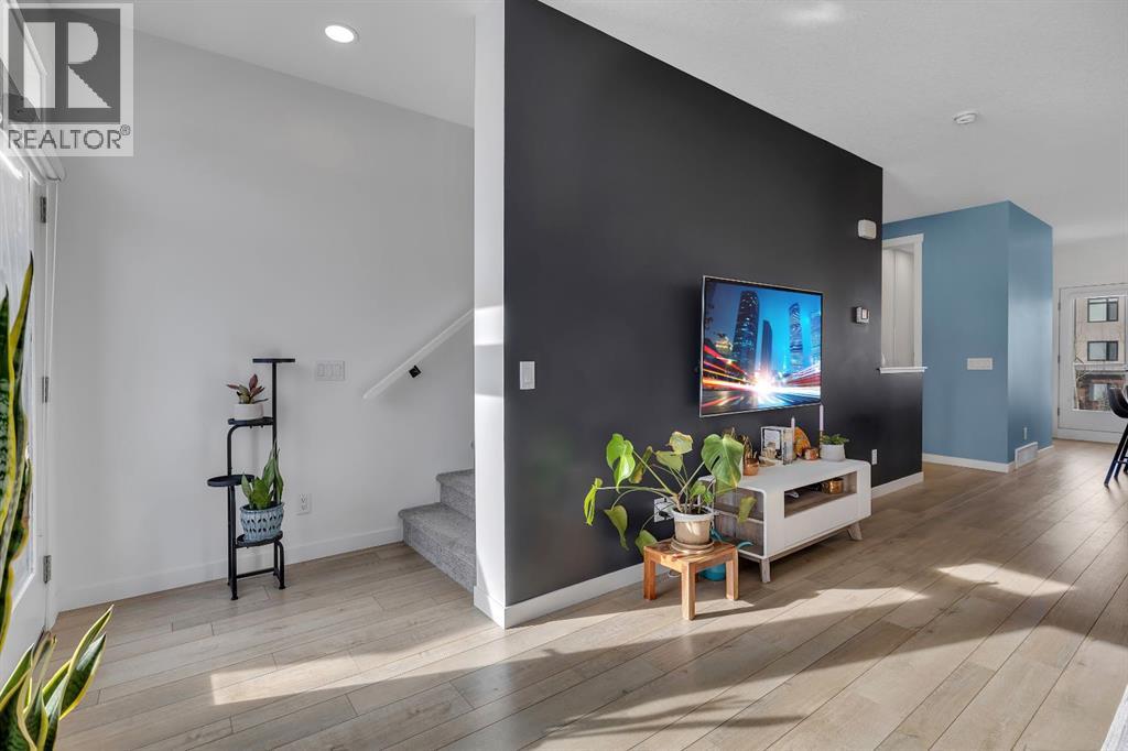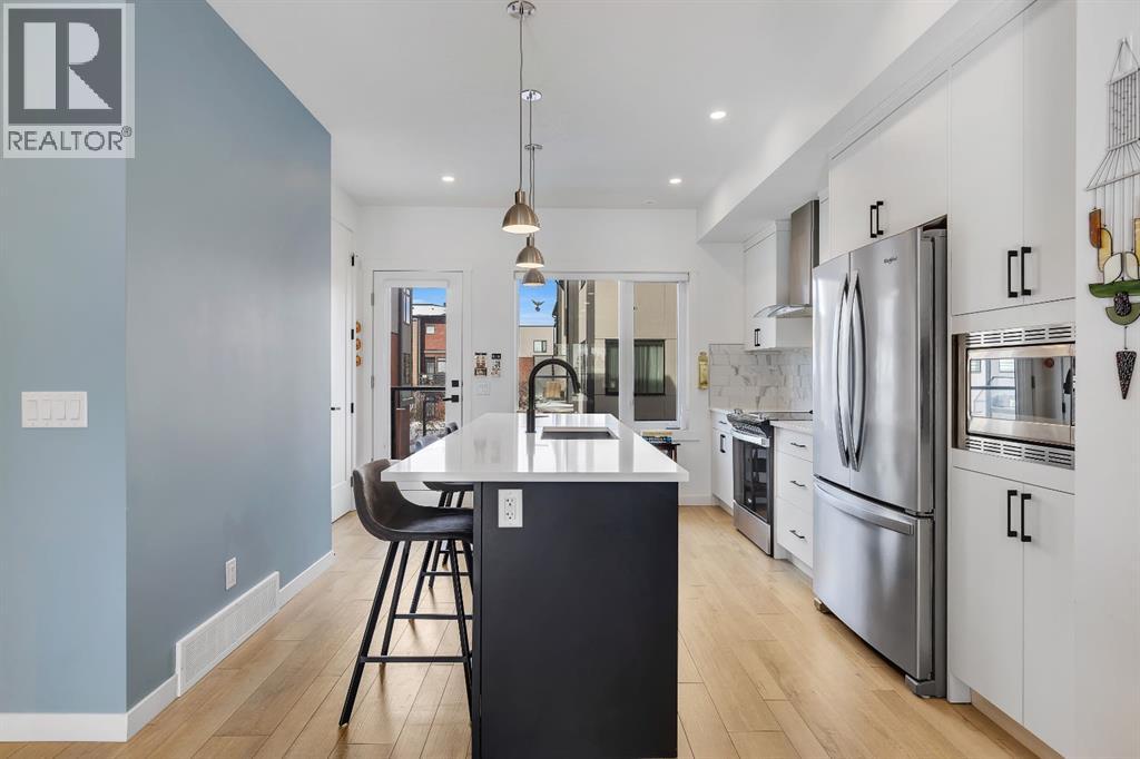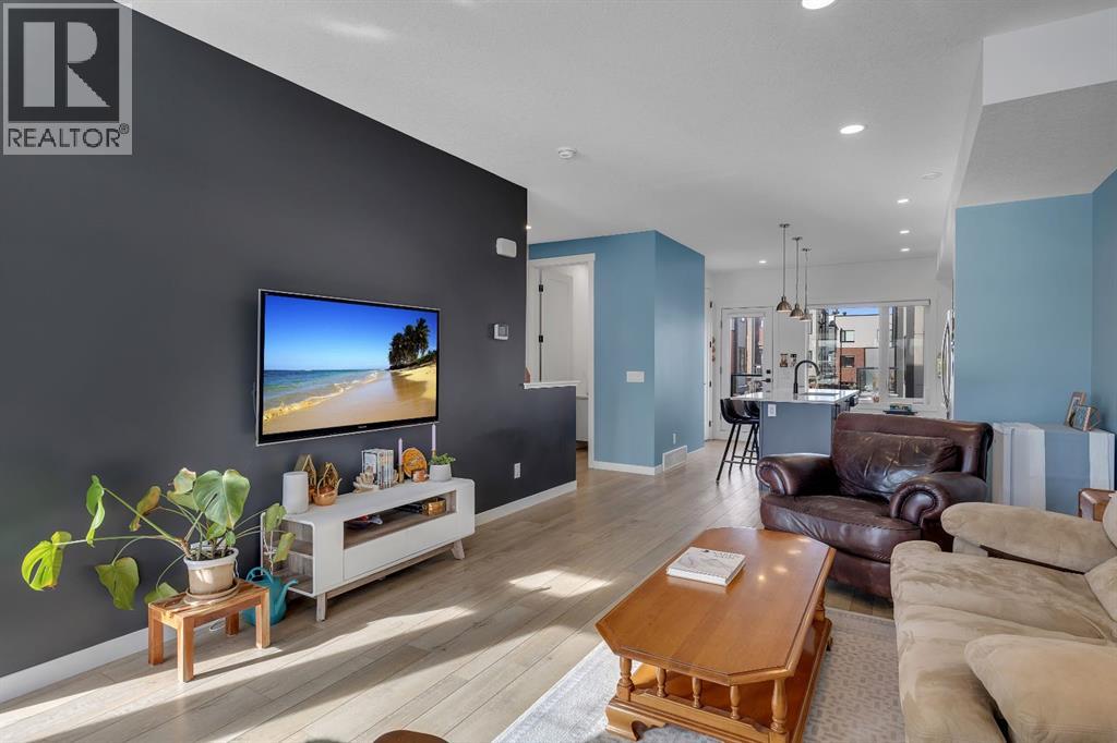 Welcome to the Calla Design Plan in Greenwich, built by Landmark Homes in the Artis development. Inspired by New York executive townhome design, this beautifully appointed home offers over 1,650+ square feet of open concept living space in one of Calgary’s most distinctive northwest communities.This thoughtfully designed home features a rare design of 4 bedrooms, 3.5 bathrooms, and a double attached garage, with a layout enhanced by professionally curated interior colour selections and a multitude of builder upgrades throughout.Carefully customized, this home showcases exceptional finishes paired with extraordinary natural light. The south fronting exposure overlooks the front boulevard for additional street parking and amazing views onto Canada Olympic Park and adjacent Park and Playground Spaces. Outdoor living is equally impressive, with a front-entry exposed aggregate patio and a main-floor full glass balcony with BBQ Gas Line designed to enjoy the full afternoon sun. Inside, this home features luxury vinyl plank flooring throughout the main and lower levels, quartz countertops, Painted custom cabinetry, 9-foot ceilings, and upgraded stainless steel appliances, including a chimney hood fan and built-in microwave. High-efficiency building components include triple-pane windows, a high velocity furnace system, tankless hot water tank, and a heat recovery ventilator system.This Calla plan was further enhanced with the builder’s Show Home Package, adding in Central Air Conditioning, the 4th Bedroom and 3rd Full Bathroom on the Entry Level, 8-foot solid interior passage doors, full tile backsplash upgrades, enhanced bathroom finishes, and window coverings throughout. As one of Landmark Homes’ most open and customizable floor plans, this layout offers exceptional flexibility for options of a full dedicated dining room experience, or an oversized main floor living room configuration. The exterior of this development was designed with New York brownstone influence, f eaturing James Hardie panel siding, brick accenting, and stucco finishes for a contemporary, low-maintenance lifestyle. Ideally located, this home offers quick access to downtown Calgary (approximately 18 minutes), University of Calgary and Foothills Medical Centre (approximately 12 minutes), and weekend escapes to Banff or Canmore in under an hour. It is also within walking distance of the Calgary Farmers' Market West and Boutique and Specialty Shopping in the Central Commercial Plaza. Book your showing today and discover what makes Greenwich NW such an exceptional place to call home. (id:63190)