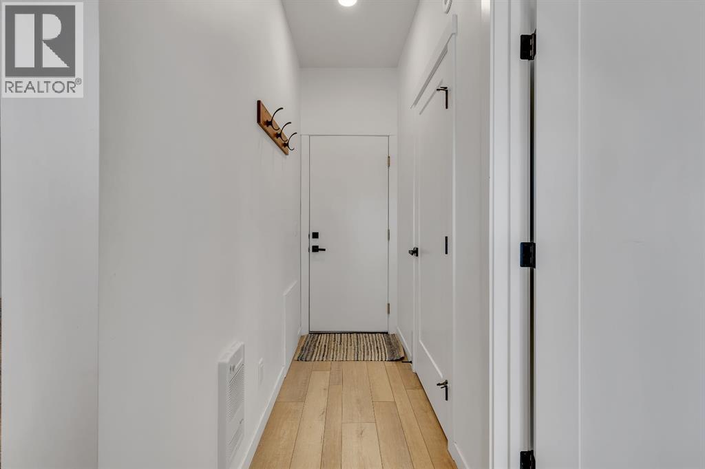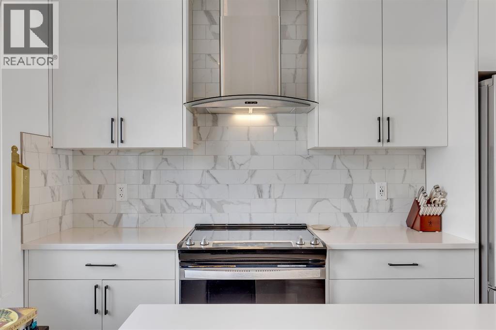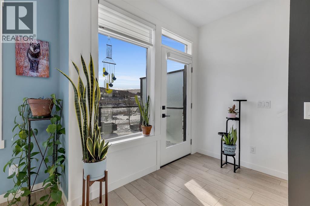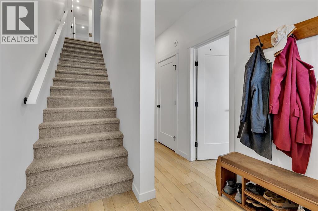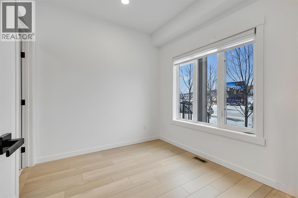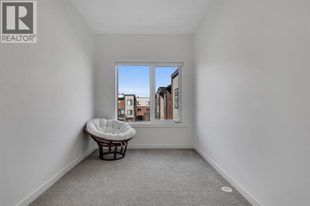 Welcome to the Calla Design Plan in Greenwich, built by Landmark Homes in the Artis development. Inspired by New York executive townhome design, this beautifully appointed home offers over 1,650+ square feet of open concept living space in one of Calgary’s most distinctive northwest communities.This thoughtfully designed home features a rare design of 4 bedrooms, 3.5 bathrooms, and a double attached garage, with a layout enhanced by professionally curated interior colour selections and a multitude of builder upgrades throughout.Carefully customized, this home showcases exceptional finishes paired with extraordinary natural light. The south fronting exposure overlooks the front boulevard for additional street parking and amazing views onto Canada Olympic Park and adjacent Park and Playground Spaces. Outdoor living is equally impressive, with a front-entry exposed aggregate patio and a main-floor full glass balcony with BBQ Gas Line designed to enjoy the full afternoon sun. Inside, this home features luxury vinyl plank flooring throughout the main and lower levels, quartz countertops, Painted custom cabinetry, 9-foot ceilings, and upgraded stainless steel appliances, including a chimney hood fan and built-in microwave. High-efficiency building components include triple-pane windows, a high velocity furnace system, tankless hot water tank, and a heat recovery ventilator system.This Calla plan was further enhanced with the builder’s Show Home Package, adding in Central Air Conditioning, the 4th Bedroom and 3rd Full Bathroom on the Entry Level, 8-foot solid interior passage doors, full tile backsplash upgrades, enhanced bathroom finishes, and window coverings throughout. As one of Landmark Homes’ most open and customizable floor plans, this layout offers exceptional flexibility for options of a full dedicated dining room experience, or an oversized main floor living room configuration. The exterior of this development was designed with New York brownstone influence, f eaturing James Hardie panel siding, brick accenting, and stucco finishes for a contemporary, low-maintenance lifestyle. Ideally located, this home offers quick access to downtown Calgary (approximately 18 minutes), University of Calgary and Foothills Medical Centre (approximately 12 minutes), and weekend escapes to Banff or Canmore in under an hour. It is also within walking distance of the Calgary Farmers' Market West and Boutique and Specialty Shopping in the Central Commercial Plaza. Book your showing today and discover what makes Greenwich NW such an exceptional place to call home. (id:63190)