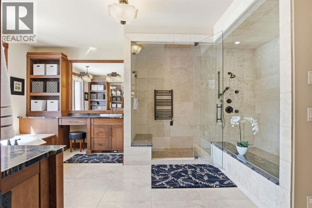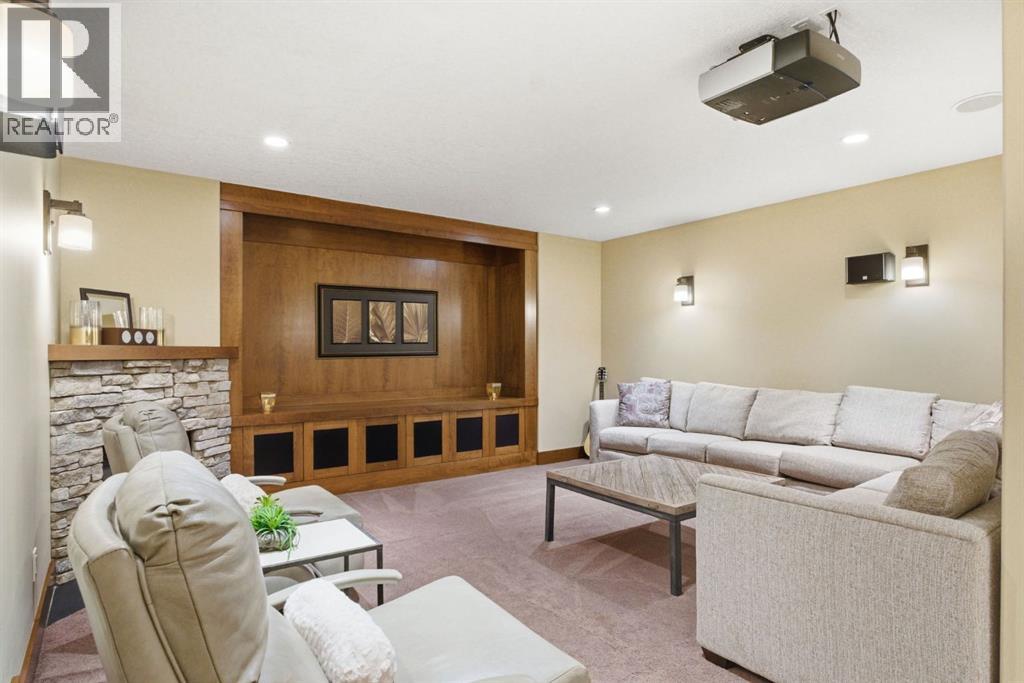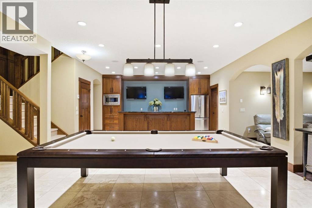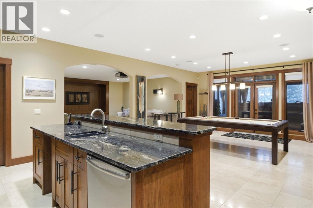 Welcome to 17 Hawks Landing Drive, an exceptional former show home set along the 10th hole of Priddis Greens Golf & Country Club. Tucked away on a private driveway, this home offers a rare sense of privacy while delivering a lifestyle centered around comfort, quality, and connection. Properties on Hawks Landing Drive are highly sought after and rarely come to market.From the moment you enter, vaulted ceilings, rich custom woodwork, and four fireplaces create a warm and inviting atmosphere. The heart of the home is a beautifully designed kitchen with high-end appliances and a massive island—perfect for gathering with family or hosting friends. The main floor layout is both functional and refined, featuring a dedicated office and an expansive primary suite complete with a gorgeous ensuite and massive custom walk-in closet.Designed to be enjoyed year-round, the home offers multiple decks, several of which are covered and equipped with remote privacy screens, along with a heated covered space featuring a swim spa—creating your own private retreat in every season. A dedicated BBQ deck and fenced dog run add to the home’s thoughtful outdoor design.The fully developed lower level extends the living space with intention, offering a theatre room, pool table area, three additional bedrooms, and a dedicated gym—ideal for both entertaining and unwinding.Car enthusiasts and hobbyists will appreciate the two oversized triple garages. The detached garage is fully finished with vaulted ceilings, heat, epoxy floors, drywall, and baseboards—an exceptional space for vehicles, storage, or a workshop.Additional features include gemstone exterior lighting, an electric vehicle charger, and premium finishes throughout. Conveniently located just minutes from Calgary with quick access to Stoney Trail, this property offers peaceful estate living without sacrificing accessibility.This isn’t just a home, it’s a lifestyle. (id:63190)