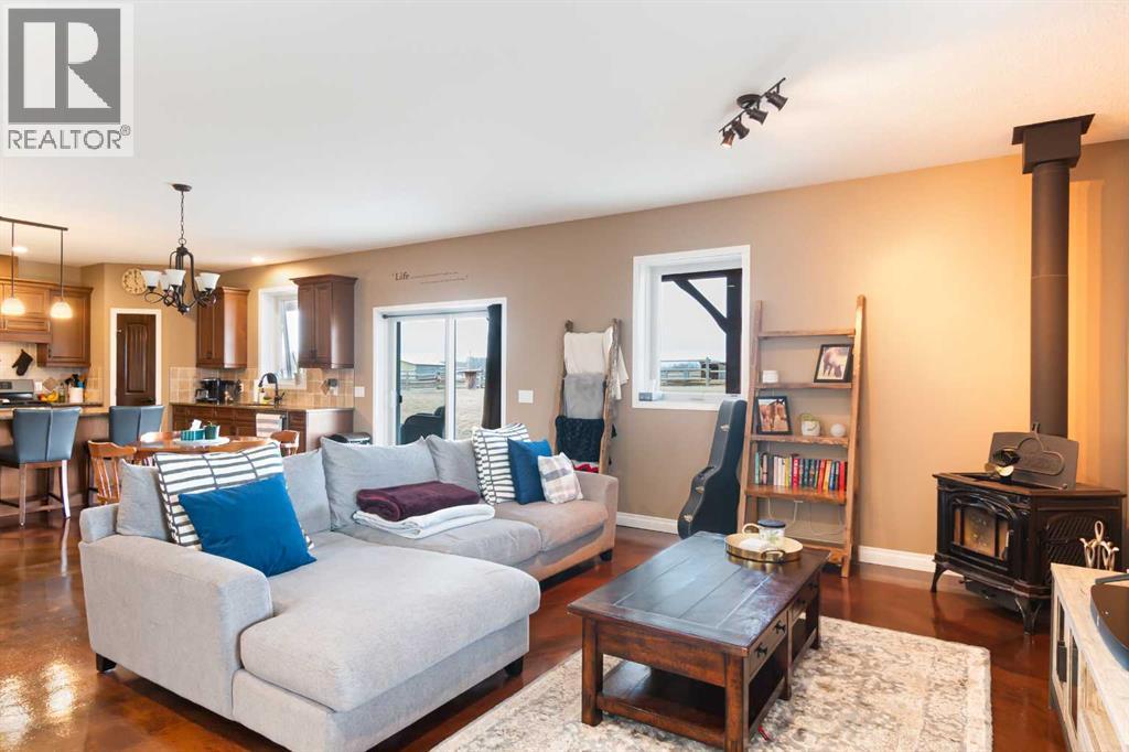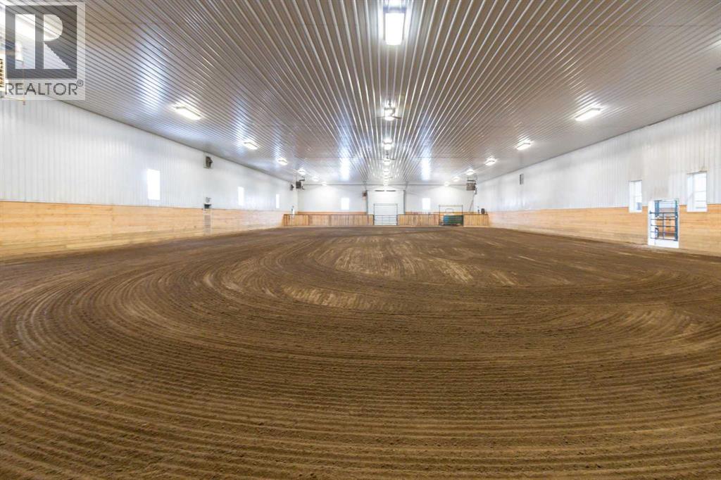 Welcome to this immaculate 153-acre property in Red Deer County, just 12 minutes NW of Olds, less than an hour to Calgary and 30 minutes to Red Deer. The main home is a 1,667 sq ft bungalow with a double heated attached garage. Inside, you’ll find three bedrooms on the main floor, including a spacious primary suite with a four-piece ensuite, plus another full bathroom and a well-appointed laundry room with access to the garage. The open-concept kitchen, dining, and living area is bright and inviting, with large windows offering stunning views from every angle. The kitchen features warm wood cabinetry and a large island, while the living room adds a cozy charm with its wood-burning stove. Hunter Douglas blinds are installed throughout for comfort and efficiency. A screened-in sunroom with a patio door and fully opening windows provides a peaceful space to enjoy the views and all four seasons. The finished basement includes another bedroom, a three-piece bathroom, a large rec room and a hobby room. There is in-floor heat in the basement, instant hot water, and a 50-gallon automatic water heater. The home also has A/C.Equestrian or livestock amenities include a professionally built, insulated and heated 80x180 INDOOR RIDING ARENA with humidity control, four forced-air heaters, a 14x14 overhead door and air circulation fans. The arena ground footing was professional done. A roll-up door connects to the 20x120 BARN with in-floor and overhead heat , four soft-cushioned stalls, a wash bay, large tack room with a sink, and built-in saddle racks. A 20x60 lean-to adds more storage and shelter. The arena is monitored by seven professionally installed, Wi-Fi-compatible security cameras.Attached to the arena is a beautiful 1,701 sq ft home with a full wraparound veranda. It offers two bedrooms, including a generous primary suite with a five-piece ensuite and a massive walk-in closet, plus an office with a window overlooking the arena. The kitchen offers abundant cabinetry and a central island, while the dining area features patio doors and the living room boasts another cozy wood stove. A spacious mudroom/laundry room and ample storage throughout make this home as practical as it is charming.Outbuildings include a partially heated 60x90 SHOP, a heated 30x36 MAIN BARN with two stalls—one convertible to a foaling stall with a camera monitor—and a heated tack room with hot and cold water. The massive 70x43 hay shed holds up to 300 large square bales. Aviation lovers will appreciate the 42x36 airplane hangar with a bi-fold door, a tower and a private runway stretching nearly the full length of the quarter. The land is thoughtfully fenced with all-rail fencing—NO BARBED WIRE—and includes a mix of pasture and paddocks, including introduction pens, automatic waterers, and 2 OUTDOOR RIDING ARENAS. There are also 3 high producing water wells on the property. Approximately 80 acres of cultivated farmland with two dugouts complete this versatile and truly impressive property. (id:63190)