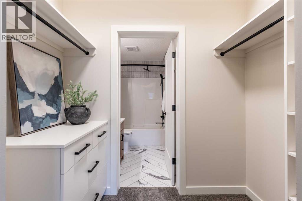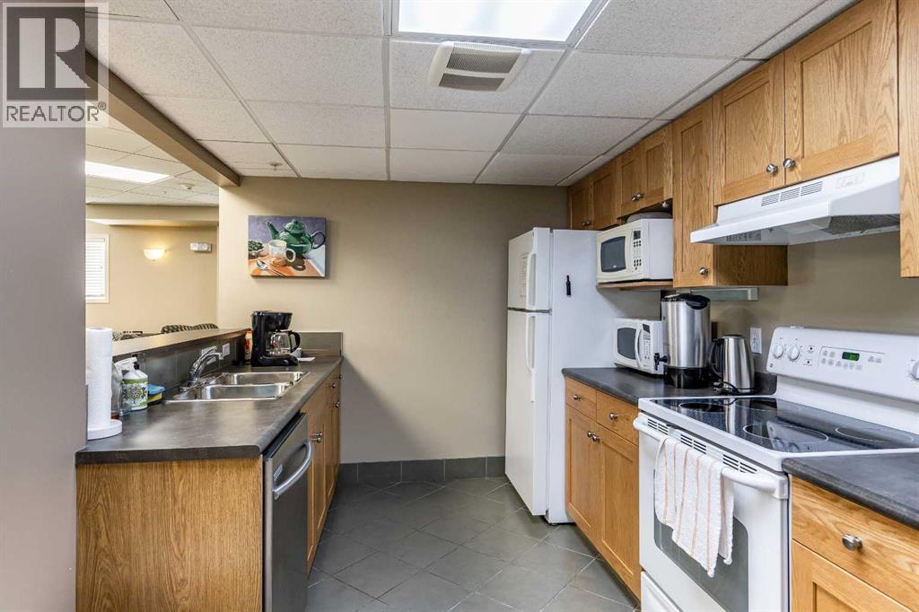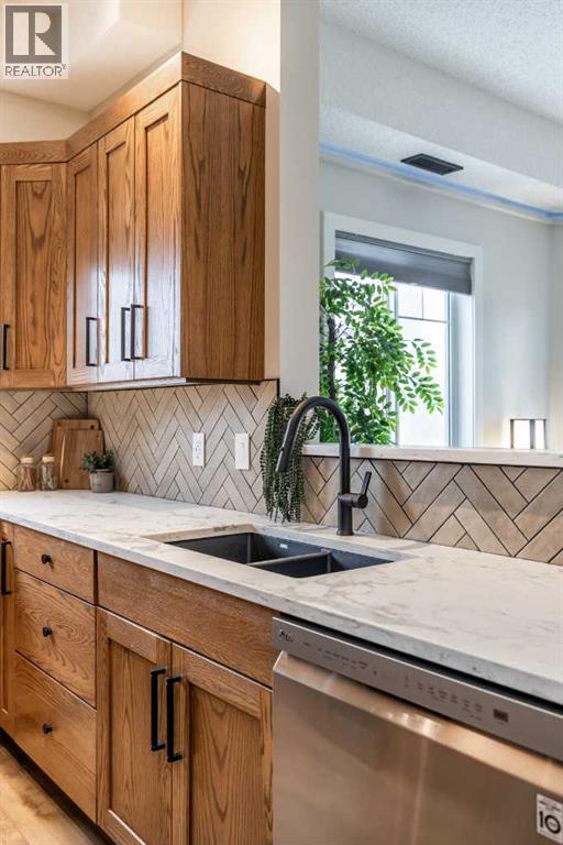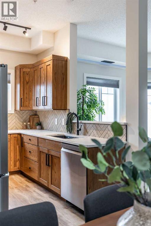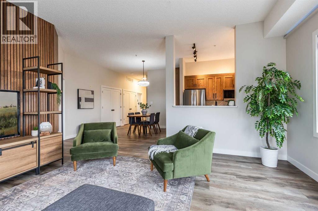 Welcome to this absolutely stunning, fully renovated executive-style main floor, corner condo unit offering just under 1,100 sq ft of beautifully designed living space in a quiet, well-maintained building. You’ll appreciate the impressive 10-foot ceilings and abundance of natural light that create an open, airy feel throughout. The entire unit has been thoughtfully updated from top to bottom, showcasing modern finishes, and a cohesive, high-end design. The kitchen is a true centerpiece, with both style and functionality in mind. Cabinets have been refinished in a rich, darker stain, brand-new soft-close hinges, and updated stainless steel appliances. Undermount lighting adds warmth and perfectly complements the honed quartz countertops, striking herringbone-pattern backsplash and upgraded black granite undermount sink. The open-concept layout flows seamlessly into the dining and living area where custom oak slat feature walls create a bold and contemporary statement. The spacious two-bedroom layout includes a beautifully updated primary retreat with a fully renovated ensuite bathroom featuring modern black fixtures, and walkthrough closet with custom shelving and dresser. The bedroom ceiling showcases custom wood accent detailing, adding character and warmth. Doors and closets throughout the unit have been upgraded, offering a blend of solid and hollow core construction for durability and efficiency. Additional features include upgraded flooring with added underlay for comfort and sound reduction, LED halo-style lighting accents, new blinds throughout, allergen/dust filtering screens on windows and so much more. Step outside to your private balcony—perfect for relaxing or enjoying your morning coffee—while taking in the peaceful surroundings. The property is ideally situated adjacent to scenic walking paths, making it easy to enjoy the outdoors right from your doorstep. This quiet, well-managed building offers great amenities including a recreation room, small self -serve fitness area, and elevator access. Pet-friendly (with restrictions), it’s ideal for a variety of lifestyles. Condo fees of $547.87/month include all utilities (except cable and Wi-Fi), providing excellent value and convenience. The unit also comes with one underground titled parking stall and a dedicated storage space. Ideal for downsizers or a young professional couple, this gorgeous, one-of-a-kind condo stands out from anything else on the market. Reach out to your favorite REALTOR® today to set up a viewing! (id:63190)