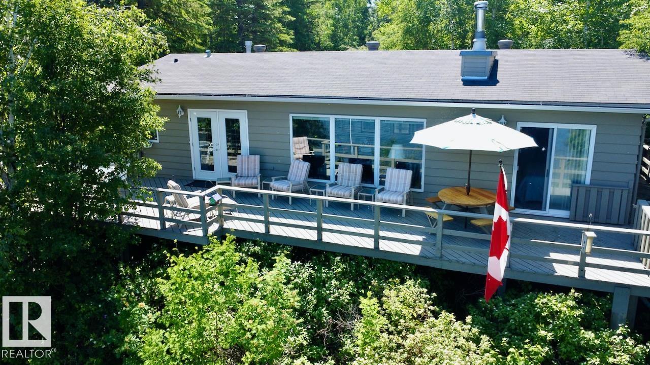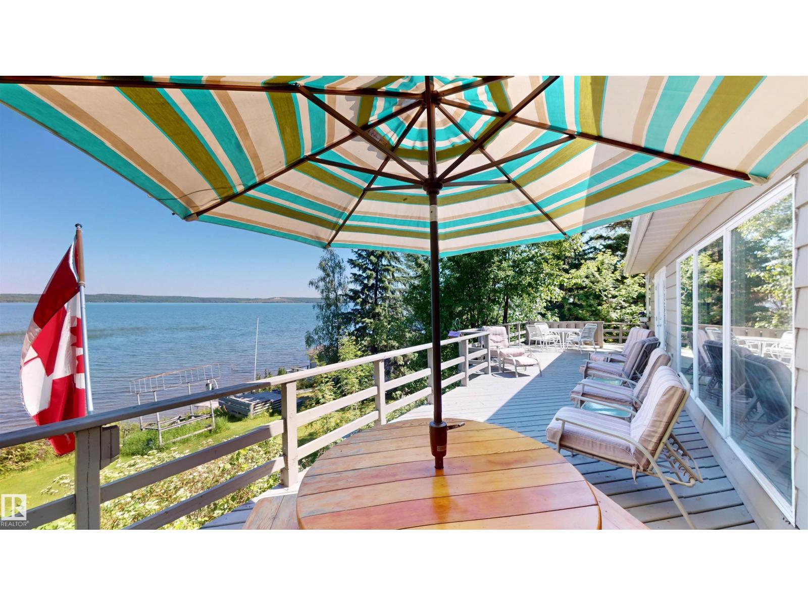 Welcome to one of the most private lakefront properties on Lake Wabamun, spanning .87 acres. This meticulously maintained lot is the largest and most secluded in the area. As you enter via the private driveway, you are greeted by a double car garage. You can either walk down to the house or drive right up to the doorstep. The walk down features a beautiful trail and staircase. The house offers stunning north-facing views over the lake and includes three generously sized bedrooms. A complete walk-around deck surrounds the home, providing ample space to enjoy the outdoors. On the lakeside, there is a boathouse equipped with rails for your boat, a beautifully intimate yard overlooking the water, and an included dock with boat lift, offering a breathtaking view of your 145 feet of lakefront. From the moment you enter the driveway to the moment you relax in your yard, you experience complete privacy with fully developed trees. Make this serene lakeside retreat yours today! (id:63190)