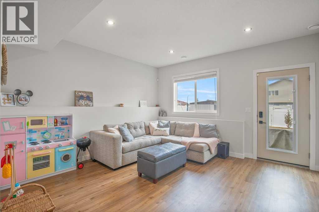 Nestled in the family-friendly neighbourhood of Timber Ridge, this stunning two-storey former Laebon show home offers 4 bedrooms, 4 bathrooms, and 2,259 sq ft of thoughtfully designed living space, complete with a fully finished walkout basement and heated double attached garage (22x20'). From the moment you arrive, the impressive curb appeal sets the tone for what's inside — a spacious entryway welcomes you into a main floor featuring sleek vinyl plank flooring throughout, an open-concept layout perfect for entertaining, and a chef-inspired kitchen boasting modern slow-close cabinetry, quartz countertops, tile backsplash, stainless steel appliances, a corner pantry, and a centre island with bench seating. Upstairs, the layout is built for today's busy family with a convenient laundry room, sun-filled bedrooms, and a generous primary retreat complete with a 4-piece ensuite. The west-facing backyard is fully fenced and landscaped — ideal for kids and pets — while the rear deck and patio offer the perfect spot to BBQ or unwind overlooking a large green space and park. Additional highlights include Hunter Douglas blinds, air conditioning, vinyl fencing, a tool shed, recently planted Blue Junipers, 220V receptacle in garage, and potential RV parking with alley access. This is the upgraded family home you've been waiting for — book your showing today! (id:63190)