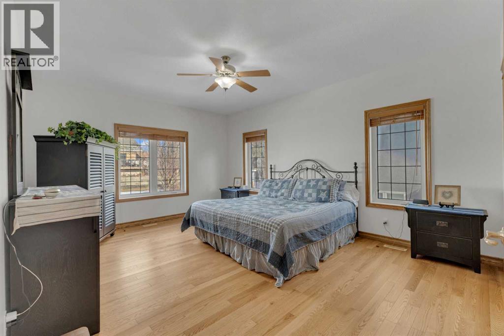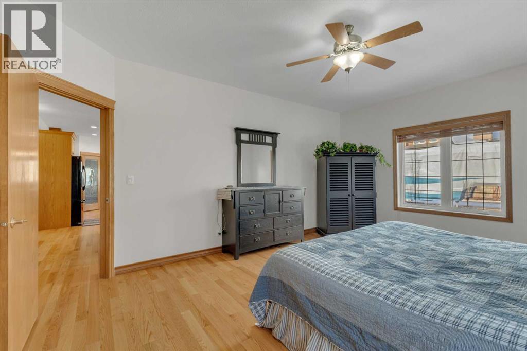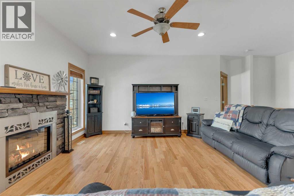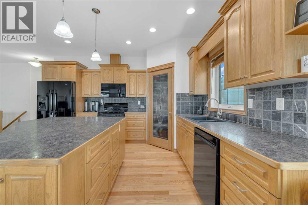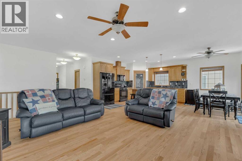 Immaculate 1-owner custom bungalow offering the perfect blend of space, comfort, and low-maintenance living. Featuring fresh paint, stunning hardwood floors, triple pane windows, and hot water on demand, this home is truly move-in ready. The bright open-concept main floor showcases generous living spaces, 3 bedrooms including a spacious primary retreat with walk-in closet and ensuite, plus convenient main floor laundry with hidden storage. The oversized heated garage easily accommodates 2 vehicles—including a pickup—with extra room for tools and toys. Downstairs, enjoy a massive, light-filled family/games room with high ceilings, 2 additional large bedrooms, a full bath, and extensive storage throughout. Step outside to a beautifully maintained yard complete with RV parking (30-amp service), concrete curbing, perennial landscaping, low-maintenance rubber mulch, and a large rear deck with gas BBQ hookup—perfect for entertaining. This exceptionally well-cared-for home offers space, function, and lifestyle—ideal for families or those looking to enjoy main floor living without compromise located in a quiet neighborhood and only steps to walking trails. (id:63190)