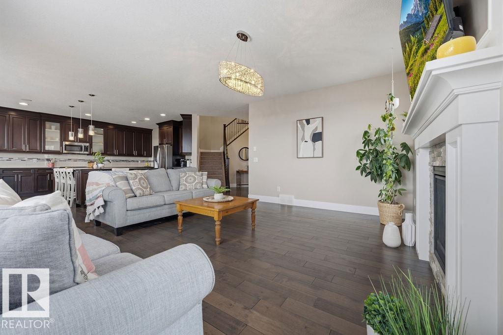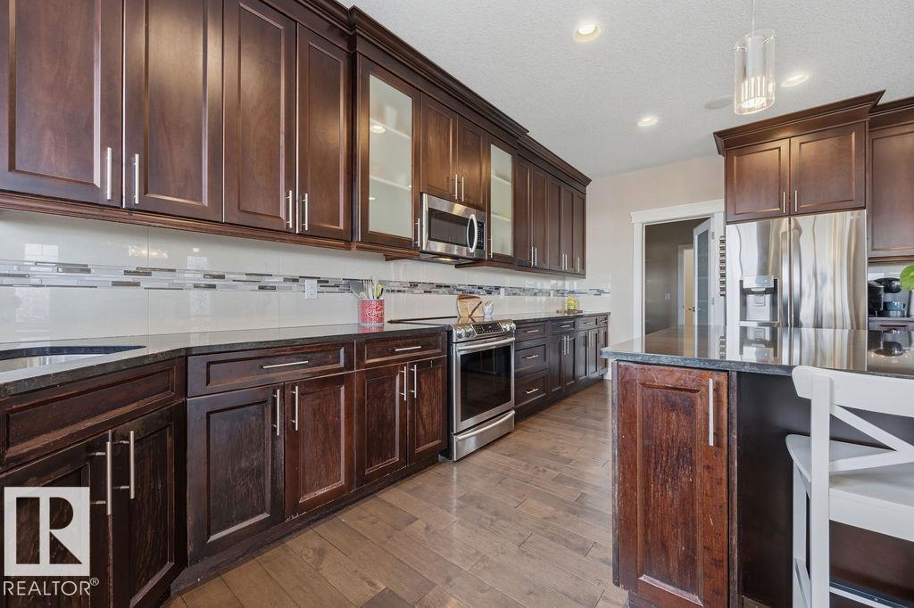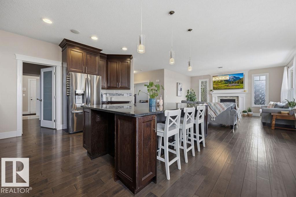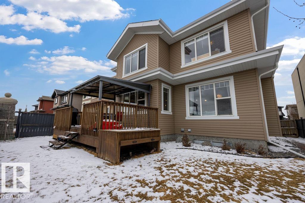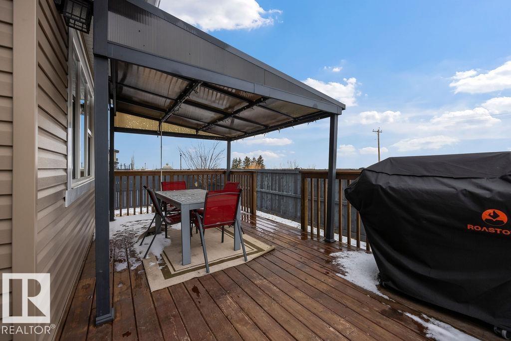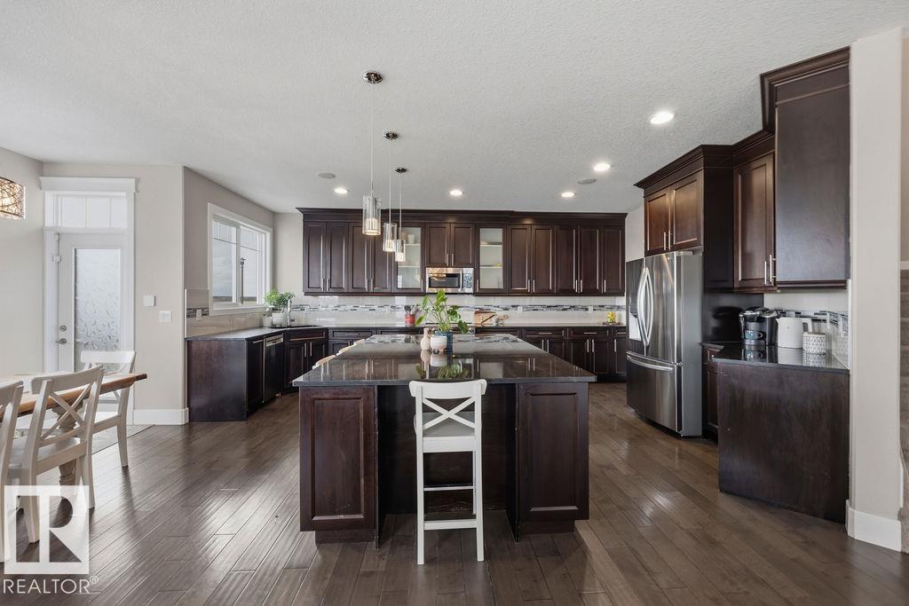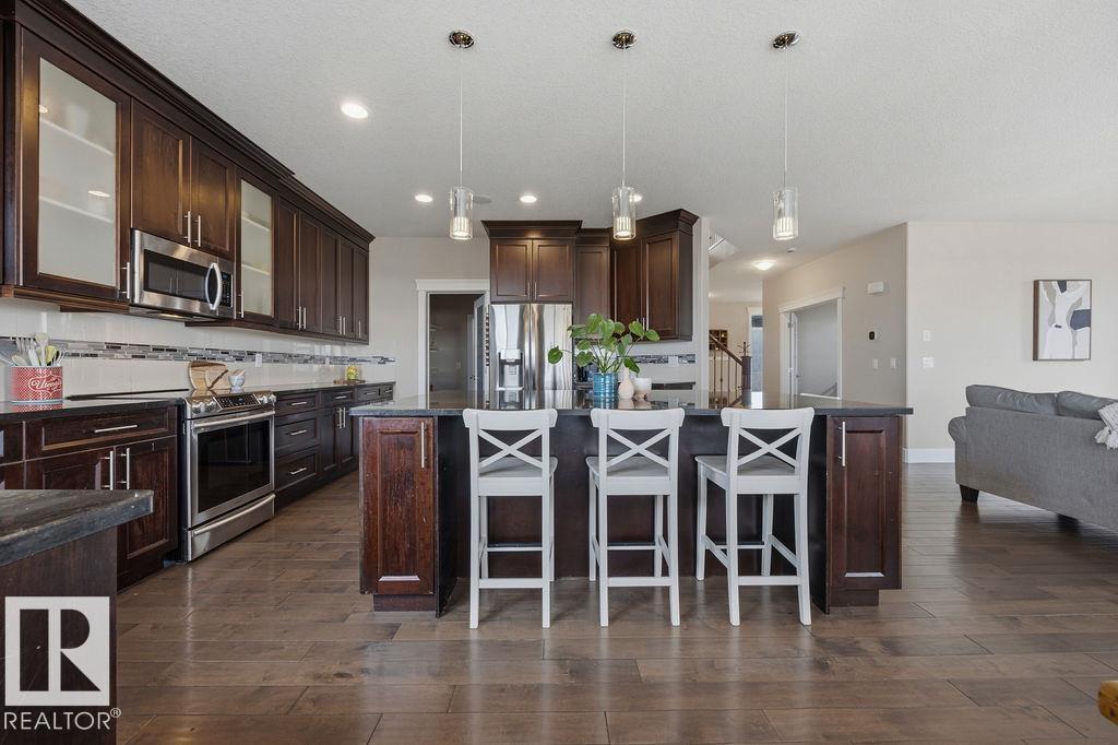 Welcome to this gorgeous 2-storey home in prestigious Royal Oaks! Perfectly situated near West Beaumont, and only minutes from Nisku, Leduc, the International Airport, and a short drive to South Edmonton Common. The main floor boasts an open-concept great room with gas fireplace and a dream kitchen featuring a GIANT ONE-PIECE GRANITE ISLAND, stainless steel appliances, and a walk-through pantry. Step out from the dinning room to a beautiful covered outdoor sitting area. Upstairs you’ll find a spacious vaulted bonus room above the triple garage, a luxurious primary suite with walk-in closet and spa-like ensuite, and 3 more generous bedrooms (2 sharing a Jack & Jill bath). Plus upstairs laundry! The developed basement delivers even more space, with a built-in wet bar, and a HUGE entertaining area with room for a games room and a gym. A full bathroom, and a 5th bedroom complete the basement. With over 4,350 sq ft of total living space, this home has plenty of room, premium finishes, and a fantastic layout! (id:63190)