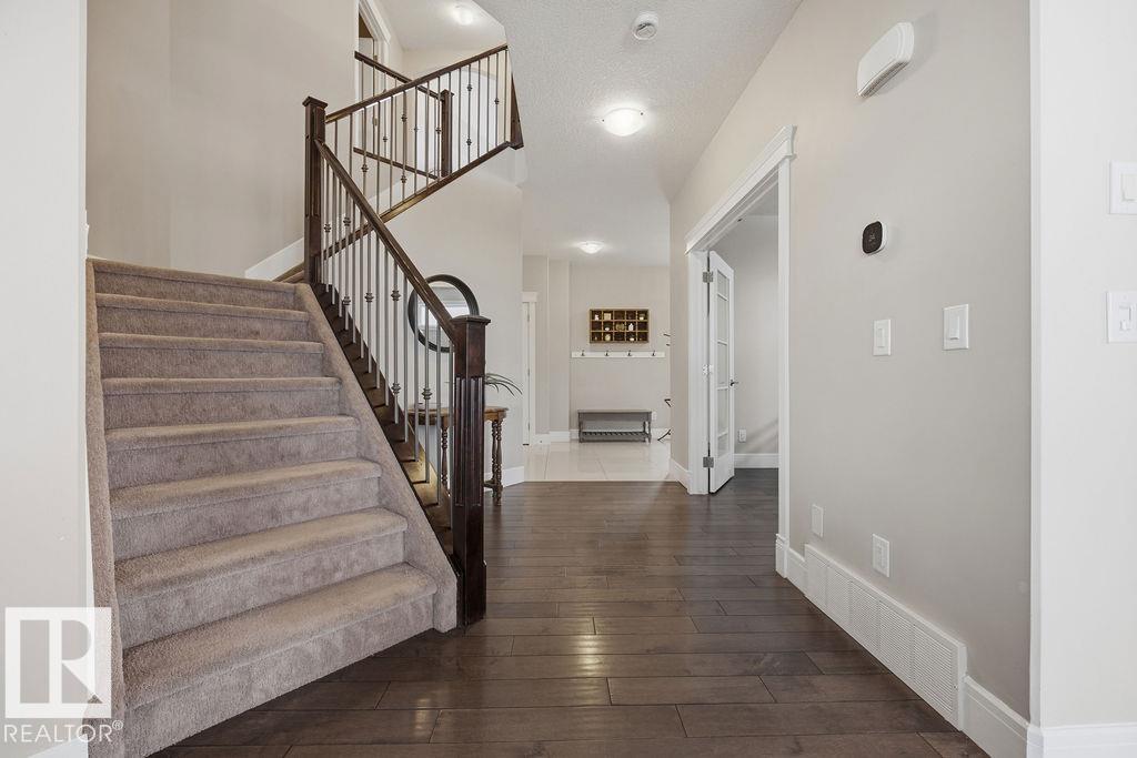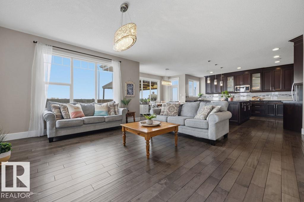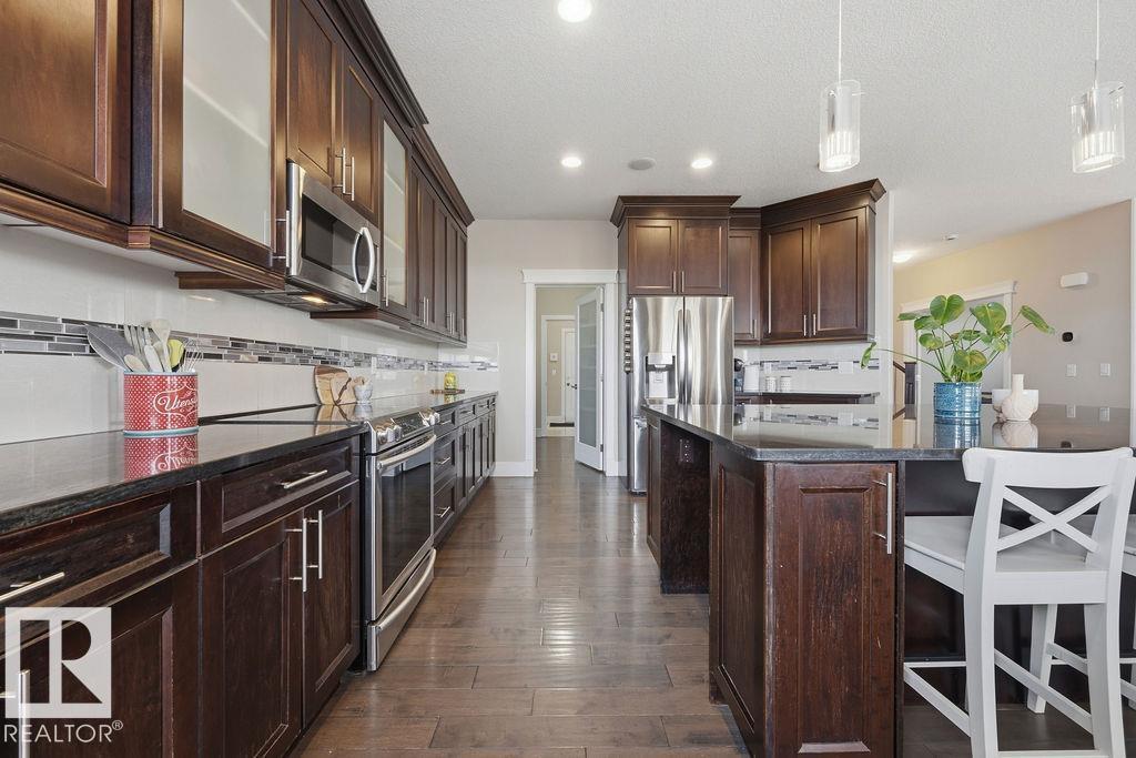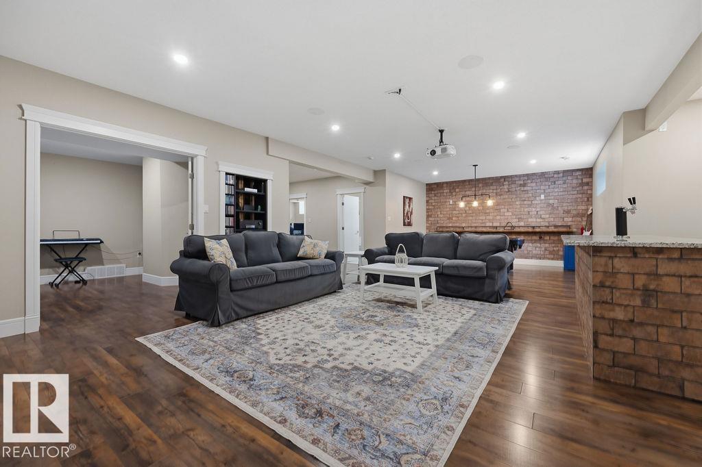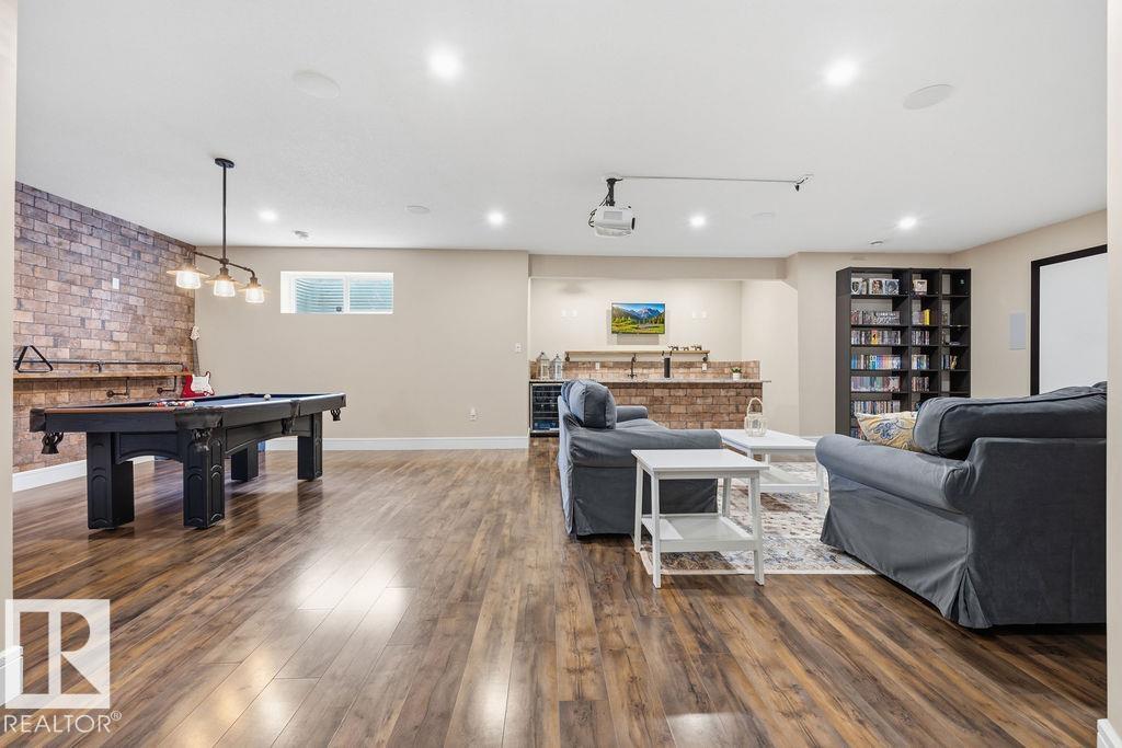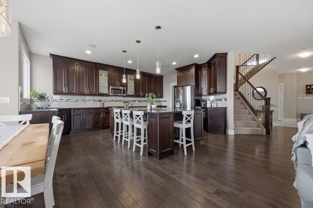 Welcome to this gorgeous 2-storey home in prestigious Royal Oaks! Perfectly situated near West Beaumont, and only minutes from Nisku, Leduc, the International Airport, and a short drive to South Edmonton Common. The main floor boasts an open-concept great room with gas fireplace and a dream kitchen featuring a GIANT ONE-PIECE GRANITE ISLAND, stainless steel appliances, and a walk-through pantry. Step out from the dinning room to a beautiful covered outdoor sitting area. Upstairs you’ll find a spacious vaulted bonus room above the triple garage, a luxurious primary suite with walk-in closet and spa-like ensuite, and 3 more generous bedrooms (2 sharing a Jack & Jill bath). Plus upstairs laundry! The developed basement delivers even more space, with a built-in wet bar, and a HUGE entertaining area with room for a games room and a gym. A full bathroom, and a 5th bedroom complete the basement. With over 4,350 sq ft of total living space, this home has plenty of room, premium finishes, and a fantastic layout! (id:63190)