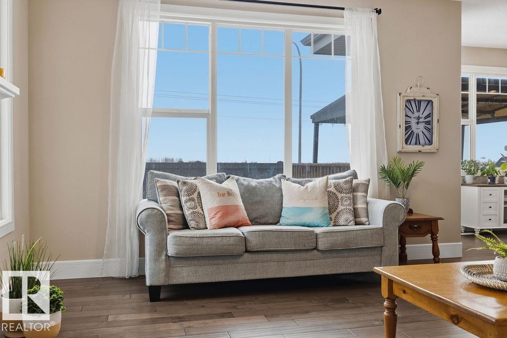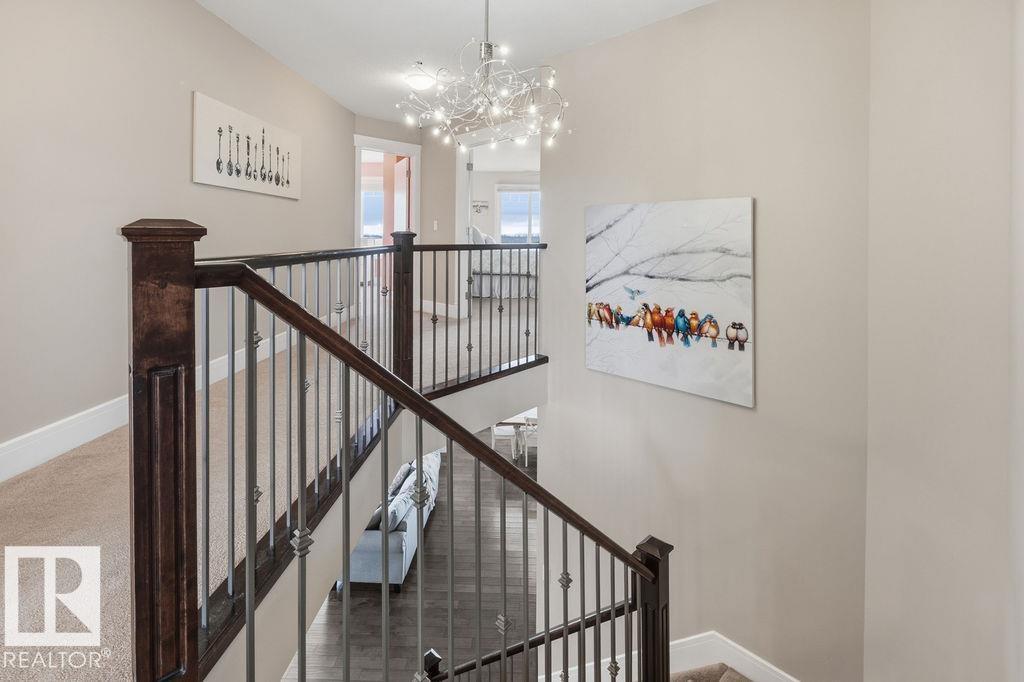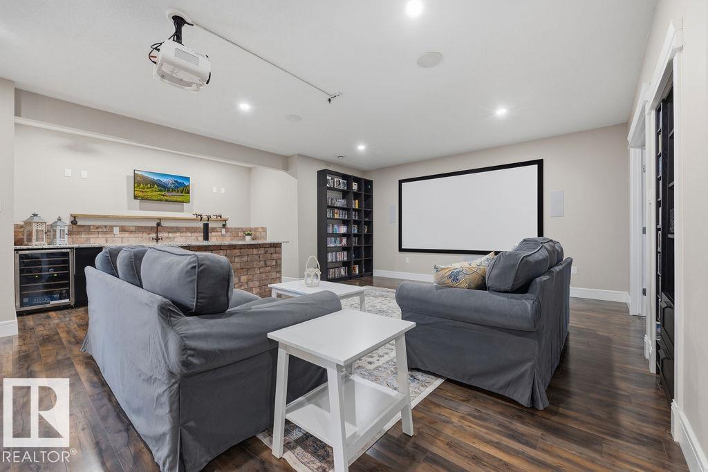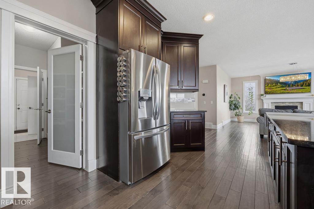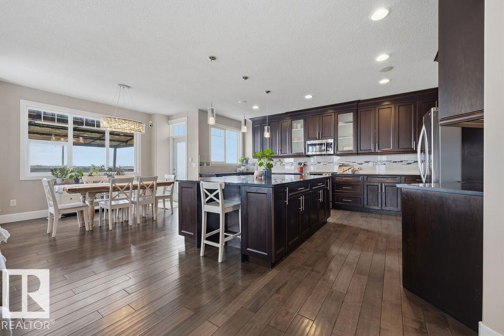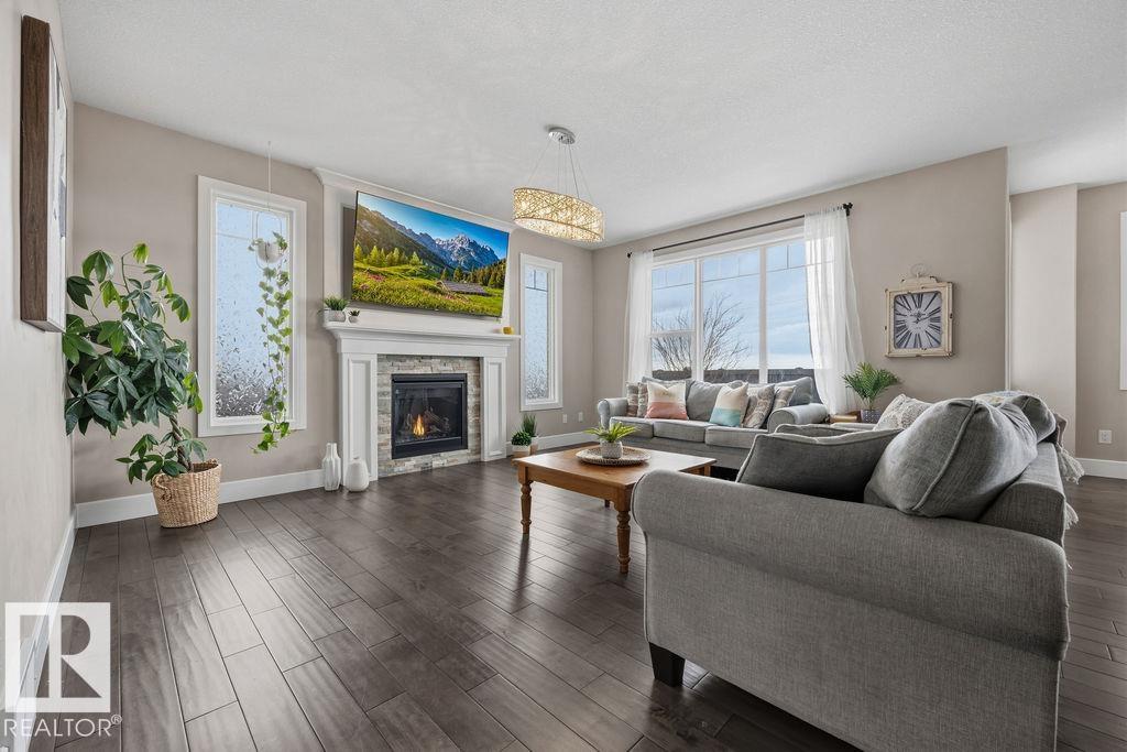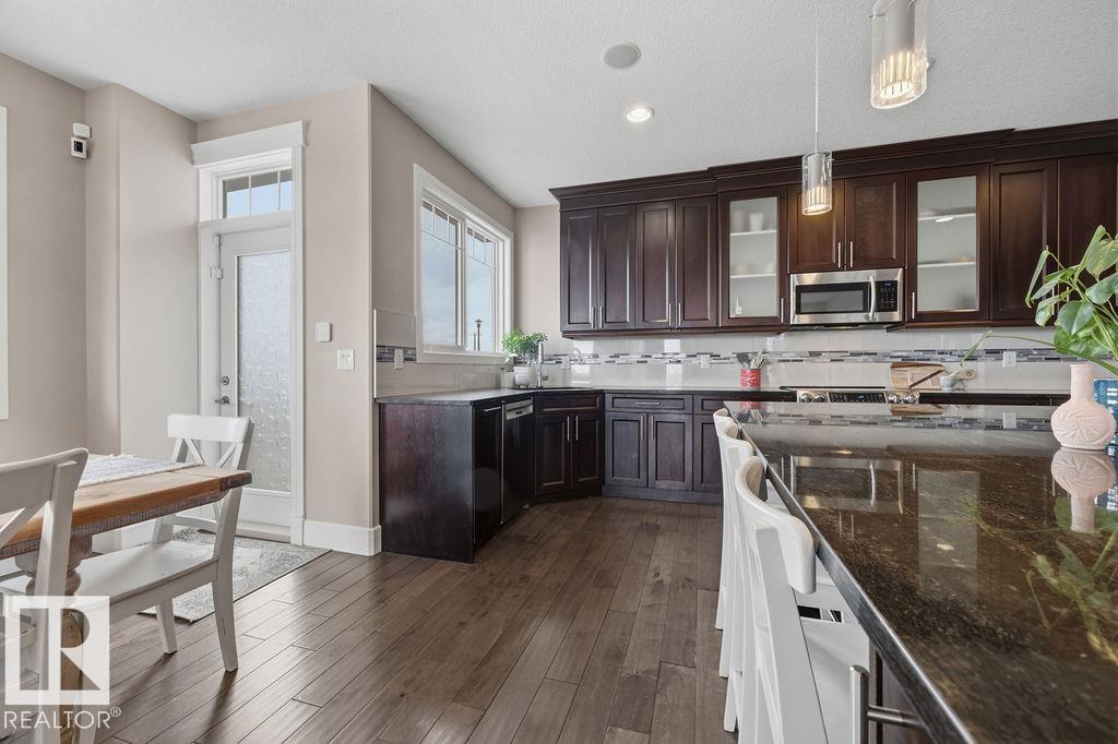 Welcome to this gorgeous 2-storey home in prestigious Royal Oaks! Perfectly situated near West Beaumont, and only minutes from Nisku, Leduc, the International Airport, and a short drive to South Edmonton Common. The main floor boasts an open-concept great room with gas fireplace and a dream kitchen featuring a GIANT ONE-PIECE GRANITE ISLAND, stainless steel appliances, and a walk-through pantry. Step out from the dinning room to a beautiful covered outdoor sitting area. Upstairs you’ll find a spacious vaulted bonus room above the triple garage, a luxurious primary suite with walk-in closet and spa-like ensuite, and 3 more generous bedrooms (2 sharing a Jack & Jill bath). Plus upstairs laundry! The developed basement delivers even more space, with a built-in wet bar, and a HUGE entertaining area with room for a games room and a gym. A full bathroom, and a 5th bedroom complete the basement. With over 4,350 sq ft of total living space, this home has plenty of room, premium finishes, and a fantastic layout! (id:63190)